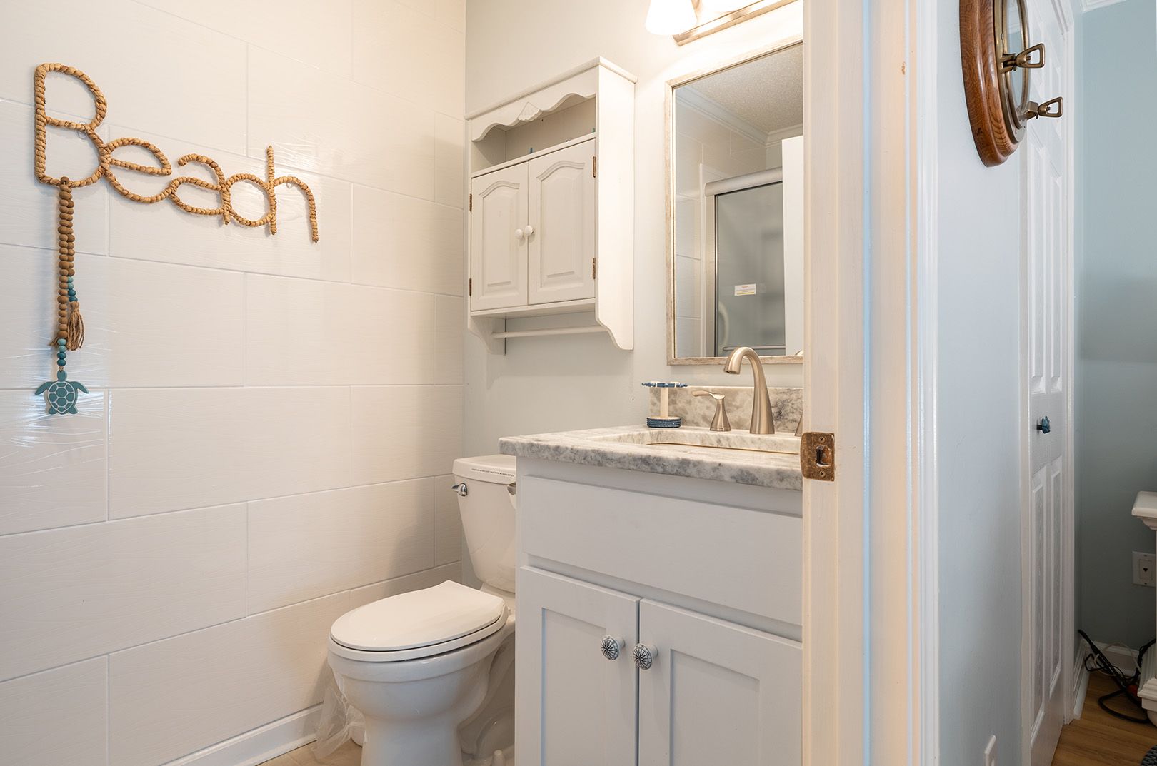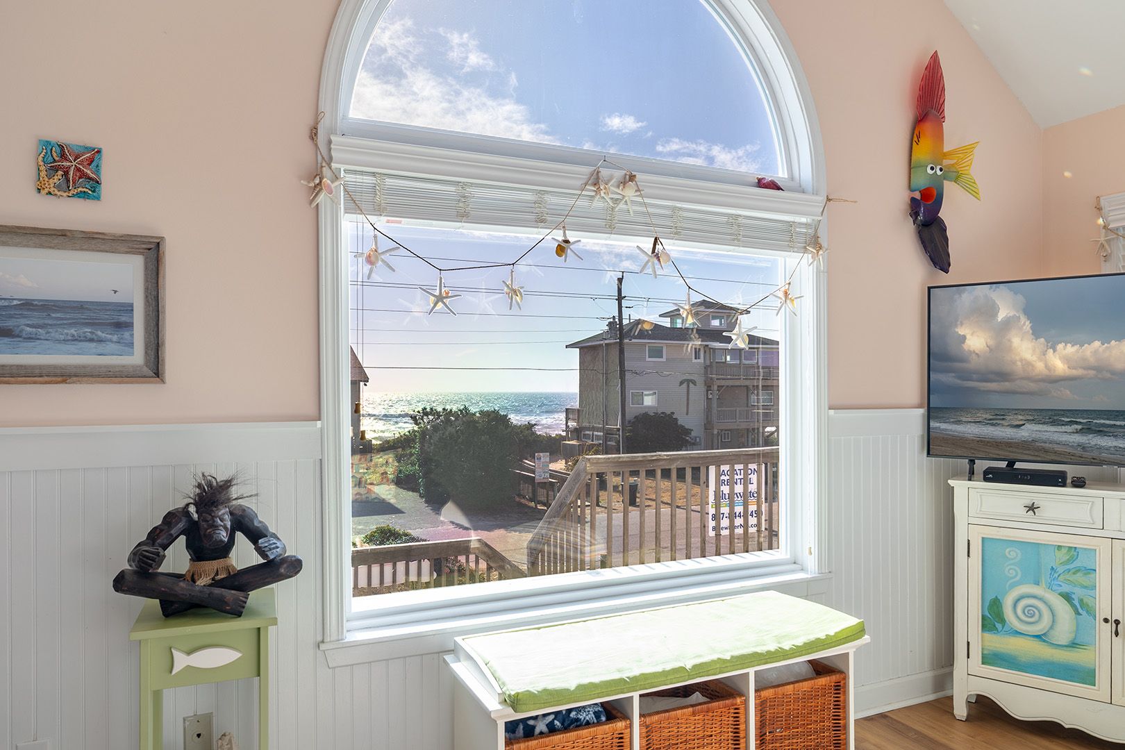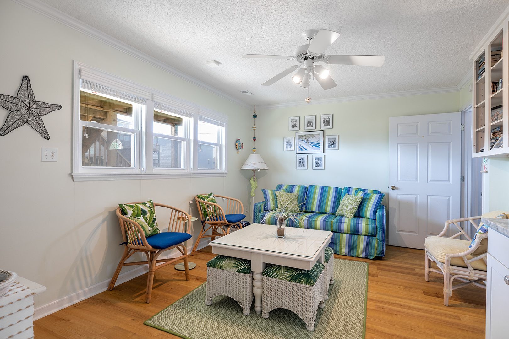Level One: Come in and enjoy the neatly designed kitchen and the dining area that seats 8 with additional seating for 3 at the kitchen island. The Living Room offers a fantastic view of the ocean with the array of windows. You also have access to a screened in porch and balcony. Bedroom #2 offers a Queen Bed shares a bath in the hallway with a bonus room.