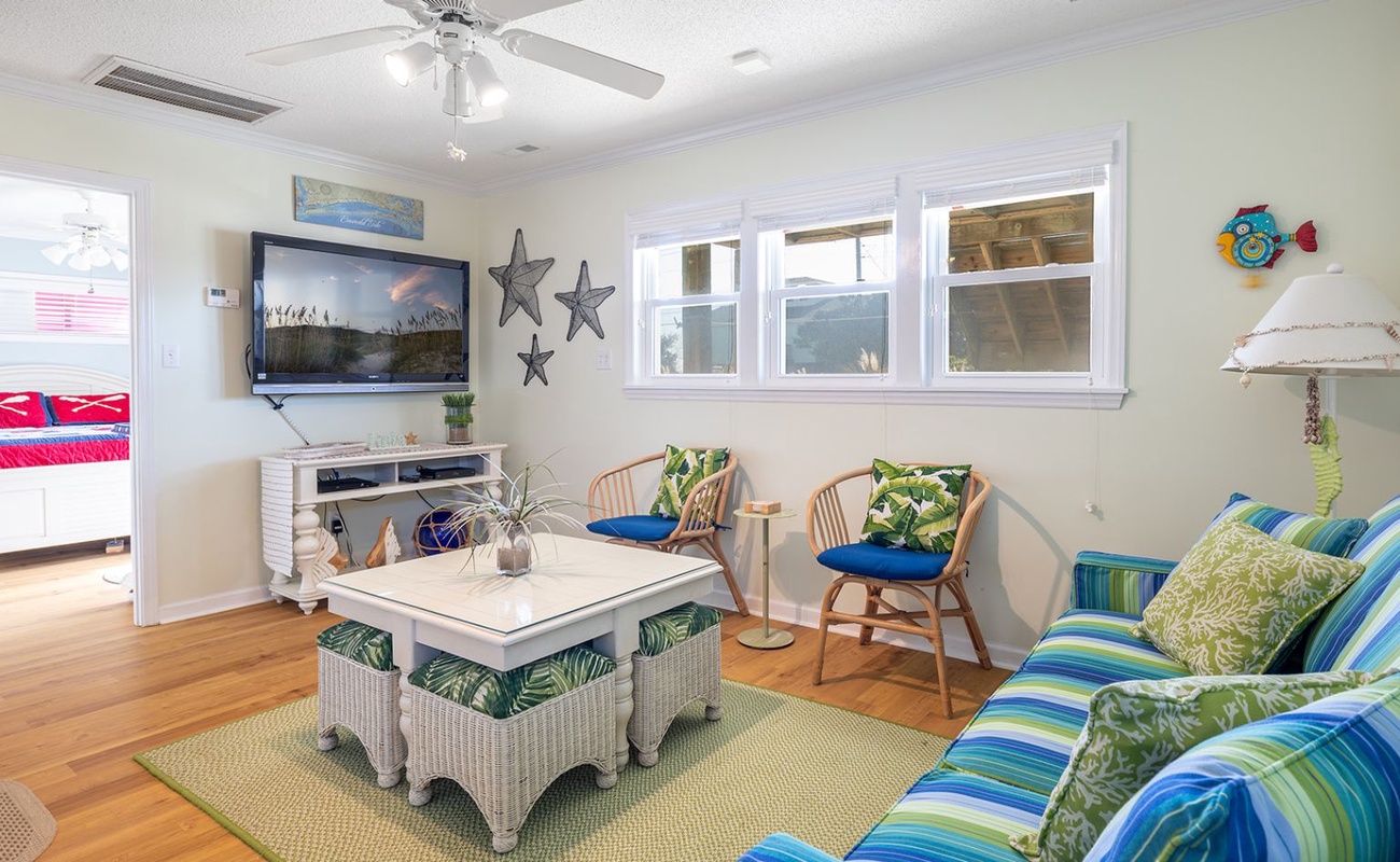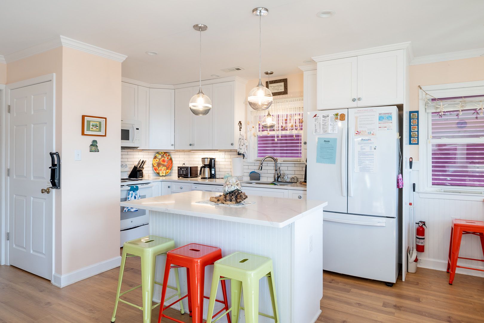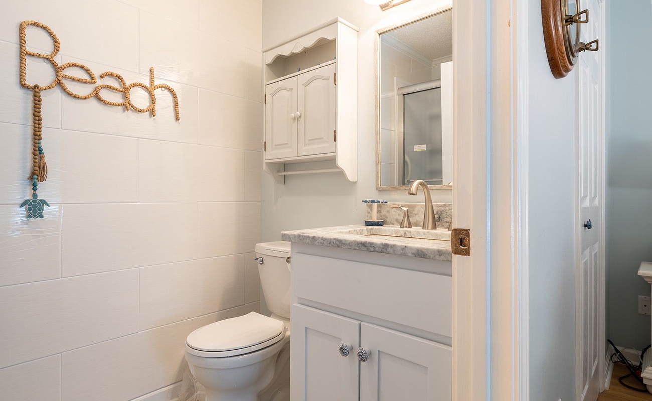 Level One: Come in and enjoy the neatly designed kitchen and the dining area that seats 8 with additional seating for 3 at the kitchen island. The Living Room offers a fantastic view of the ocean with the array of windows. You also have access to a screened in porch and balcony. Bedroom #2 offers a Queen Bed shares a bath in the hallway with a bonus room.