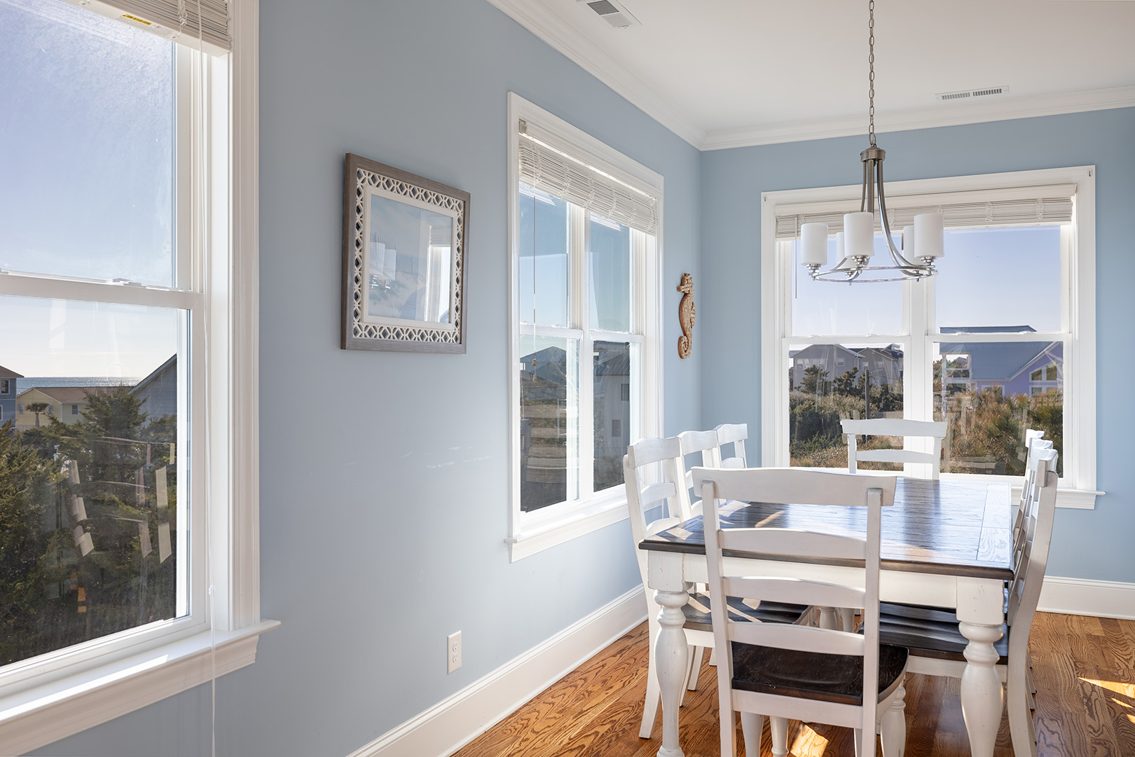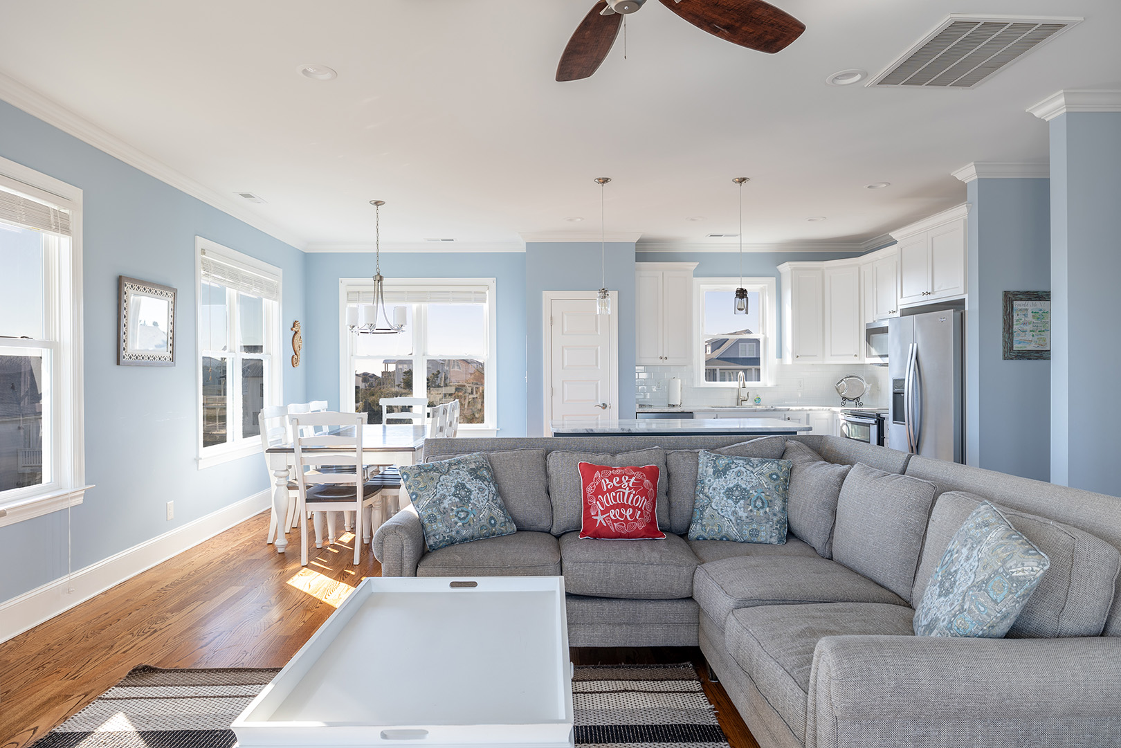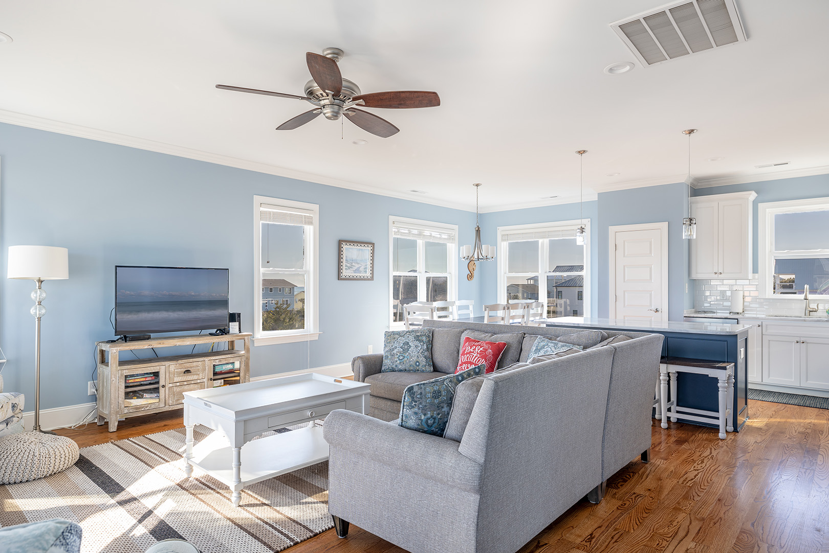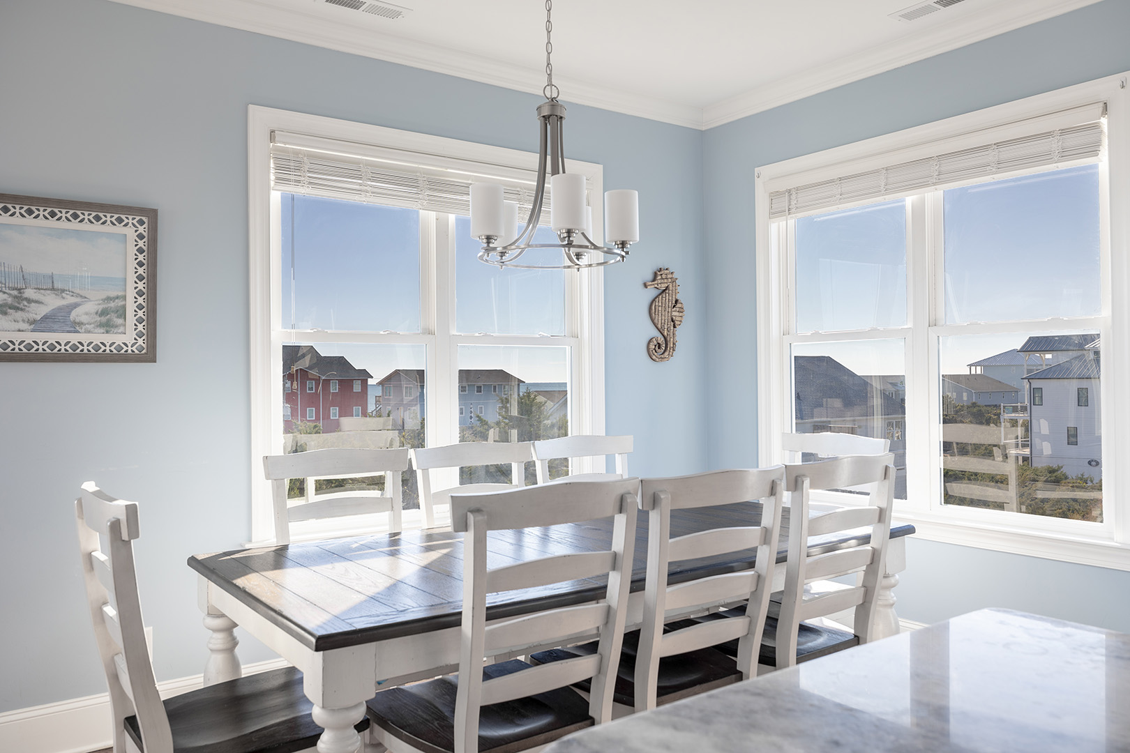 Enjoy the inviting great room with living, dining, and kitchen to its fullest extent with the flat panel Smart TV with access to your favorite streaming apps perfect for family movie night while the wine refrigerator is ideal for storing your cold beverages and snacks of choice! The provided blender makes for easy beachy smoothies and more. The fully equipped kitchen provides the space, appliances, and items needed to prepare delicious meals. Take in those Atlantic Ocean and surrounding views from inside or head out to the deck to feel the ocean breeze while enjoying the seaside vista.