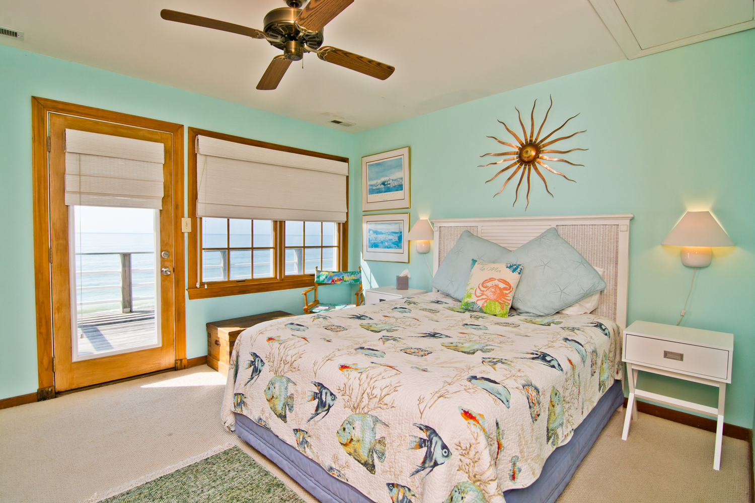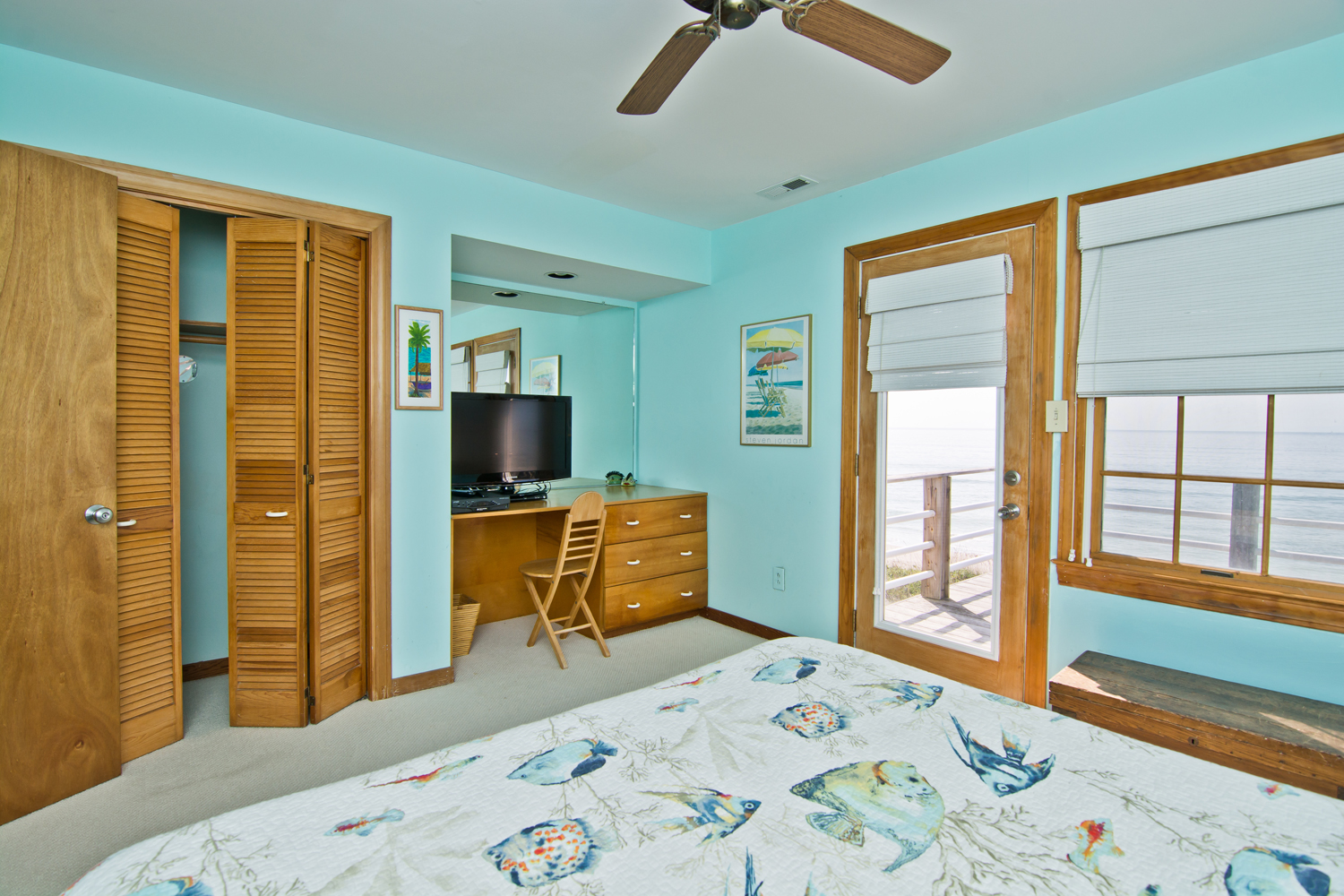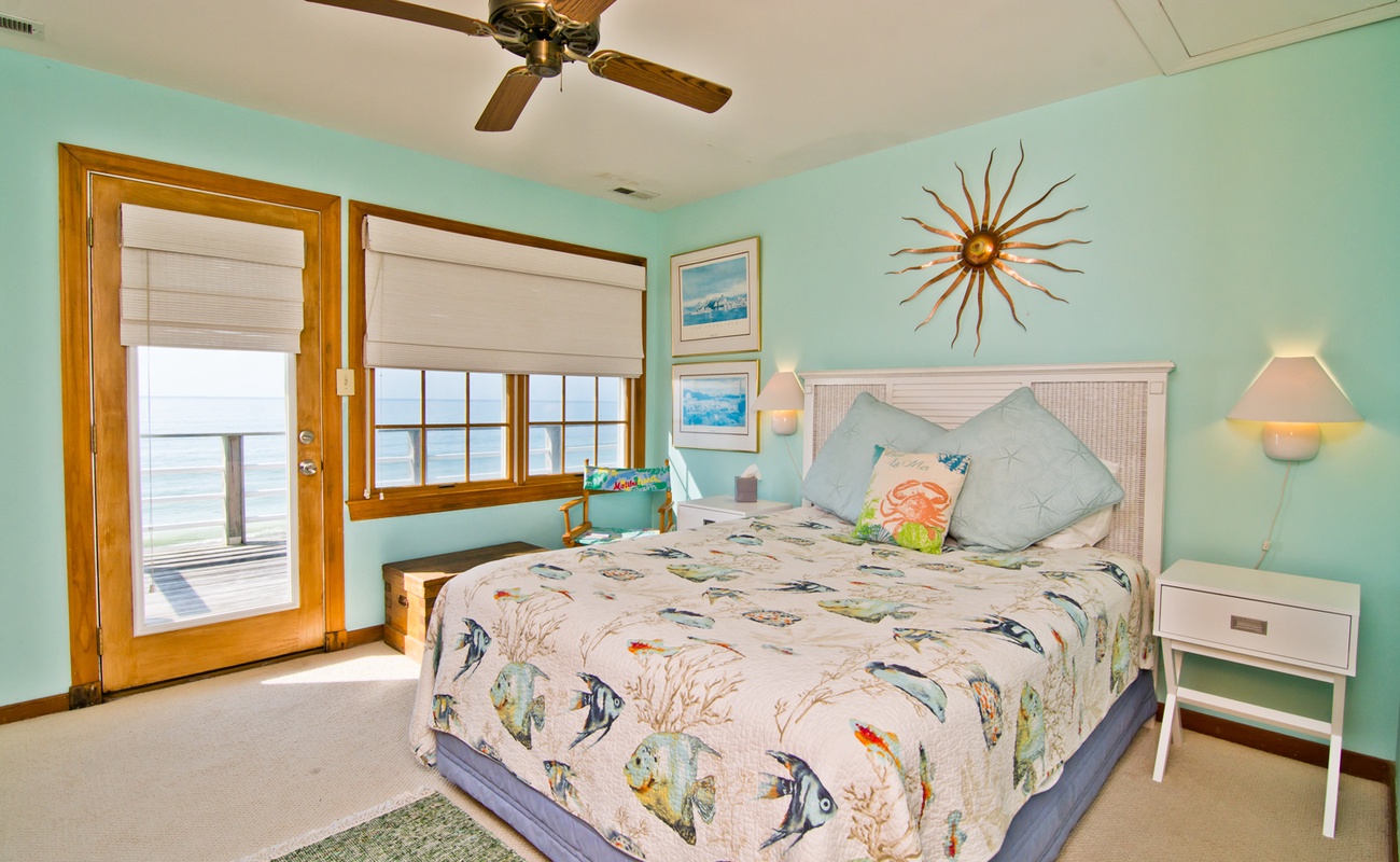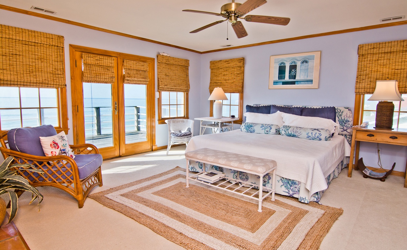 Level Two: Oceanfront Master Suite (Bedroom #2) has a King Bed, a Private Bath and Private Deck access; Bedroom #3 has a Queen Bed.
