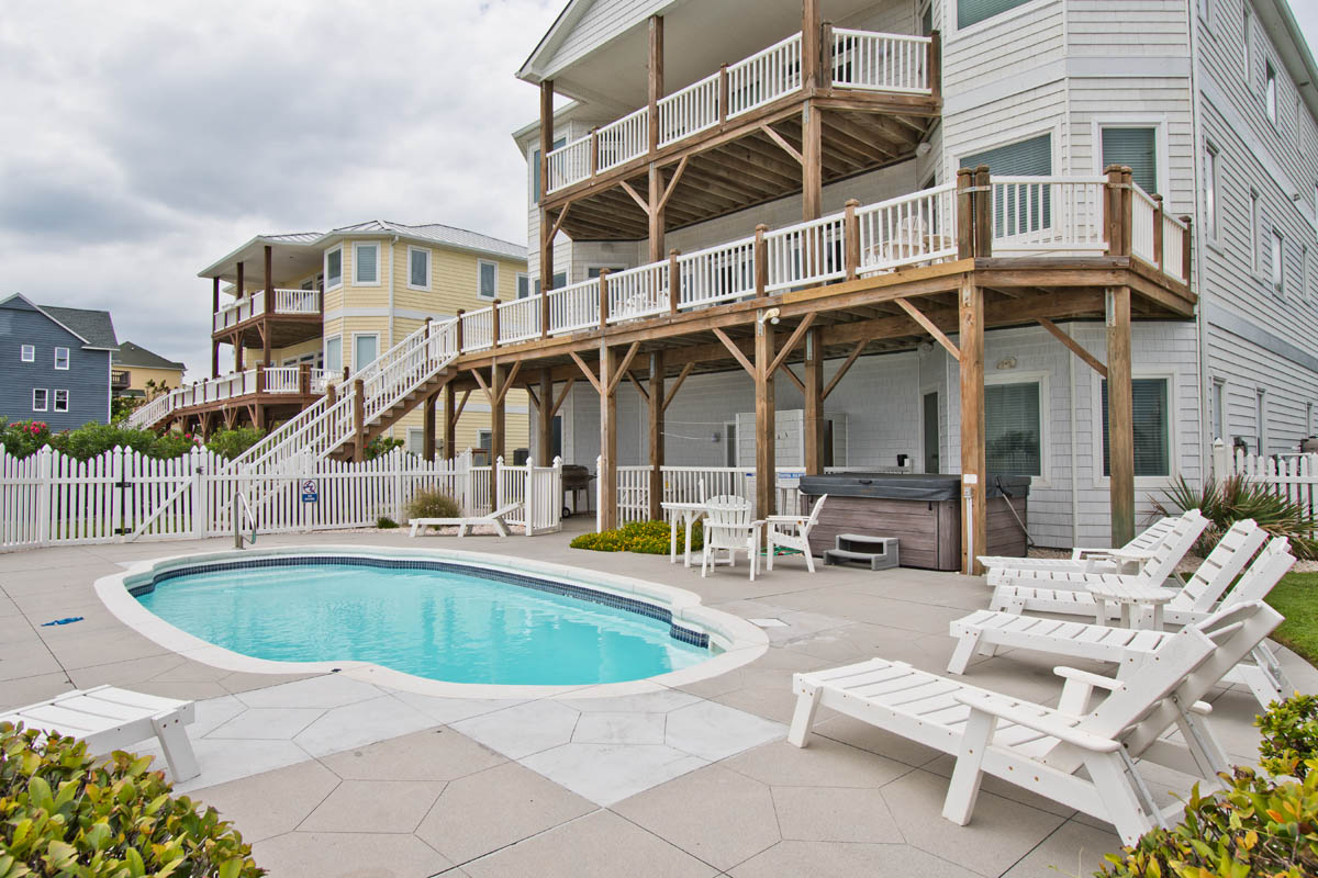 Vacation in this Ocean Front Luxury in the heart of Emerald Isle! With 6 spacious bedroom suites, (5 Direct Ocean Front) and 7 1/2 Baths there is plenty of room for the whole family! An elevator is available to all levels, making the reverse floor plan a breeze! Relax and reconnect with a stunning ocean view backdrop from the living room. Take a dip in the Private Salt Water Swimming Pool (may be heated upon request for $650/week + tax) or soothe away your worries in the bubbles of the hot tub. Have a crowd of kids to entertain? The rec room is the perfect place for the youngsters to have fun! Stream, share or stay updated with High Speed Wireless Internet throughout the home! Watch the sunrise and sunset from Covered decks! Additional Parking available for Casa Bianco guests!