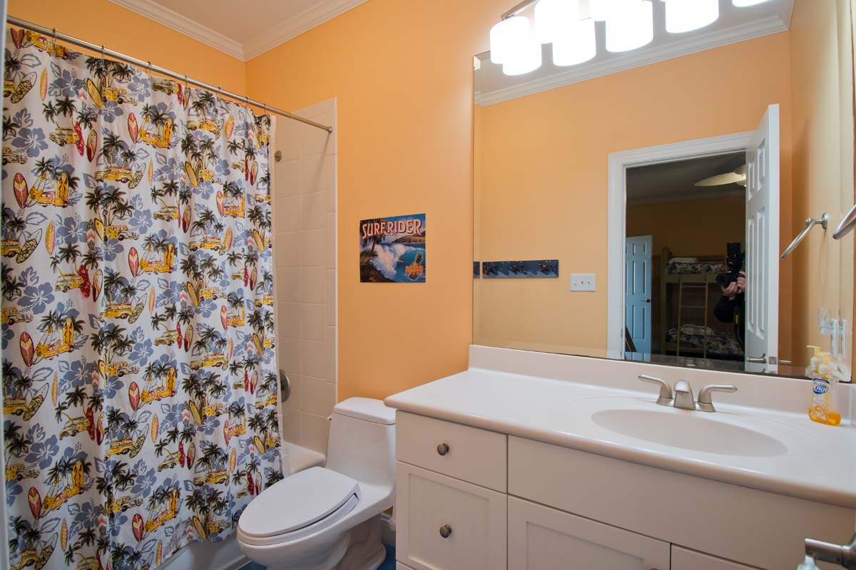 Bedroom #6- 3 Twin bunk beds with TV and tub/shower combination
