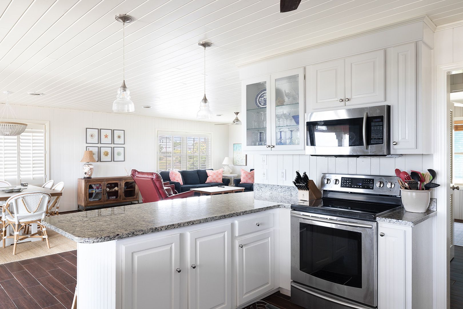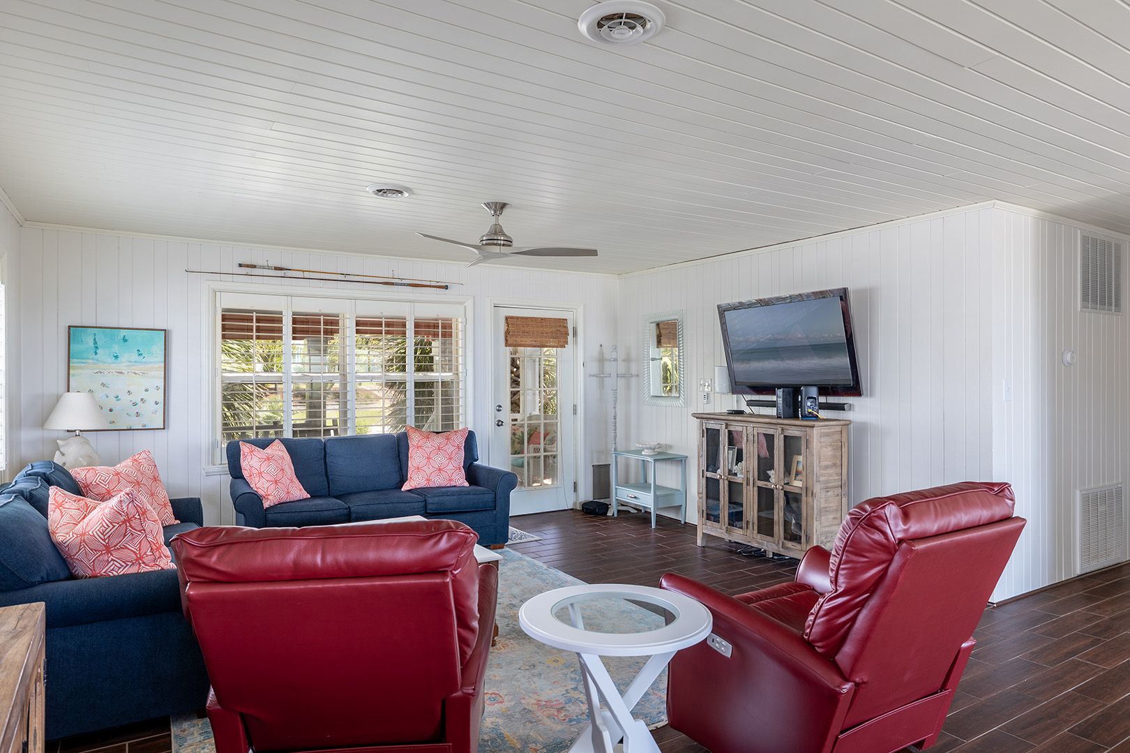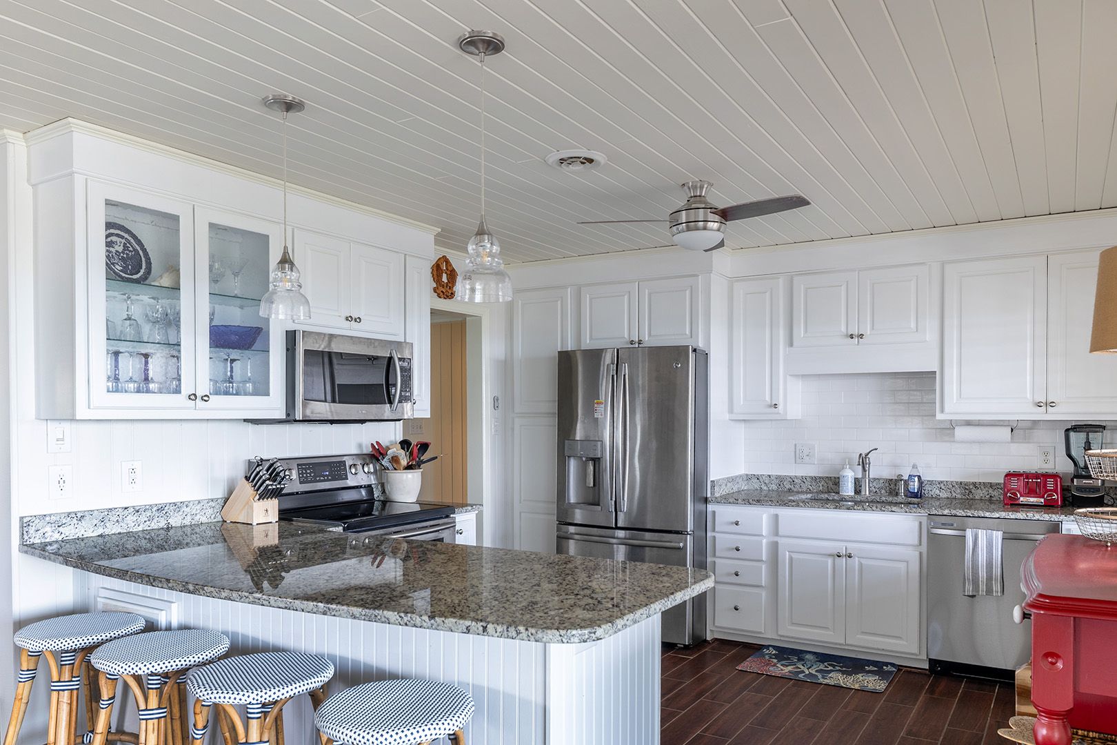 Amenities: 3 Flat Panel TVs including 1 Smart TV, Roku, Wireless High Speed Internet; Central HVAC, Ceiling Fans; Exterior Laundry Room with Washer/Dryer on Deck; Fully Equipped Kitchen with 12 Cup Coffee Maker, Stove/Oven, Refrigerator with Attached Ice Maker, Microwave, Dishwasher, Slow Cooker, Blender; Covered and Open Deck Areas with Furniture; Dunefront Observation Deck; Enclosed Hot/Cold Shower; Gated Private Beach Access; Gas Grill.