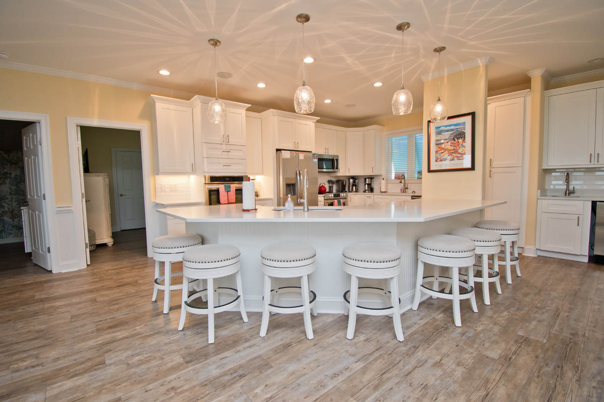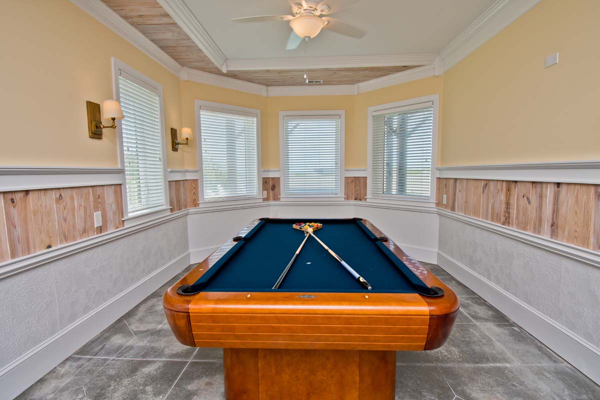 Amenities: Recreation/Game Room with Pool Table and Ping Pong Table; High-Speed Wireless Internet; 9 Smart TVs with streaming cable service; 4 DVD players, 1 Blu-Ray Player; Home Theater System and Indoor Stereo System; Wet Bar; Xbox X Gaming System and Games; Central HVAC, Ceiling Fans; Iron/Ironing Board; Interior Washer/Dryer; Fully Equipped Gourmet Kitchen with Coffee Maker, Keurig Coffee Maker, Range, Double Oven, Refrigerator with Attached Ice Maker, Stand-alone Ice Maker, Microwave, 2 Dishwashers, Griddle; Gas Grill; Enclosed Outside Hot/Cold Shower with Dressing Area; Covered and Open Deck Areas with Furniture; Dune-Top Deck; Private Beach Walkway; Picnic Table; Corn Hole Game.Â