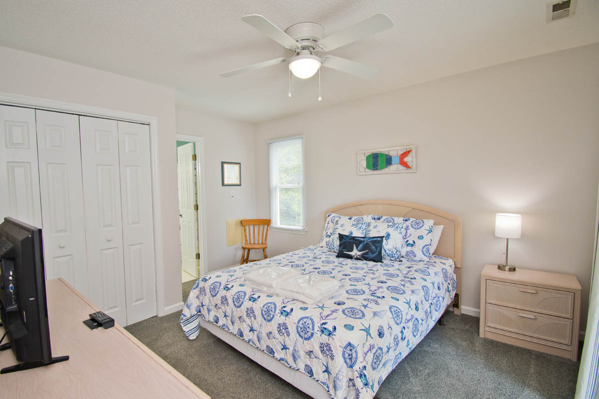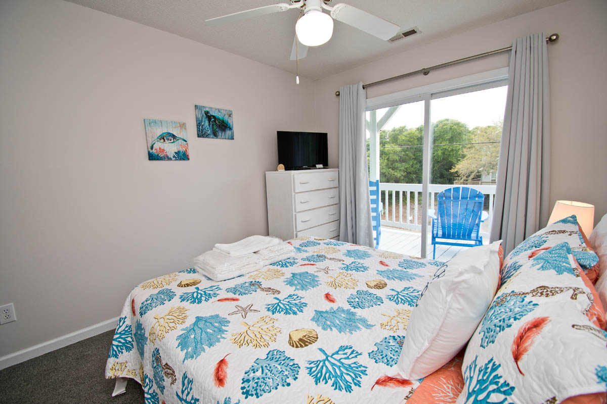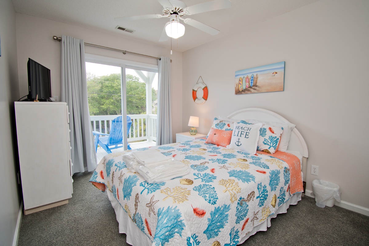 Floor #1 - Bedroom #3 Queen Bed - TV - Deck Access - Half Bath in Hall |