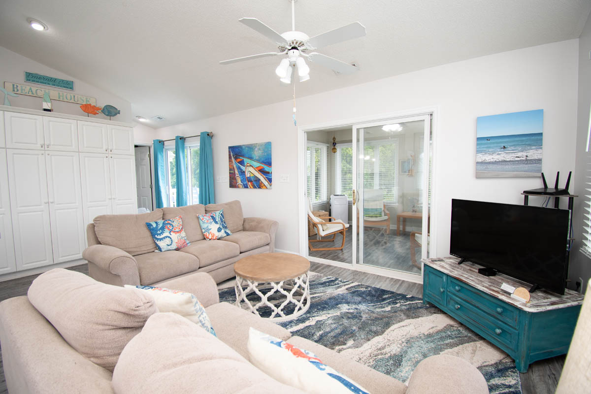 Additional Amenities: This home is equipped with high-speed wireless internet for your convenience! You will have access to a private pool and hot tub as well as an enclosed hot/cold outdoor shower. There is an in-unit washer/dryer, updated kitchen appliances, a toaster oven, a blender, and a Keurig coffee machine. There are 7 TVs throughout the home. You will have access to ample open and covered decks with pretty colorful furnishings that can be accessed from the living room as well as all bedrooms. There is a charcoal grill on the premises, perfect for cooking out on a beautiful evening with your party. Sip your morning coffee while you watch the kids play in the private backyard.