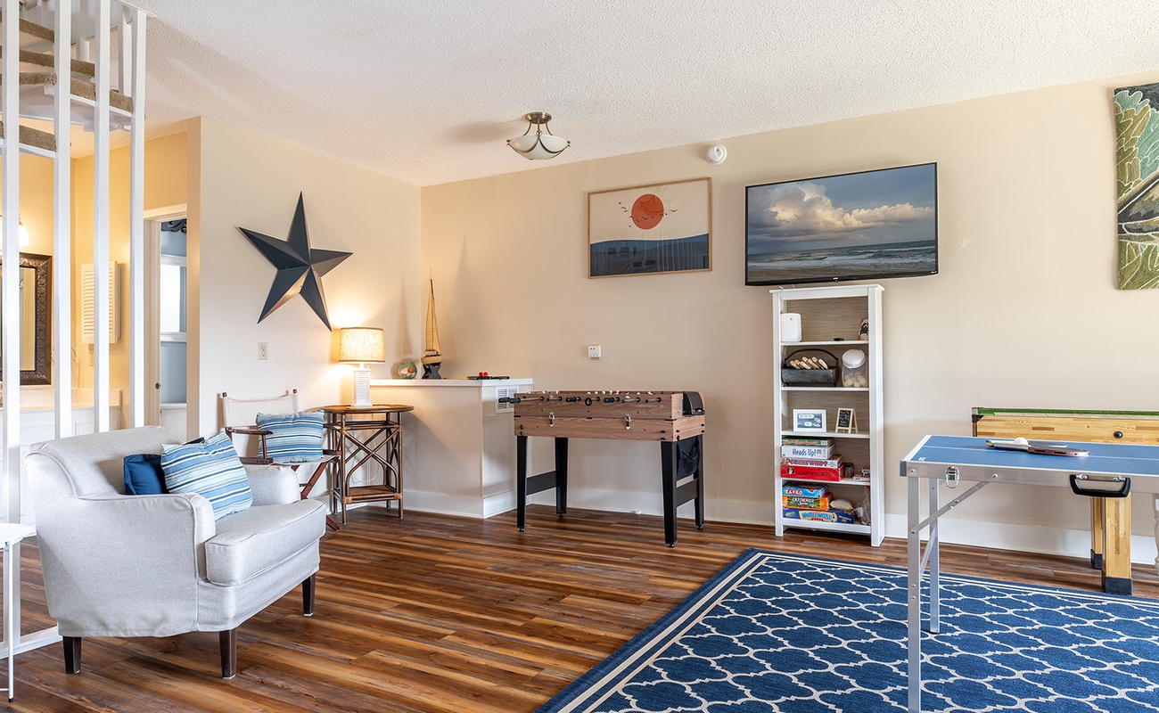 Roku TV, shuffleboard, ping-pong table, 3 in 1 game board, children's board games, adult and children's books, full sized refrigerator