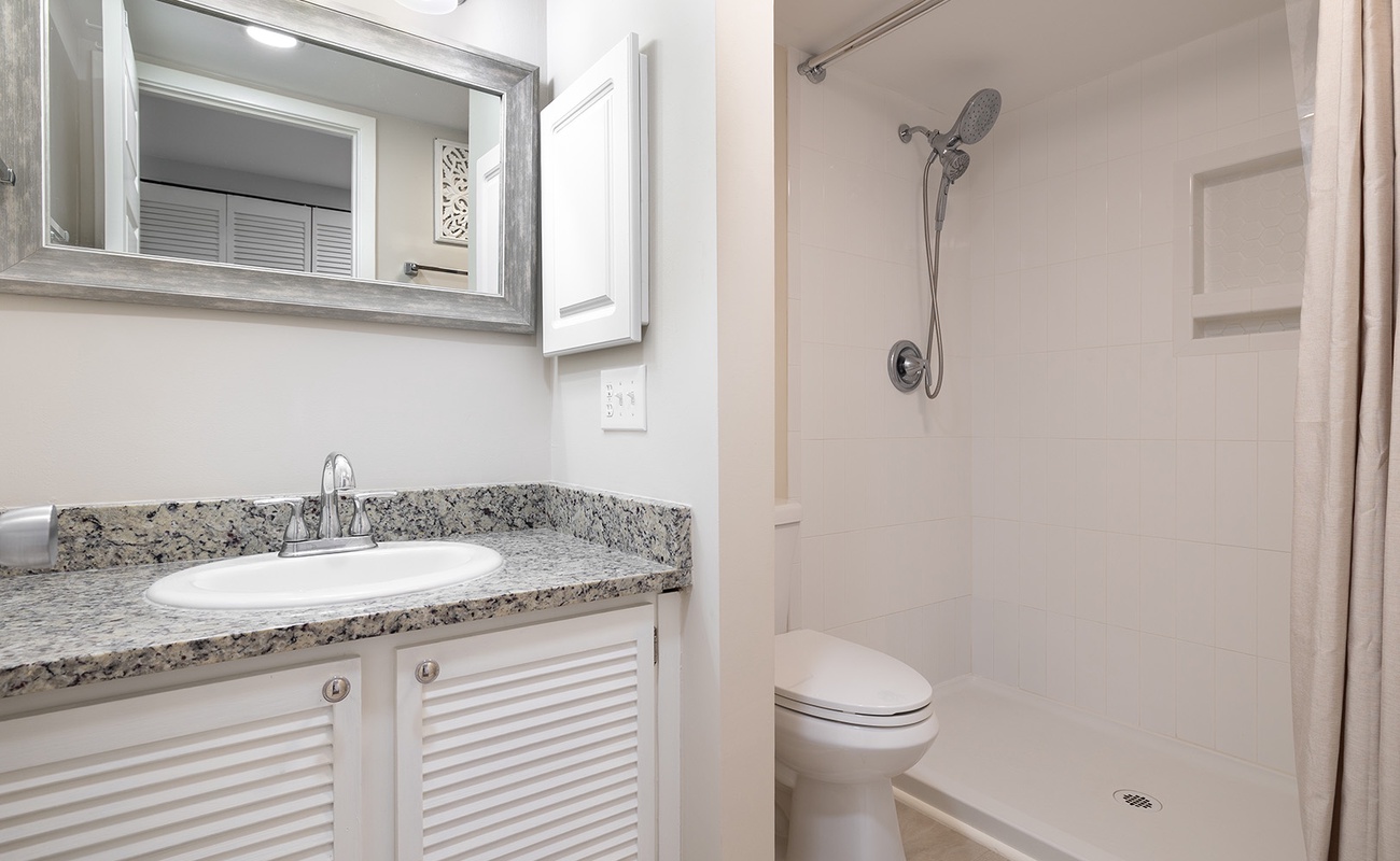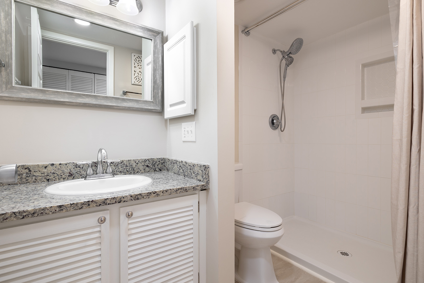Coral Shores Amenities: Shared beach walkway, restroom with private shower, pool, outdoor showers, sitting overlooking the beach