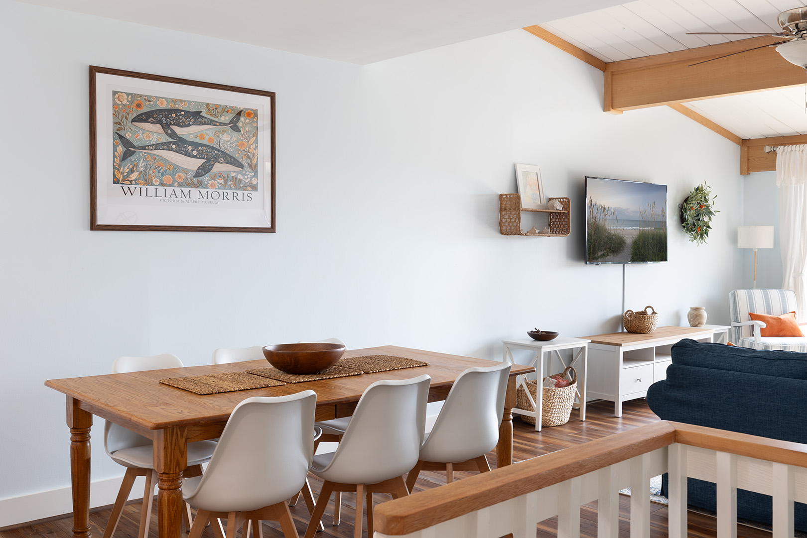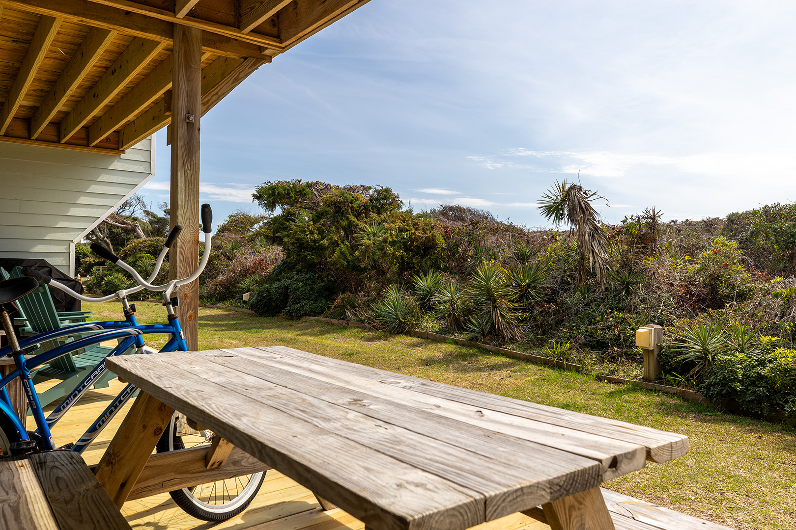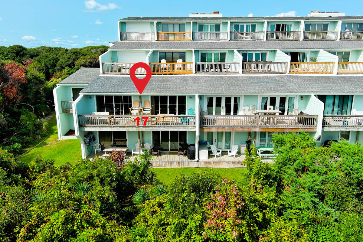 Coral Shores #17 is located in Pine Knoll Shores. It is part of the protected Maritime Forests in North Carolina's barrier island. Coral Shores #17 is a 2 level end unit townhouse with a beautiful view of the ocean over the dune. The coastally decorated townhome allows easy access to all the sites and sounds of both the Atlantic Ocean and Bogue Sound. Located midway between Atlantic Beach and Emerald Isle, Coral Shores #17 is spacious as it comfortably sleeps 8 and seats 6-8 for dining. The townhome allows access to many of the Beacon's Reach amenities (multiple swimming pools basketball court, tennis, pickleball and biking/walking trails). When you're not at the beach or pool, you can enjoy walking or biking among the live oaks of the Pine Knoll Shores Maritime Forest.