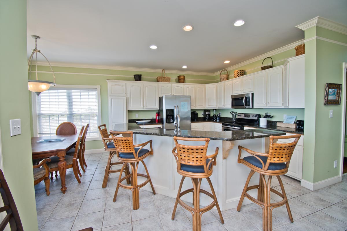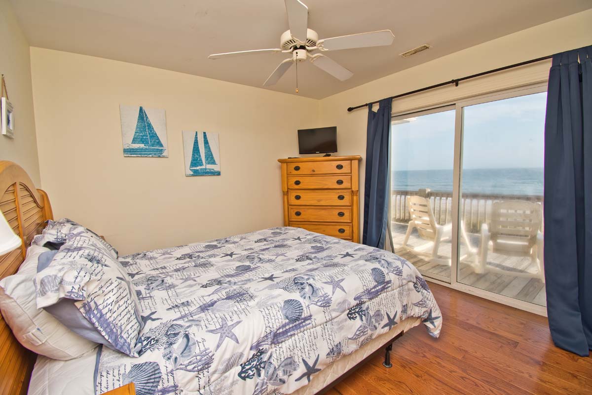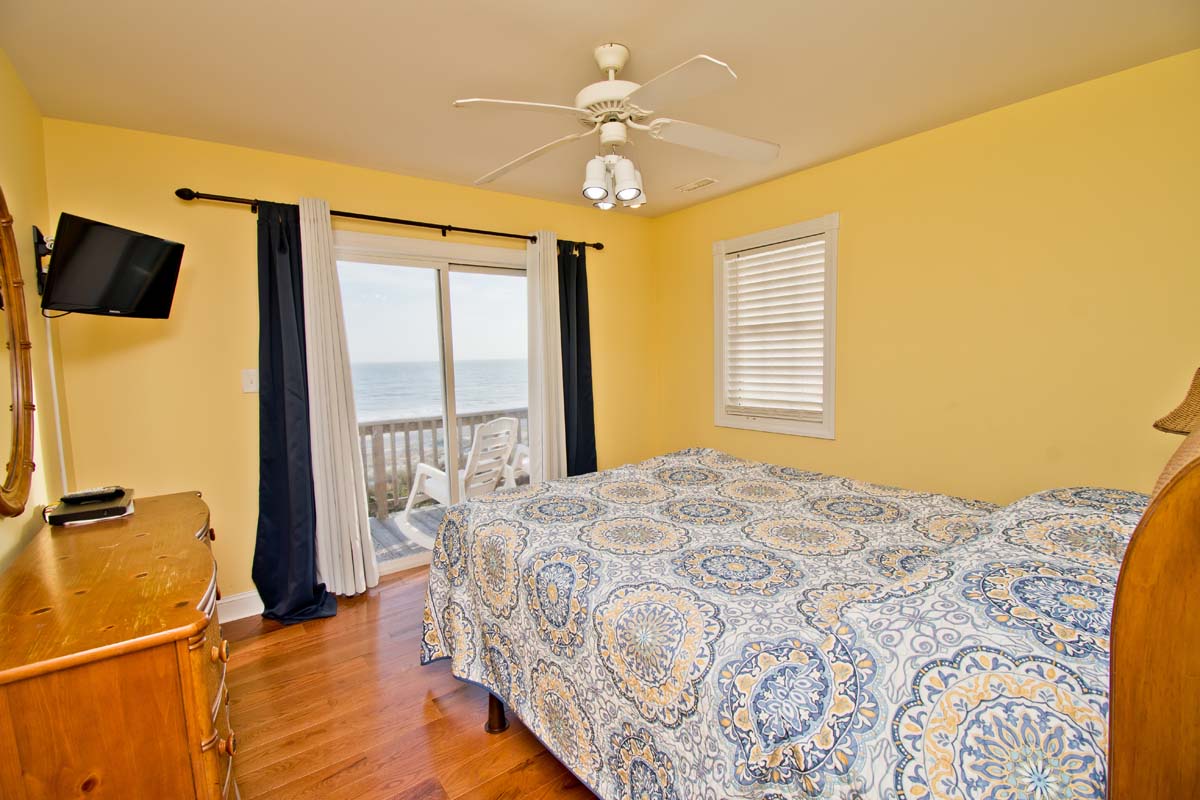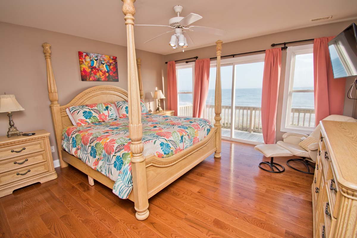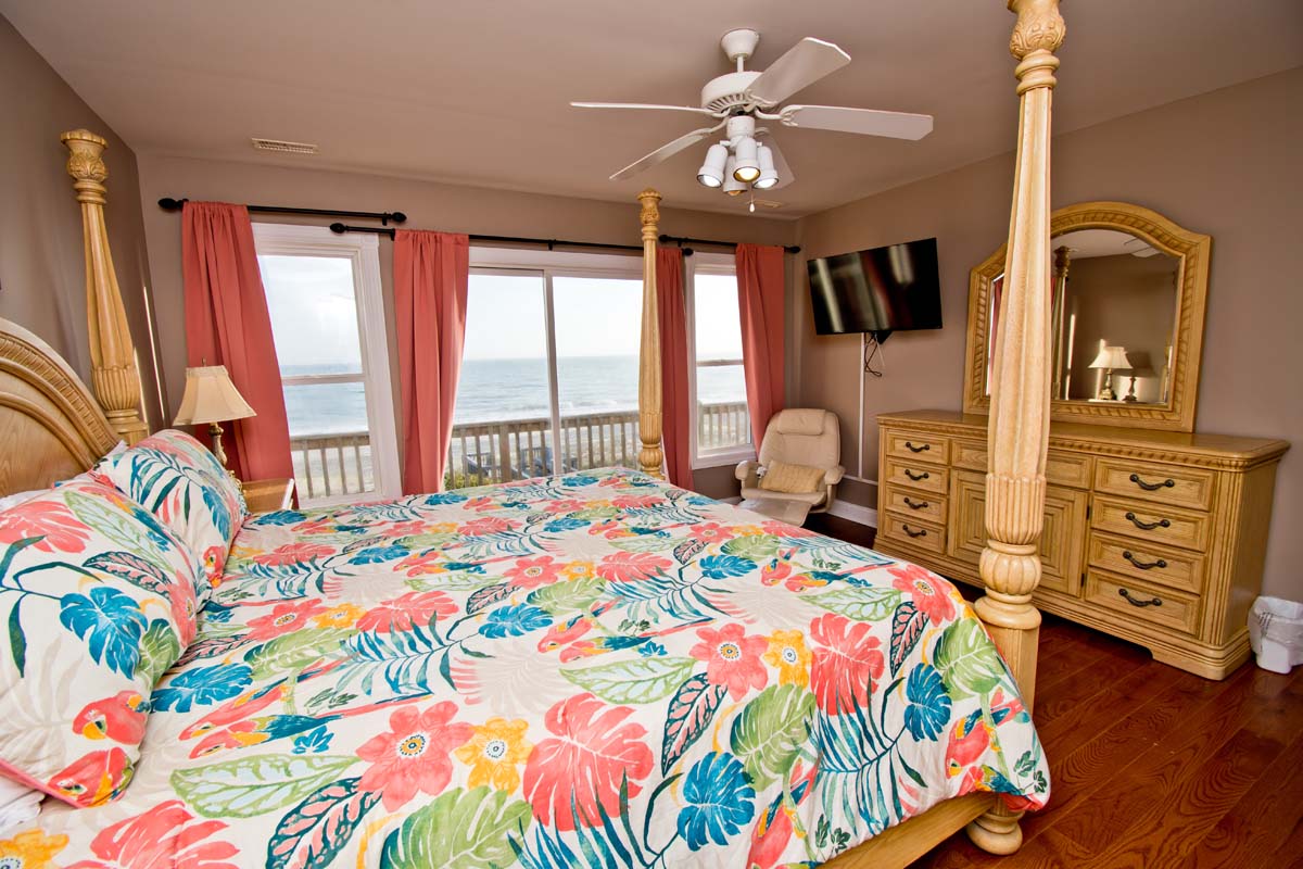 Level #2 has four bedrooms. Bedroom #3 which also is an oceanfront Queen bedroom with deck access and flat screen Smart TV with Roku. Bedroom #4 is the Master bedroom with its own private bath, King sized bed, deck access and flat screen Smart TV with Roku. Bedroom #5: has Twin/Double Bunk Set and Bedroom #6: has one queen bed. Bedroom #5 & #6 share a full bathroom.