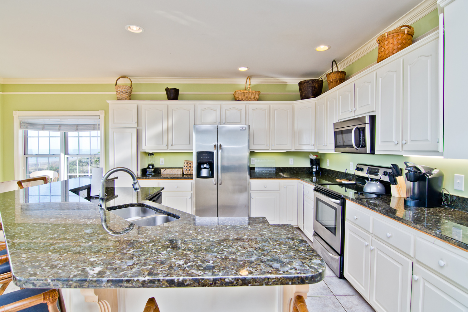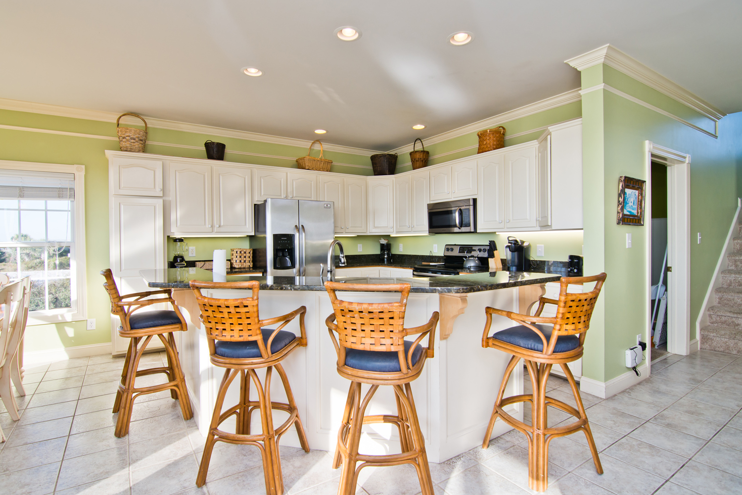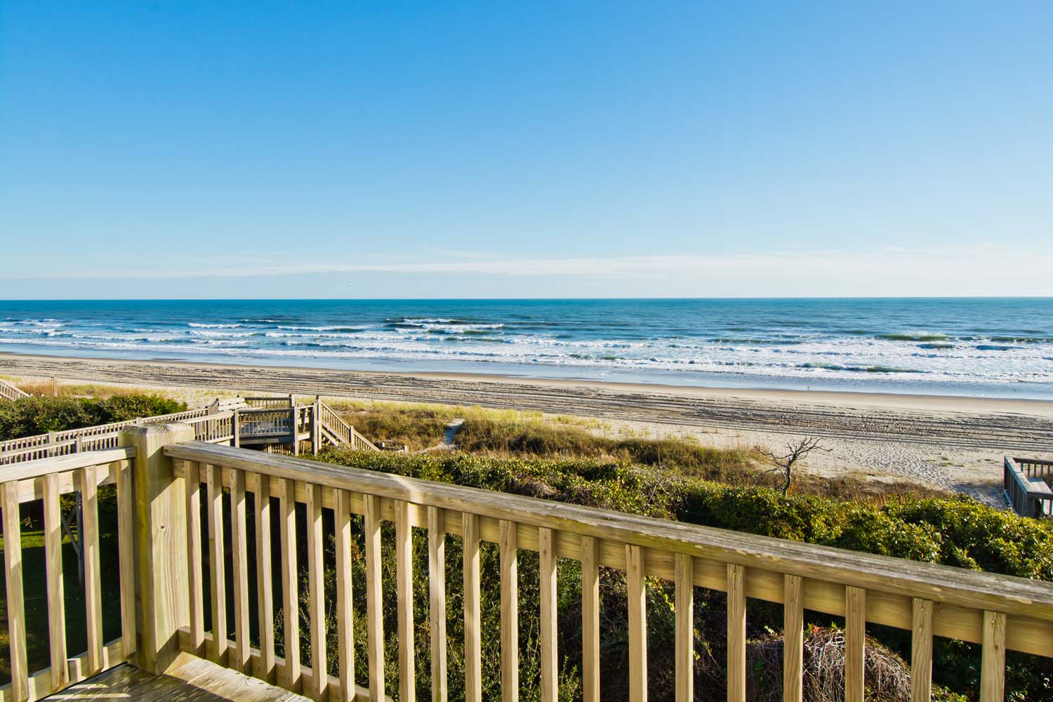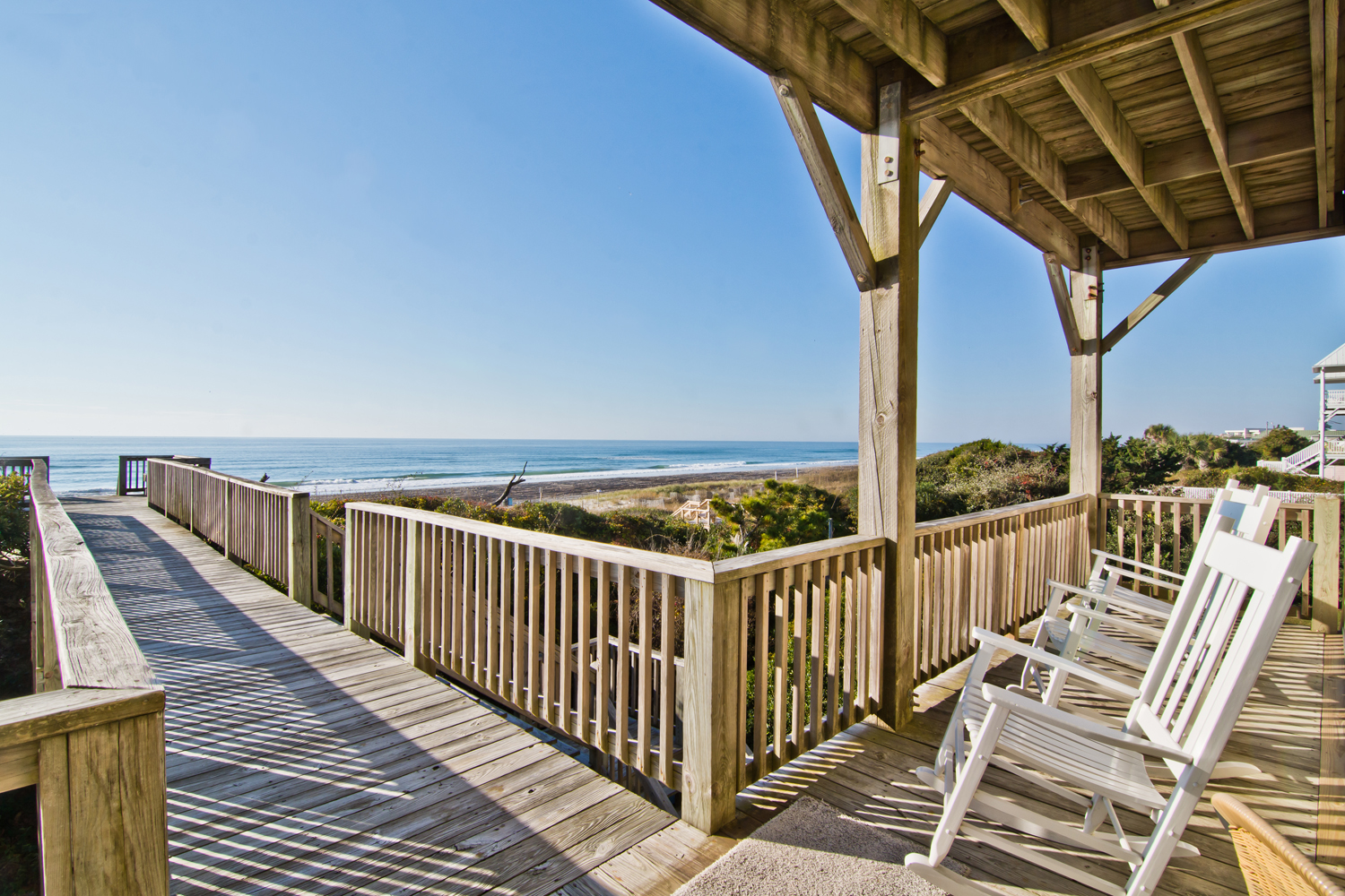 Level #2 has four bedrooms. Bedroom #3 which also is an oceanfront Queen bedroom with deck access and flat screen Smart TV with Roku. Bedroom #4 is the Master bedroom with its own private bath, King sized bed, deck access and flat screen Smart TV with Roku. Bedroom #5: has Twin/Double Bunk Set and Bedroom #6: has one queen bed. Bedroom #5 & #6 share a full bathroom.