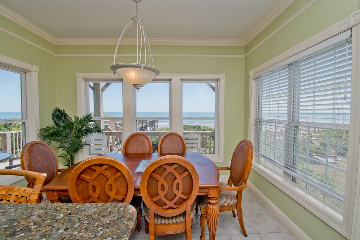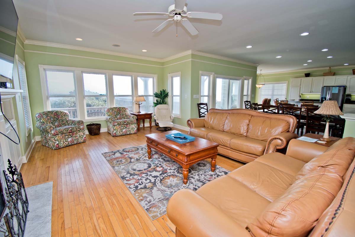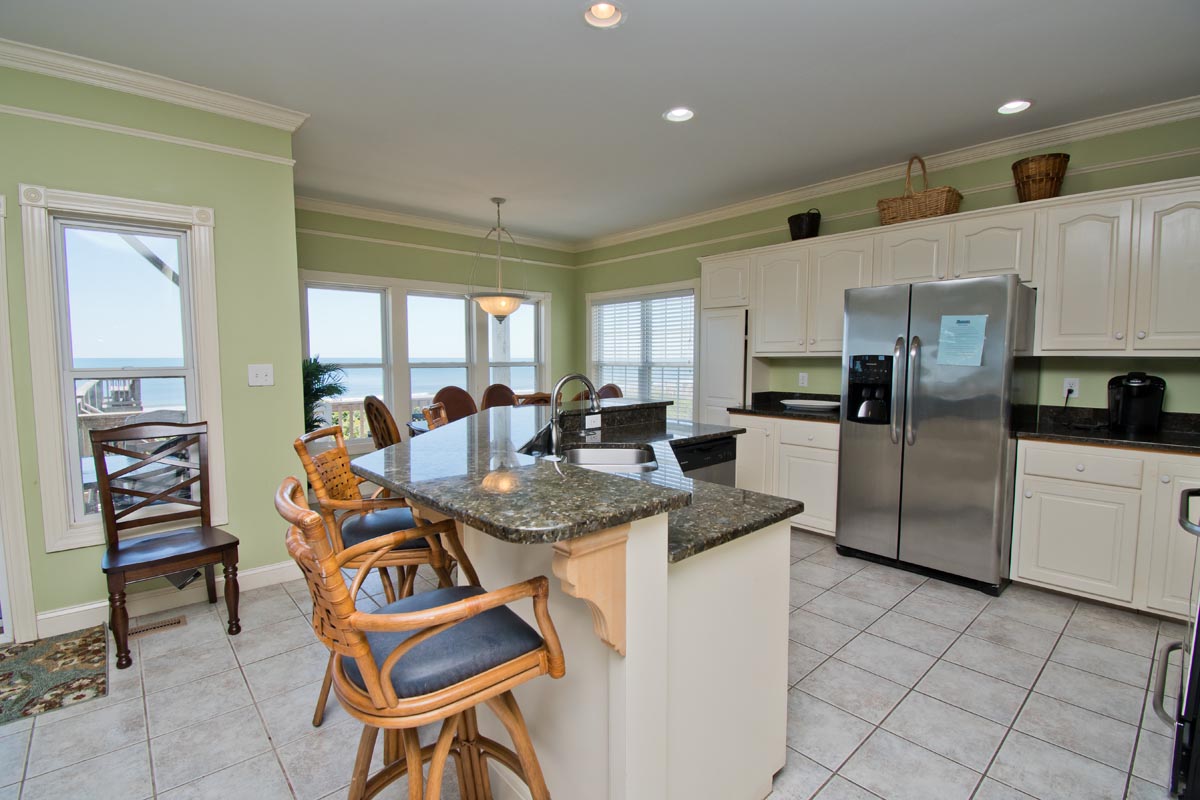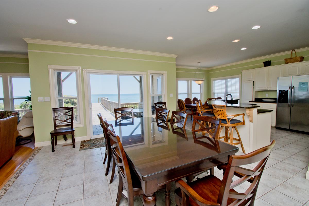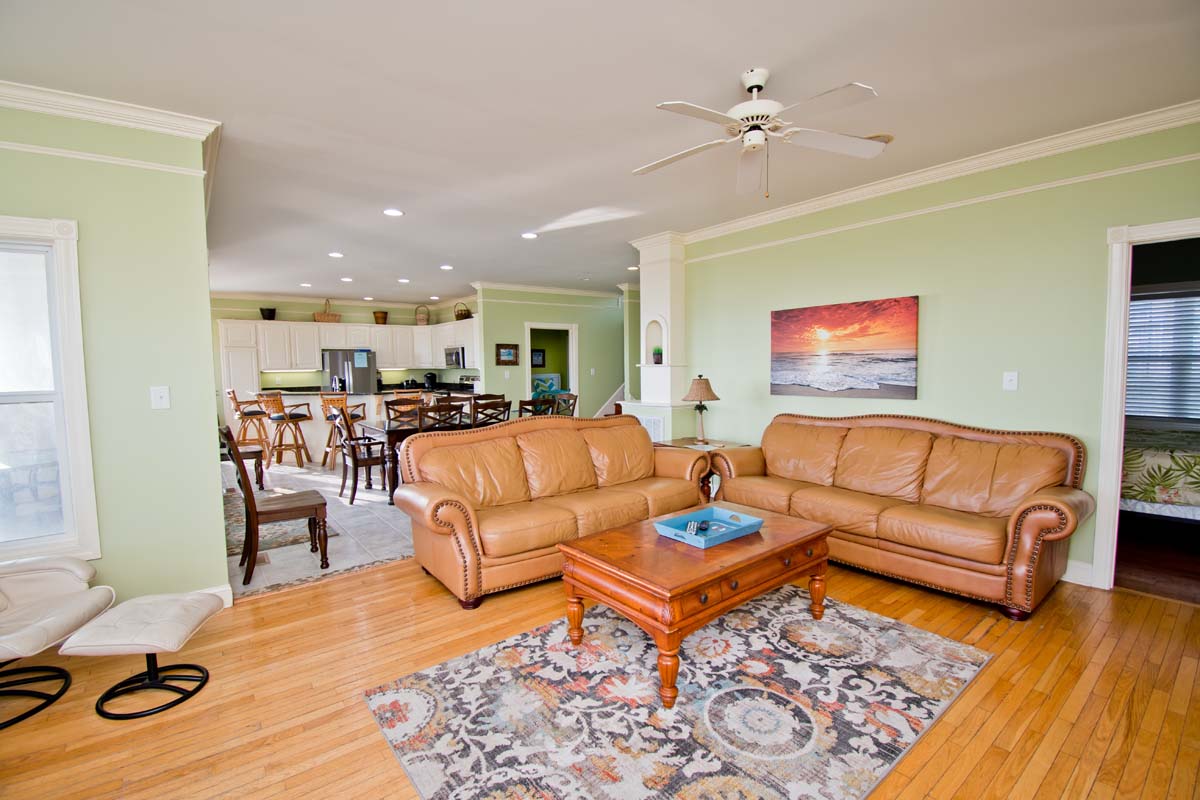 Level One: Is the main living space of the home with deck access, cozy living room area that has comfy leather couches, 2 Dining room tables and full kitchen with bar seating. Bedroom #1 is oceanfront with deck access, a Queen sized bed, Smart TV with Roku and shares a bath with Bedroom #2 that has 2 twin beds.