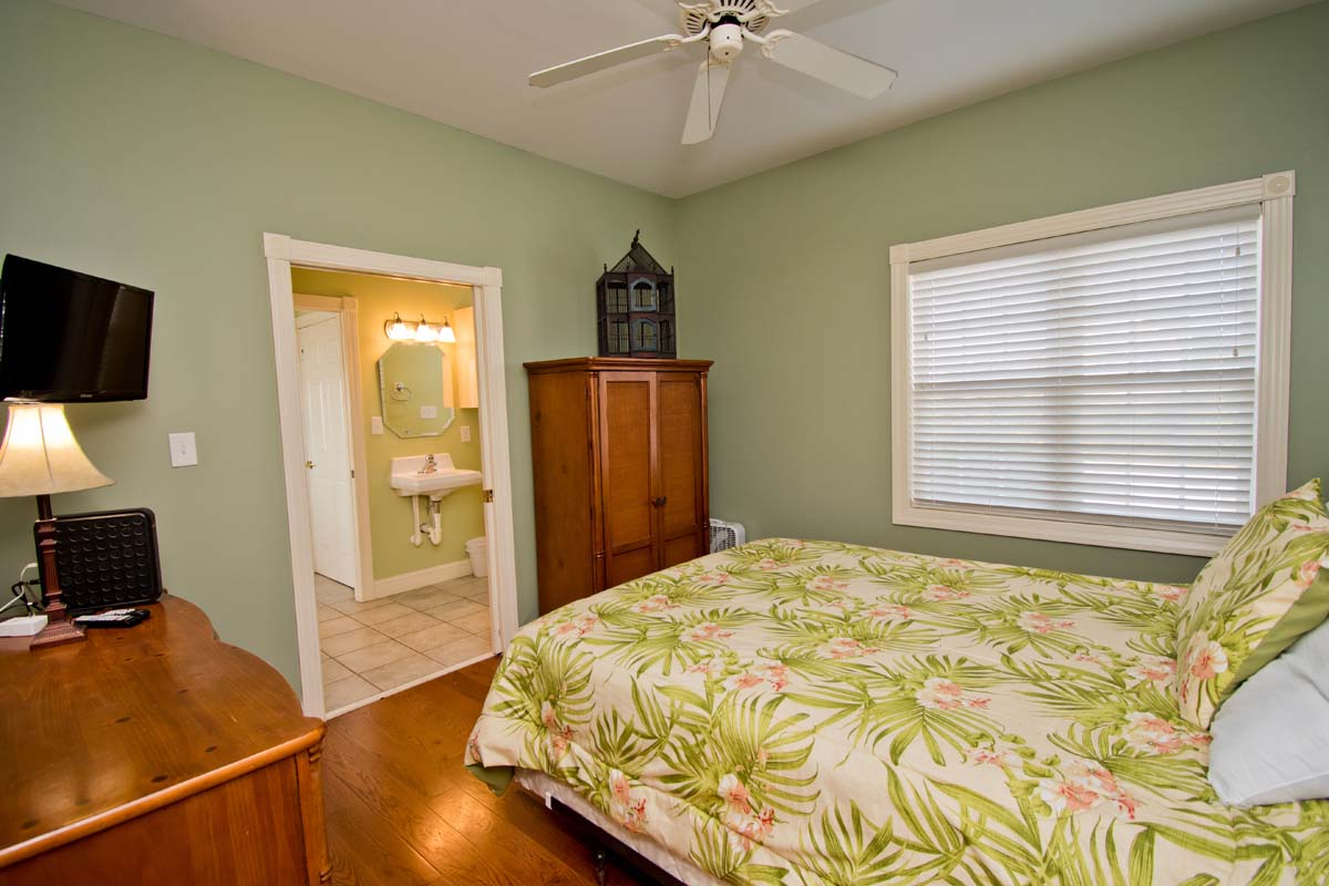Floor #1 - Bedroom #1 Attached Bathroom Queen Bed - TV - Attached Shared Bath |