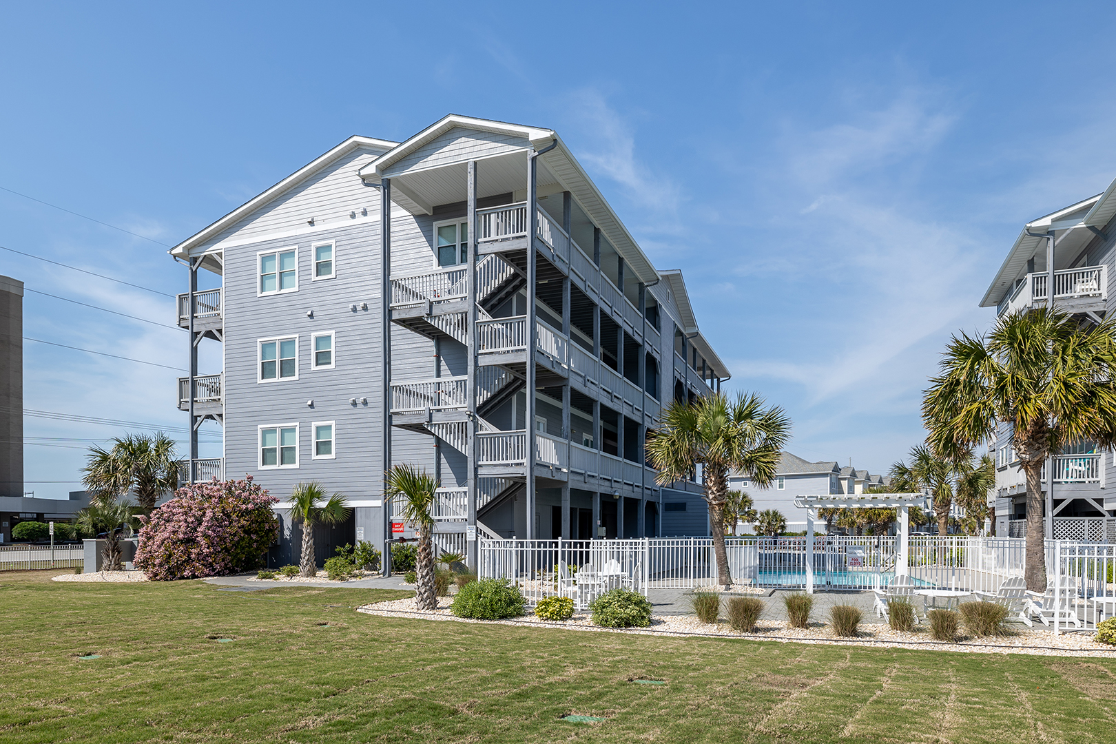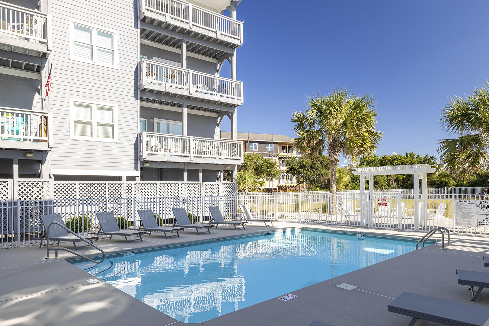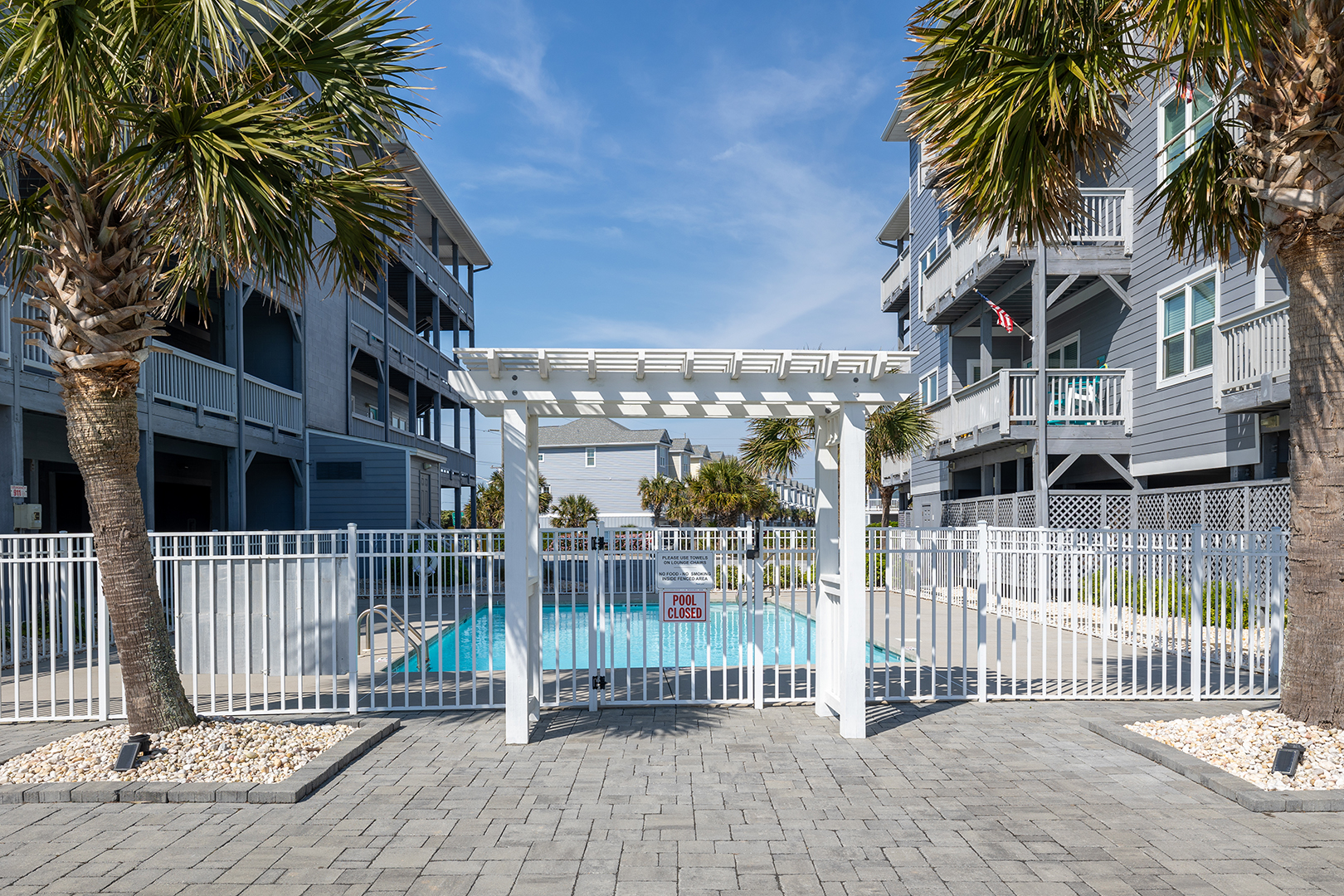 Community Features: Complex has Building Elevators, Community Outdoor Pool, Beach Access Across the Street, Community Cold Outdoor Showers, and Picnic Table Areas. Bluewater cannot guarantee complex/community amenities will be in service during the time of your stay.