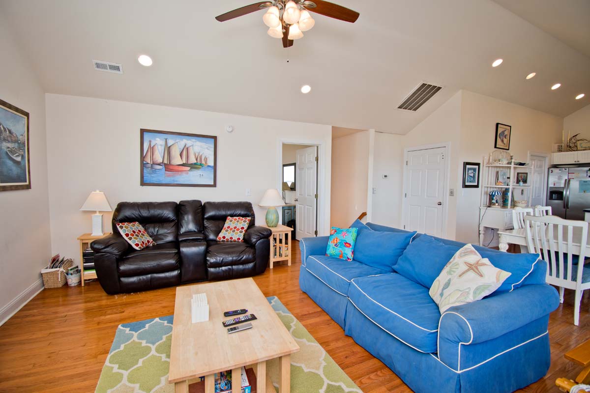 C-Sea and Sound has a large open living area that provides a wonderful place for your family to gather. Living Area also has a Flat Screen TV with a separate CD/DVD player. The outdoor deck is an excellent place to relax and enjoy the beach scenery and the ocean breezes while in the hot tub. Bedding Includes: 5 Queen Beds and 1 Twin Bed.