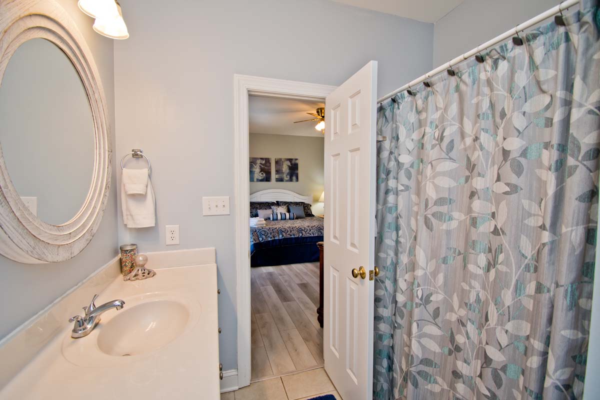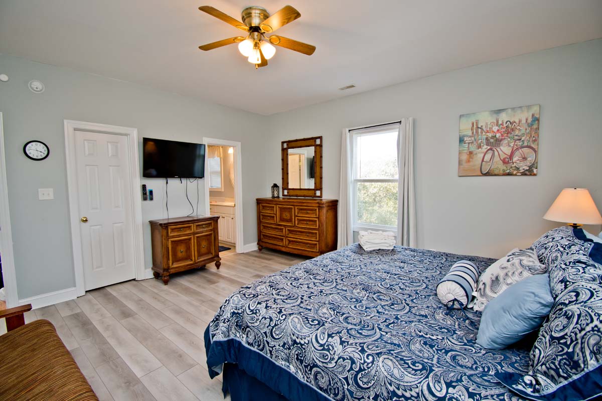 Floor #1 - Bedroom #3 Attached Bathroom King Bed - TV - Private Bath - Deck Access |