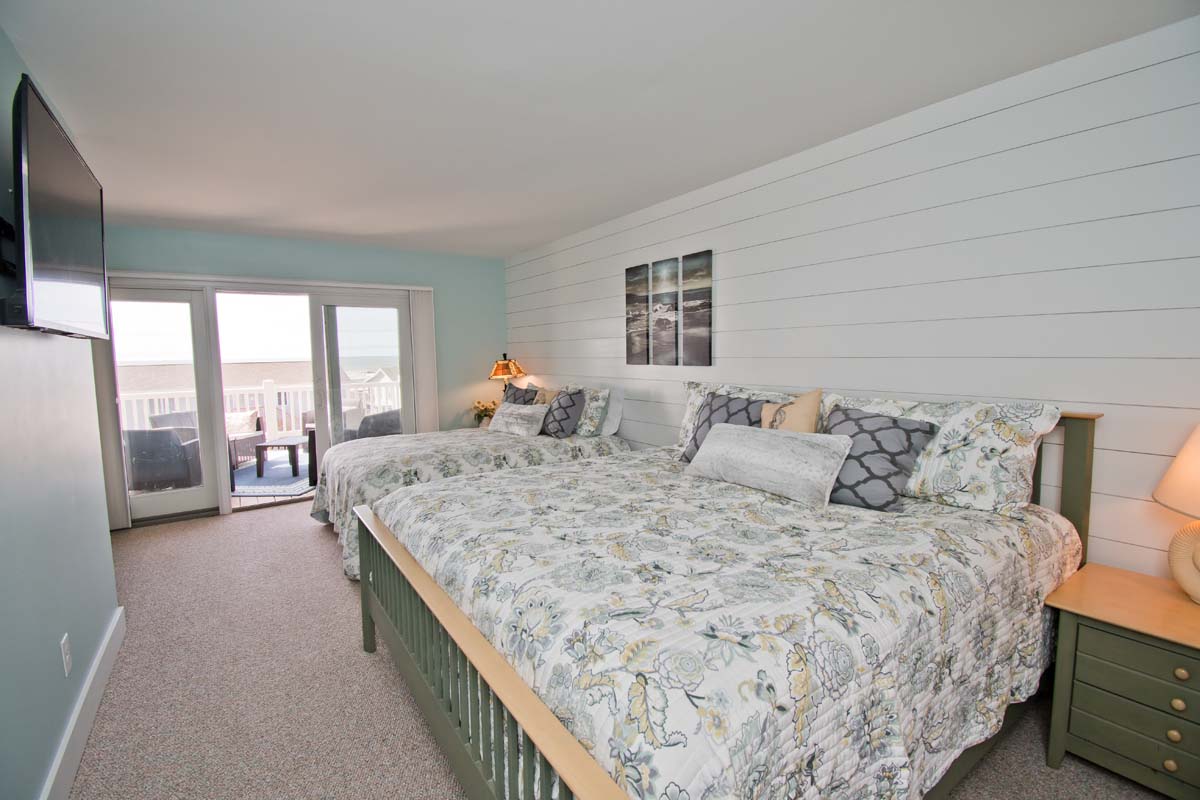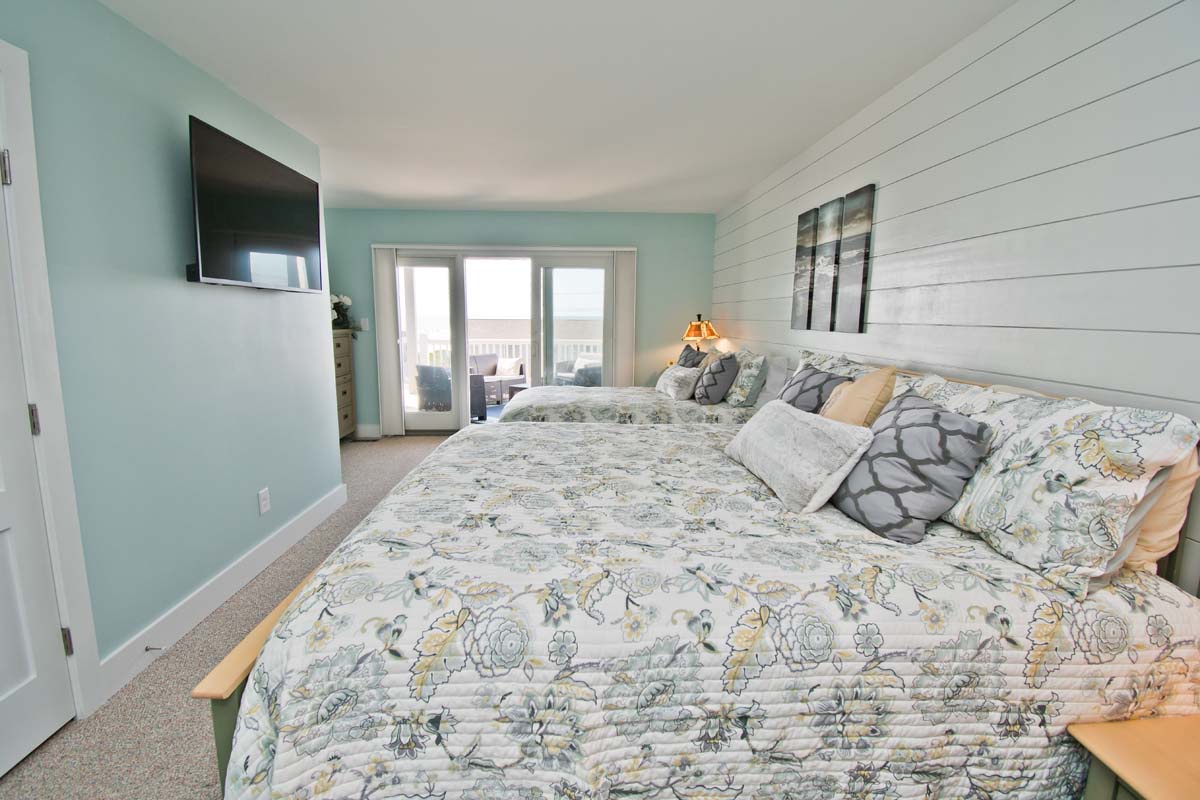 Bedroom #1 includes a king and queen bed, deck access, a private bathroom, a Smart TV, and beautiful ocean views.