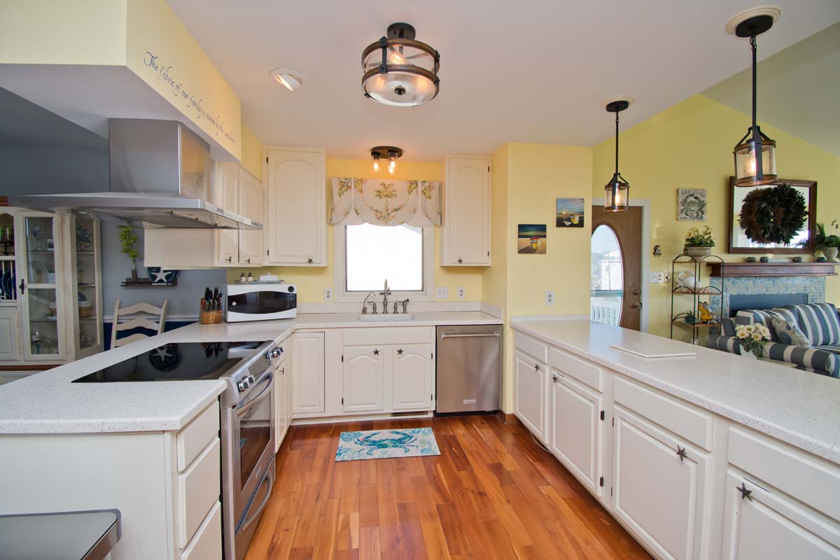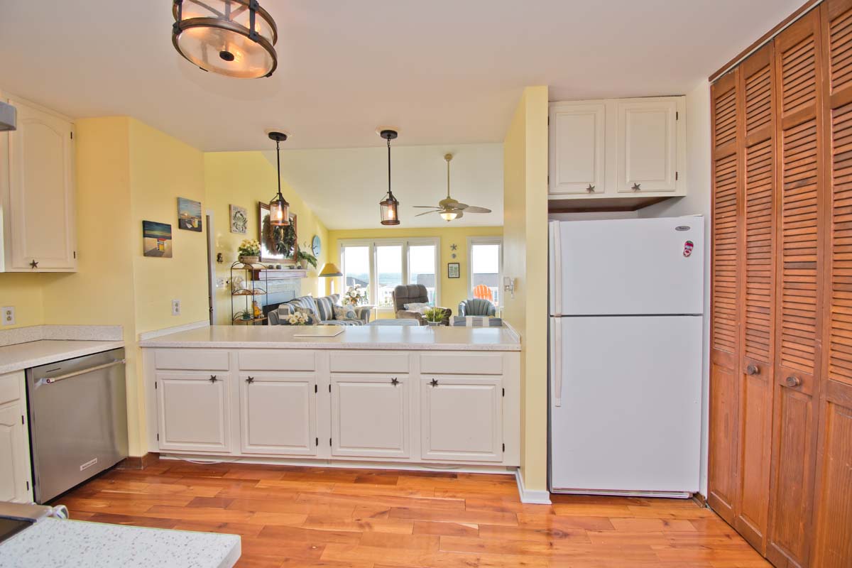 The Fully-Equipped Kitchen has a plethora of features including a Mr. Coffee coffee maker, a Keurig coffee maker, garbage disposal, an oven, not one but two refrigerators, a microwave, a dishwasher, and a blender - hello, beachside margaritas!