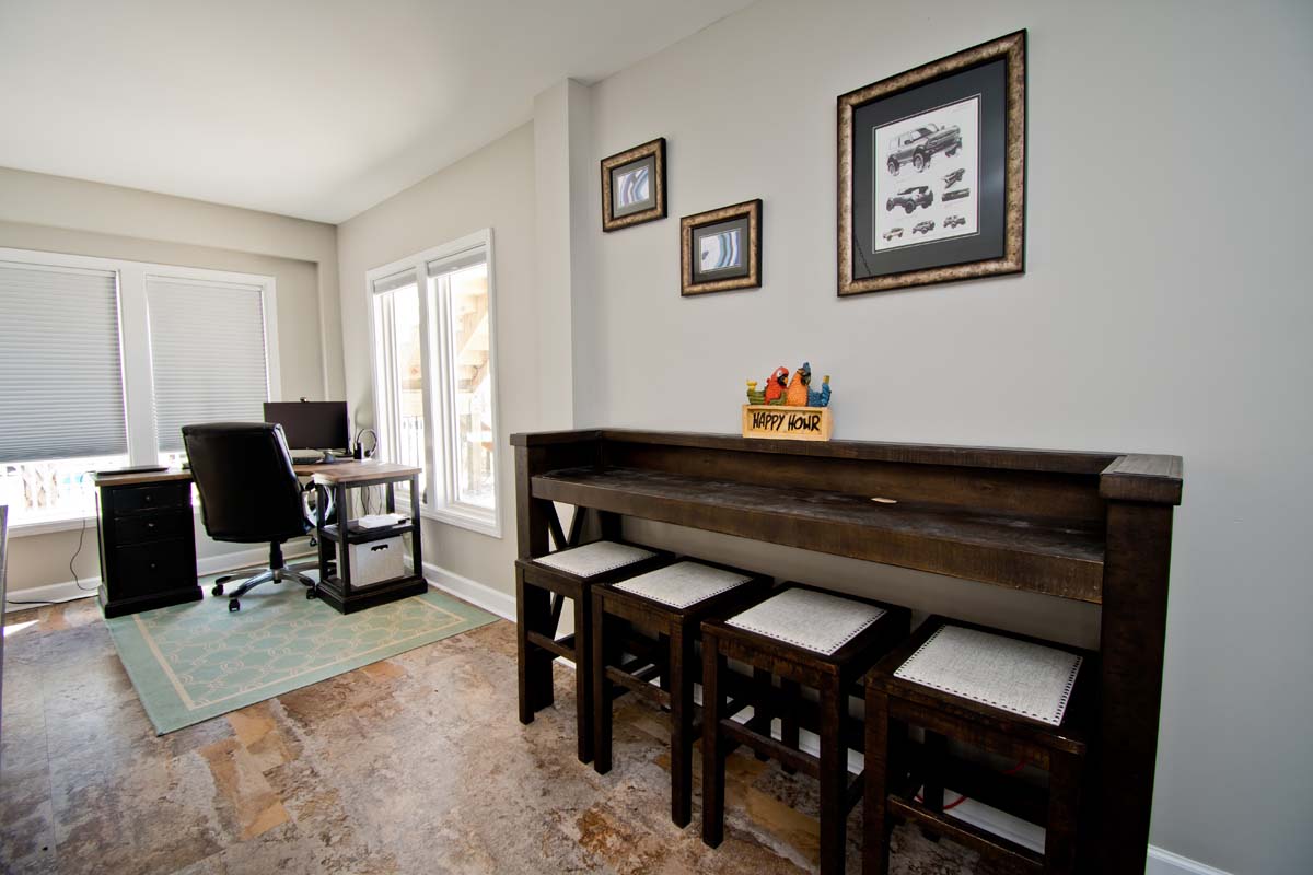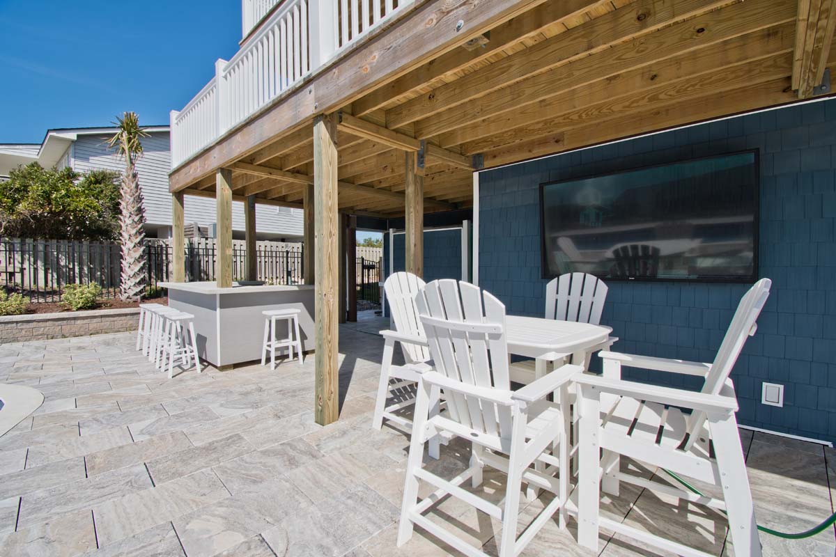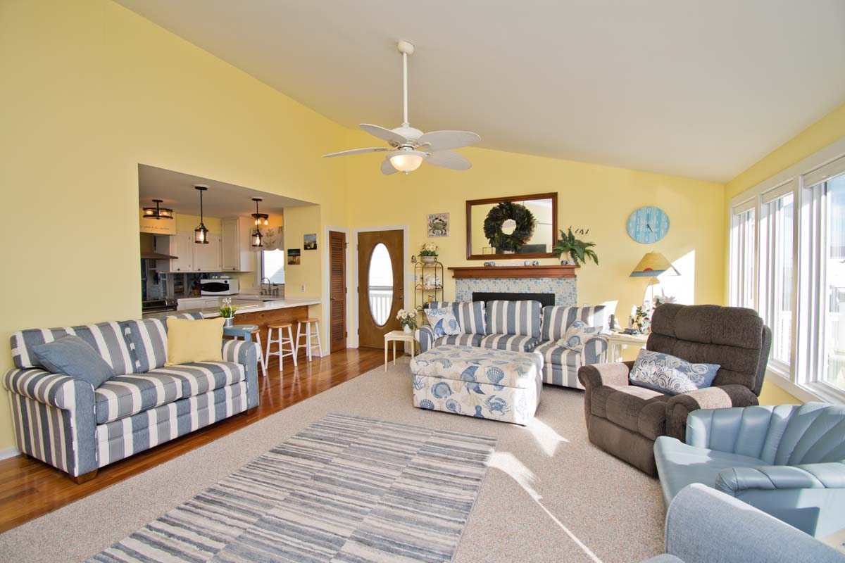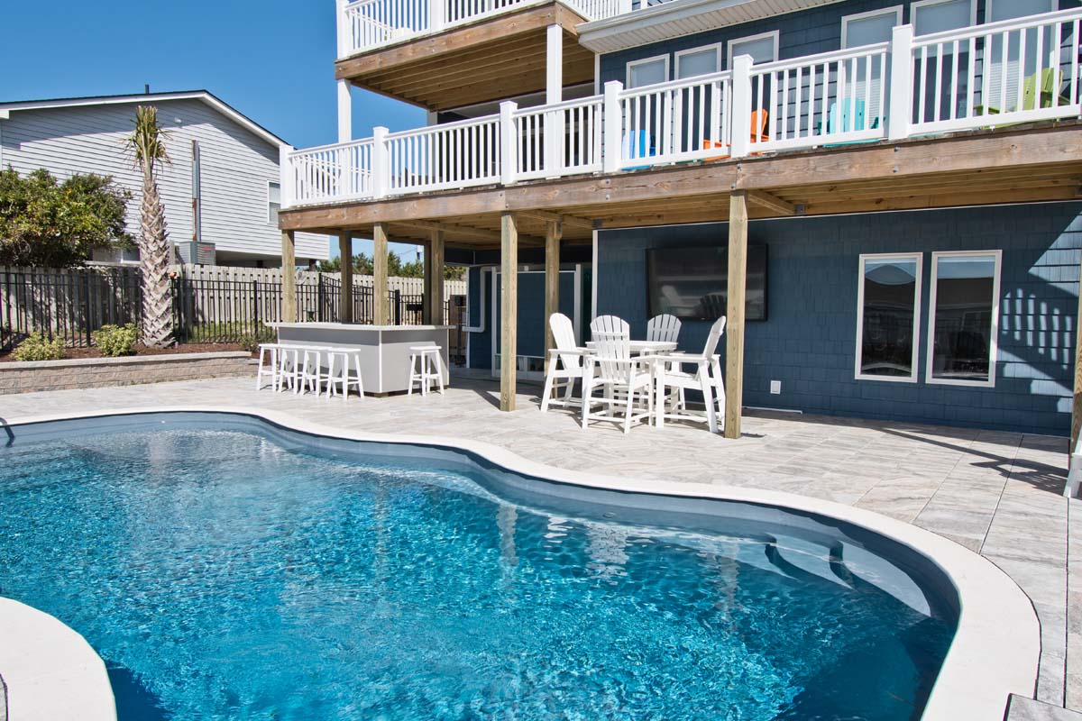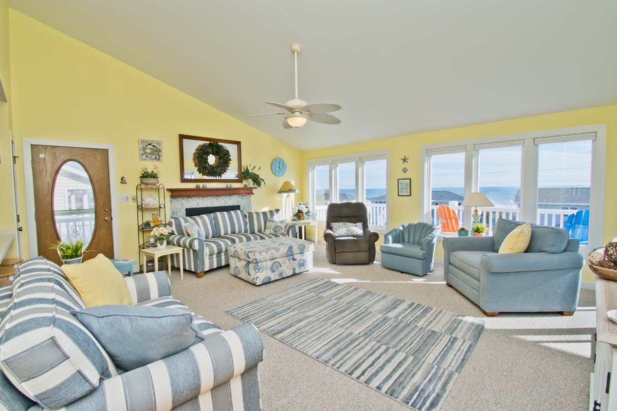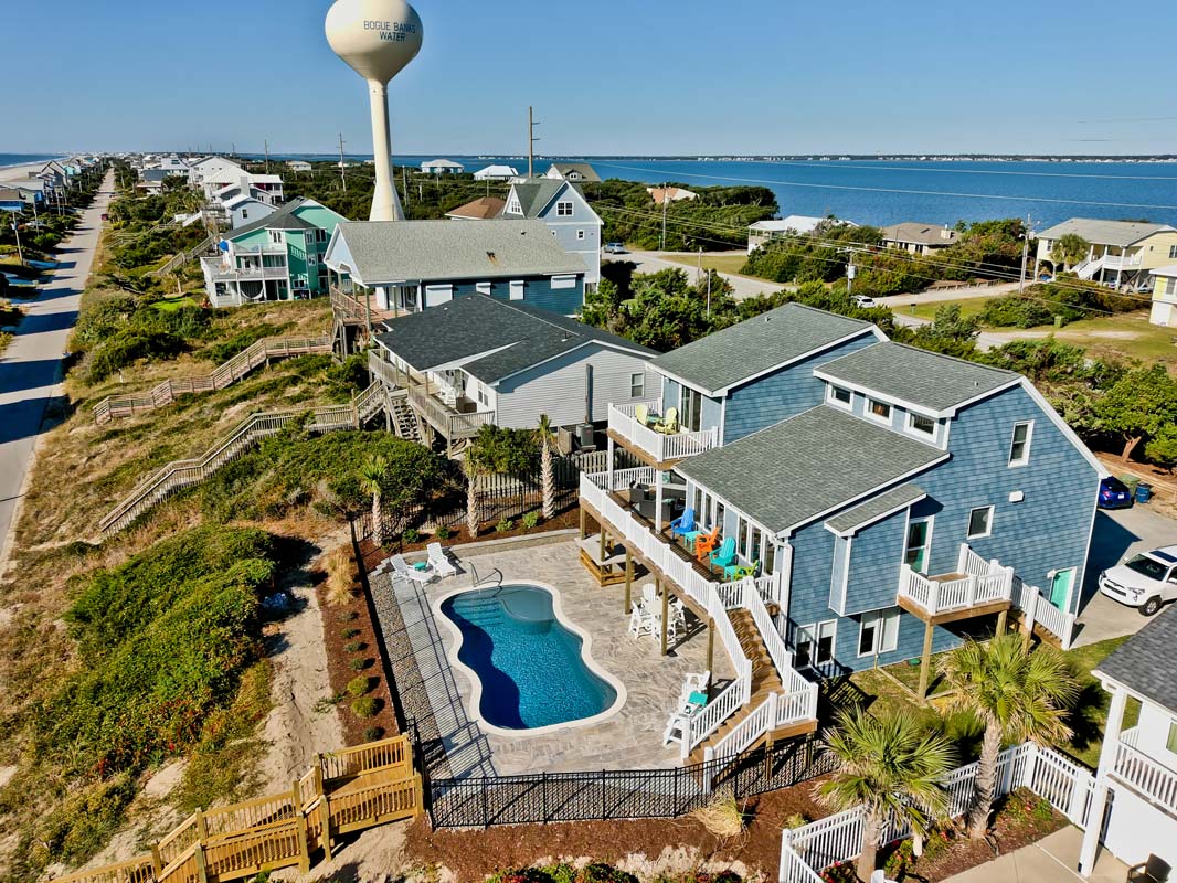 There is a gorgeous pool with travertine tiles (Pool can be heated for an additional fee of $650/week + tax), ample parking, a convenient walkway to Ocean Drive, a fenced side-yard that is perfect for children or pets, a separate dining space, mainfloor master bedroom, a bonus room for gathering (with a pool table) and an office desk that overlooks the ocean!