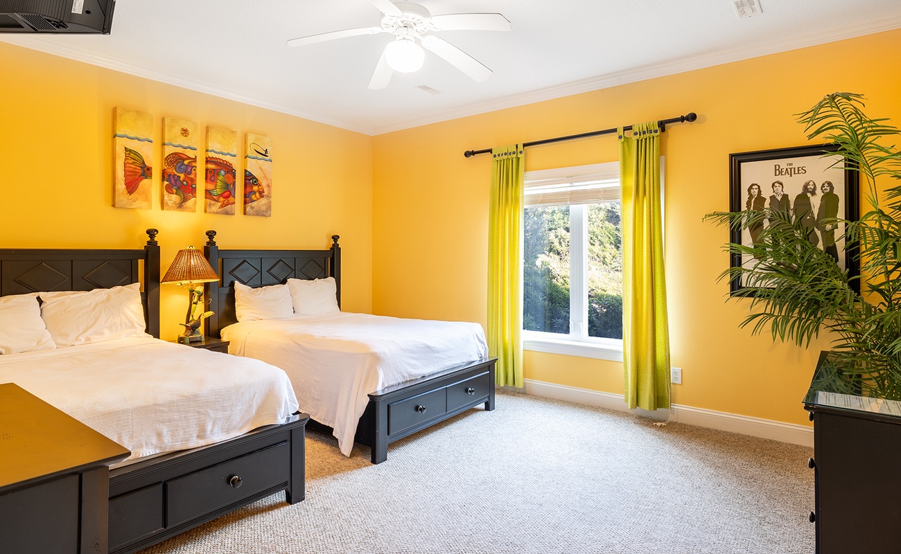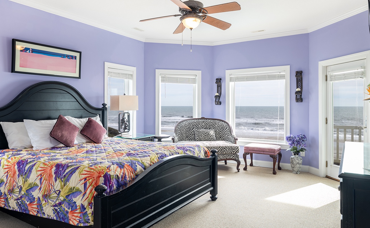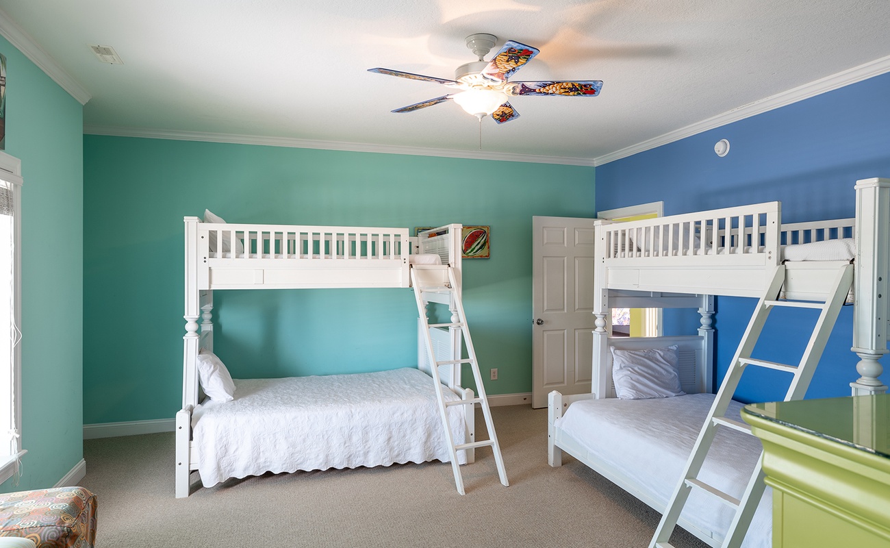 Floor #2: Oceanfront Purple Bedroom with King Bed and Full Bath, Oceanfront Yellow Bedroom with King and Twin Daybed and Full Bath, Streetside Blue Bedroom with 2 Double/Twin Bunk Beds and Full Bath, Oceanfront Blue Bedroom with King and Full Bath