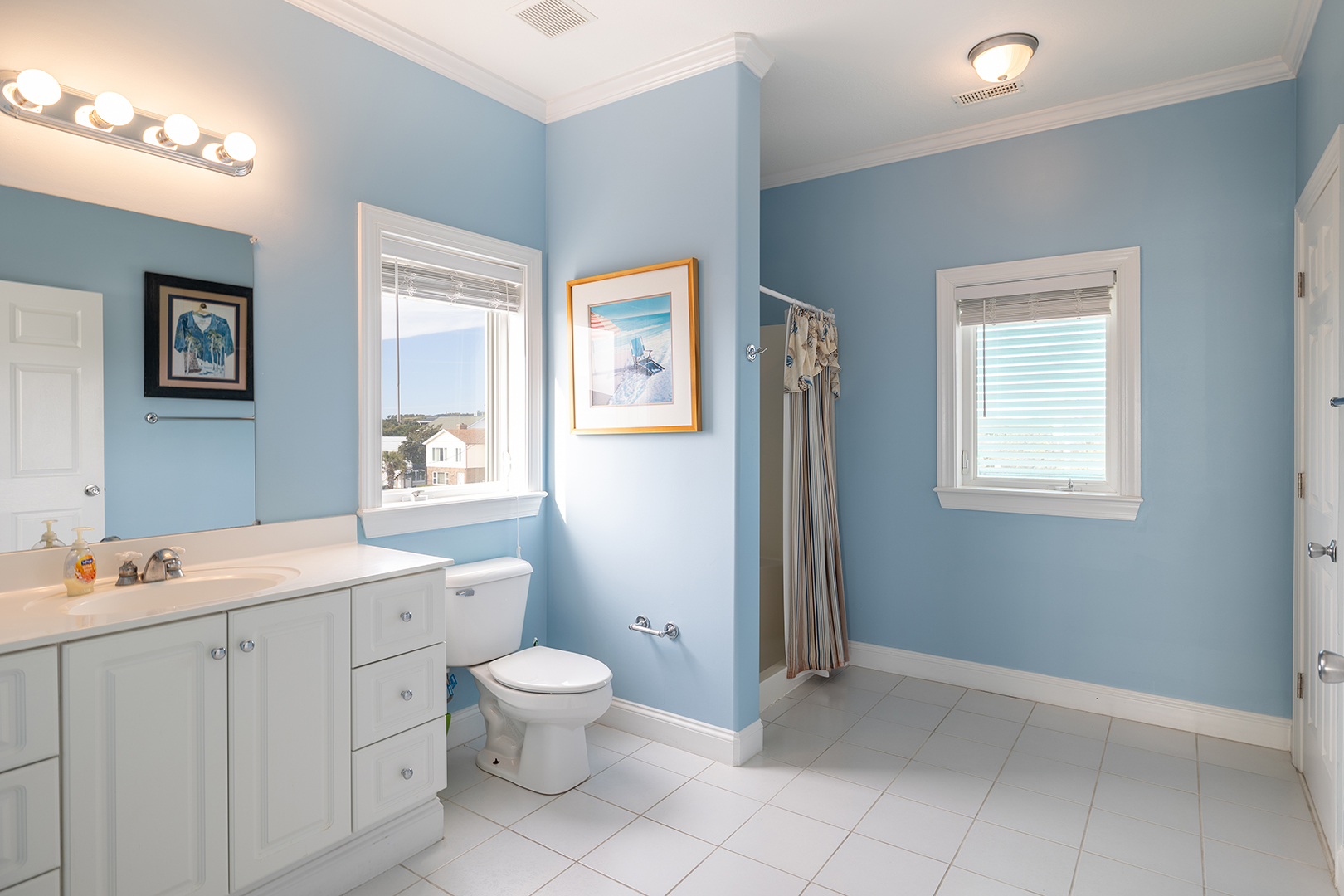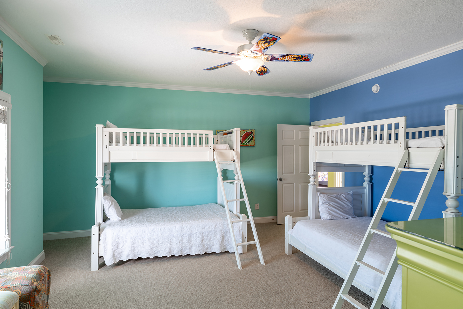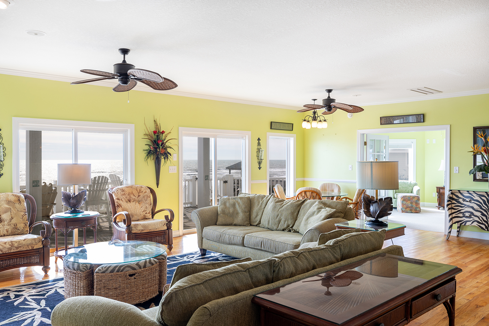 Floor #2: Oceanfront Purple Bedroom with King Bed and Full Bath, Oceanfront Yellow Bedroom with King and Twin Daybed and Full Bath, Streetside Blue Bedroom with 2 Double/Twin Bunk Beds and Full Bath, Oceanfront Blue Bedroom with King and Full Bath
