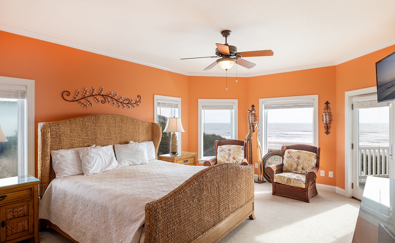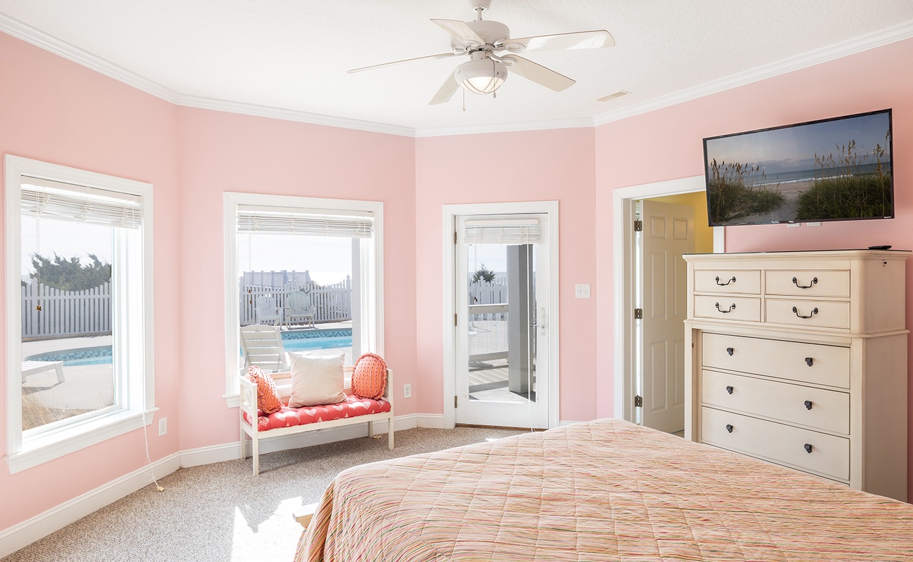 Floor #2 - Bedroom #4 Attached Bathroom King Bed - TV - Attached Bath - Balcony Access |