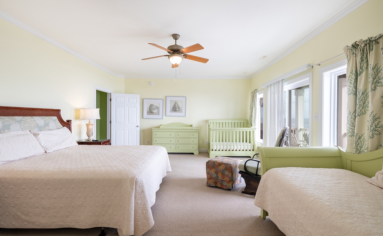 Floor #3 - Bedroom #7 Attached Bathroom King Bed - Crib - Daybed - TV - Attached Bath - Balcony Access |
