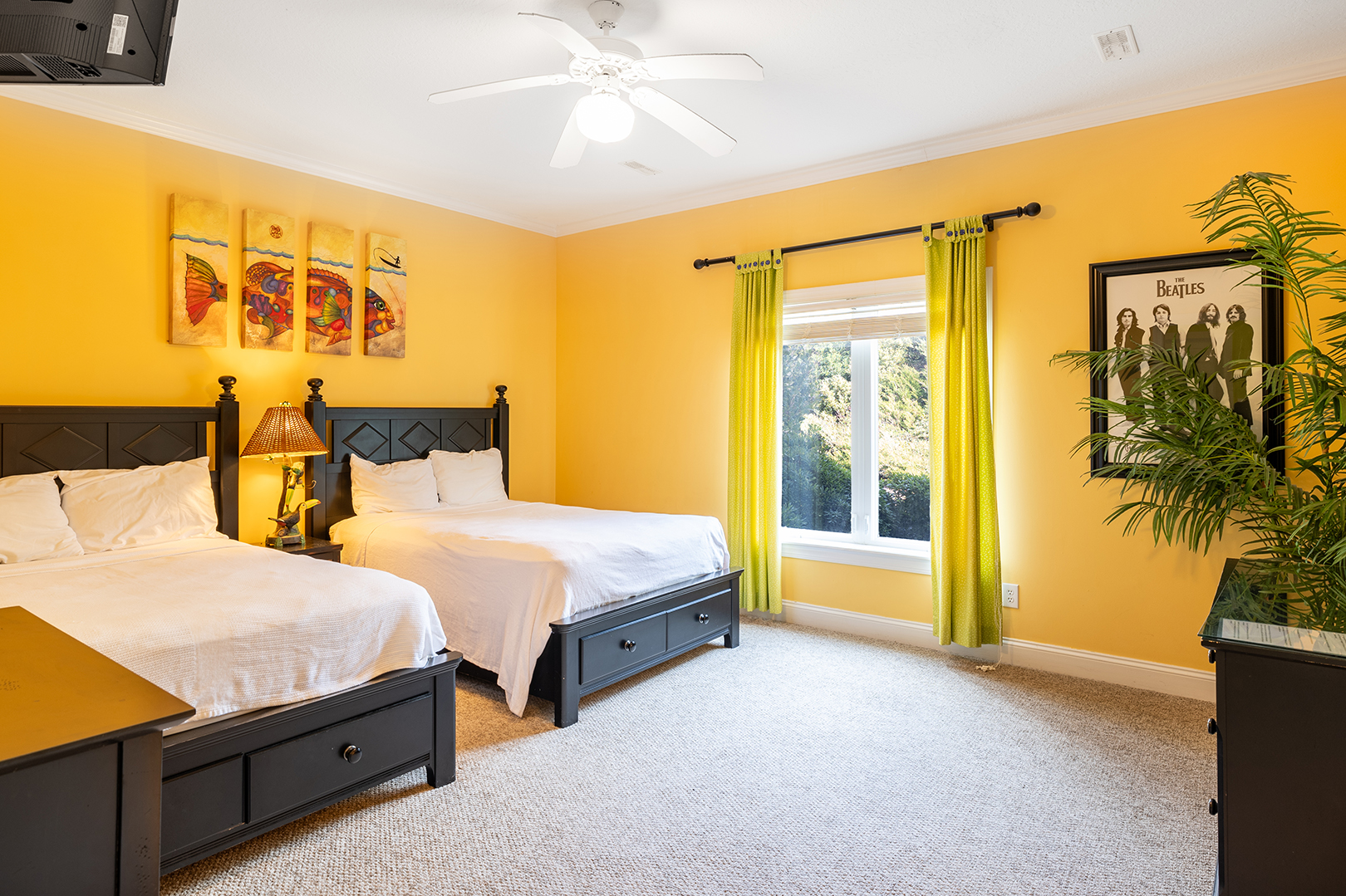 Floor #1 - Bedroom #2 Attached Bathroom Two Double Beds - TV - Attached Bath |