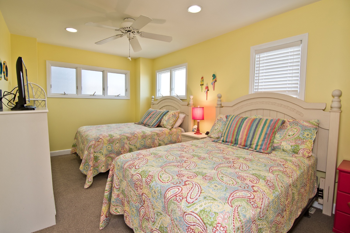 Floor #1 - Bedroom #2 2 Double Beds, TV, Shared Bath |