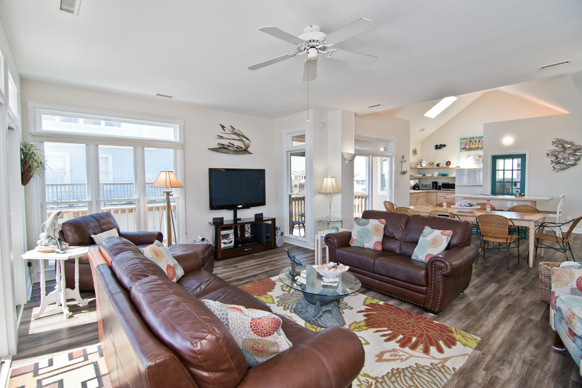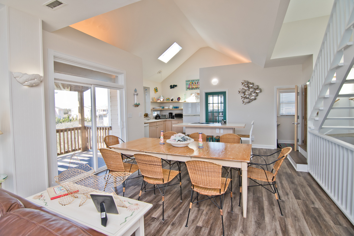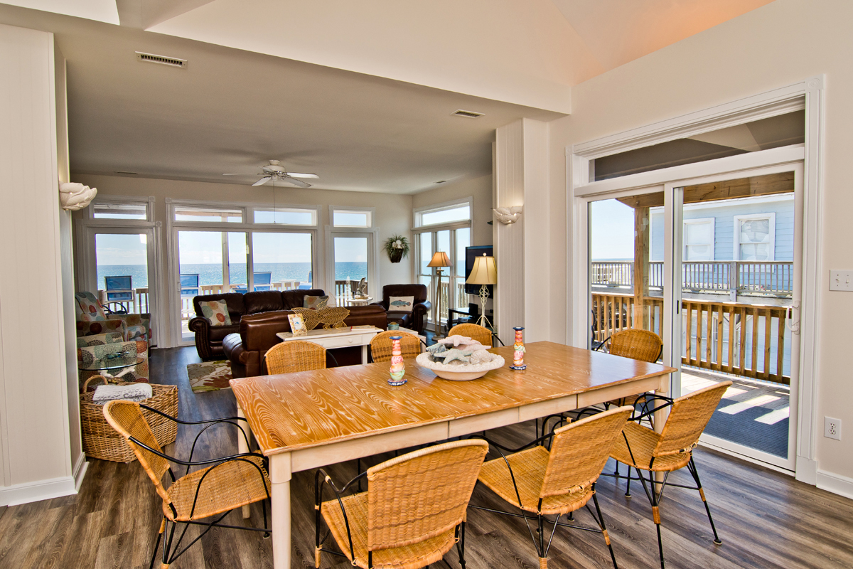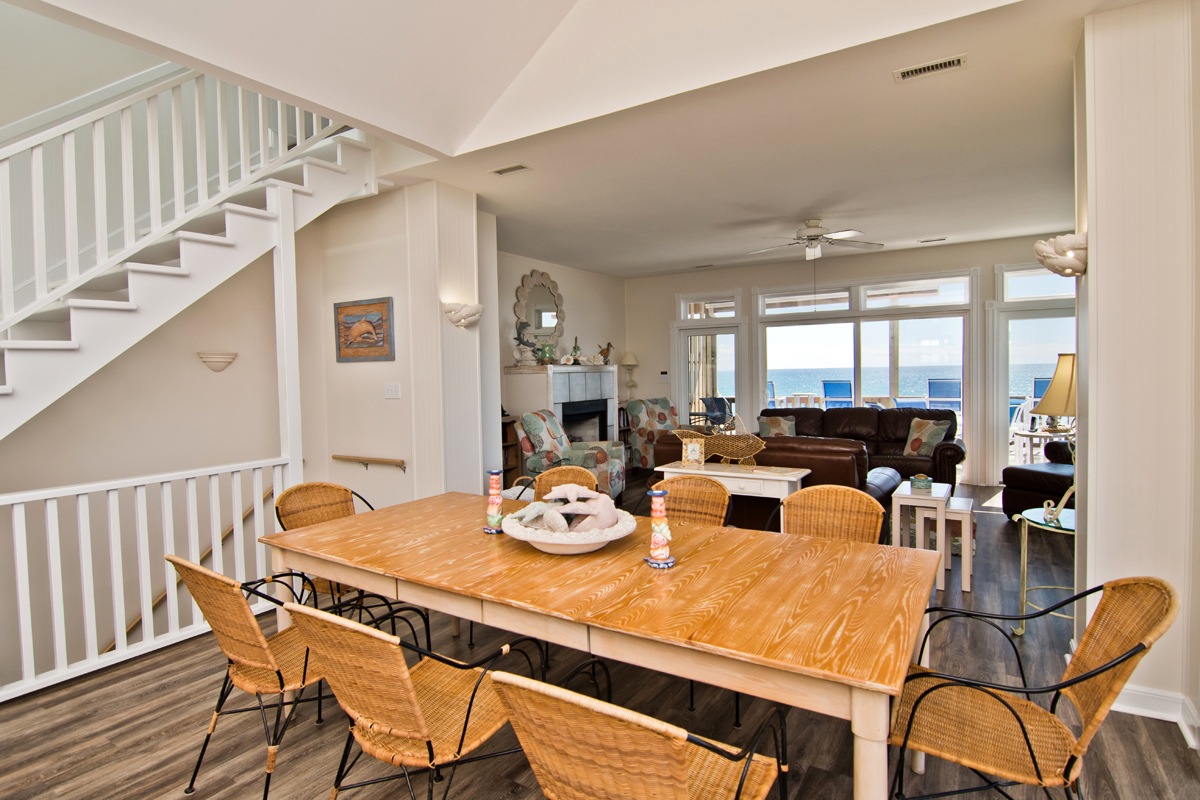 Dolphin View West is a 3 Bedroom and 3.5 Bath Oceanfront Duplex located in Emerald Isle. Relax on your covered and uncovered decks and catch a view of Dolphins at Dolphin View West . This Oceanfront home is located conveniently close to the local grocery store and gift shops. Bring the whole family and enjoy a relaxing stay at the beach. Dolphin View West is a very cute and colorful cottage with breath taking views of the Atlantic Ocean.