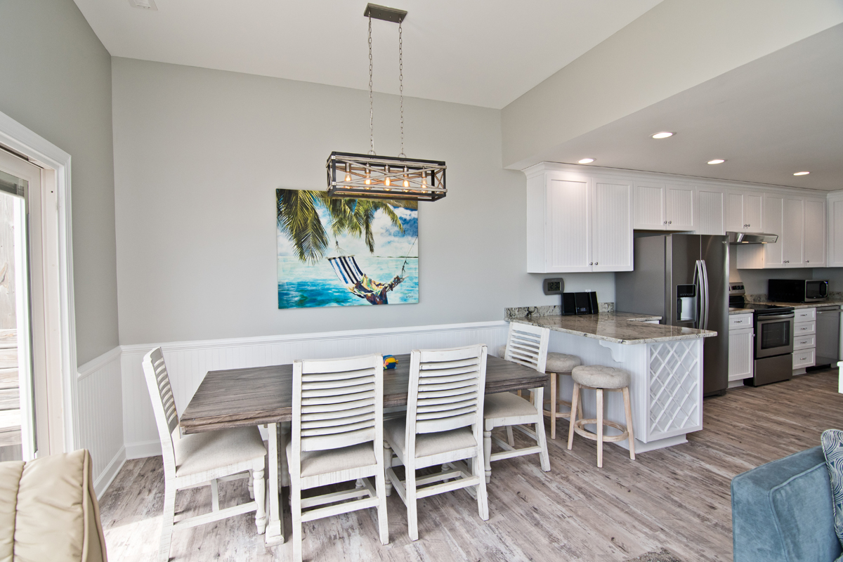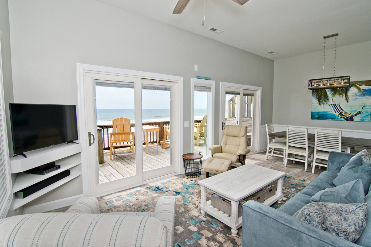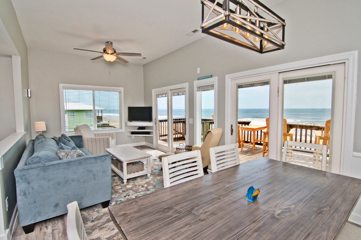 Do you enjoy the beauty of Dolphins swimming in the ocean? Why not stay at Dolphin Watch East and enjoy the scenic views of the ocean and catch a glimpse of the Dolphins! Dolphin Watch East is a 4 Bedroom, 3 Bath Oceanfront Duplex with multilevel oceanfront decks. Easily sleeps 8!