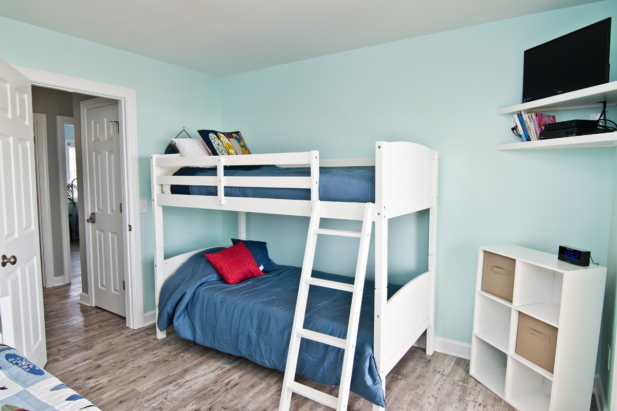 Floor #1 - Bedroom #2 Twin Bed - Twin Bunk - TV - Shared Bath - Deck Access |