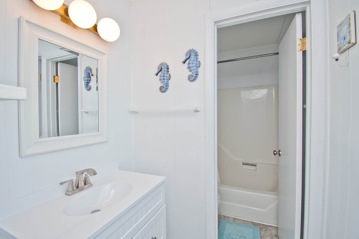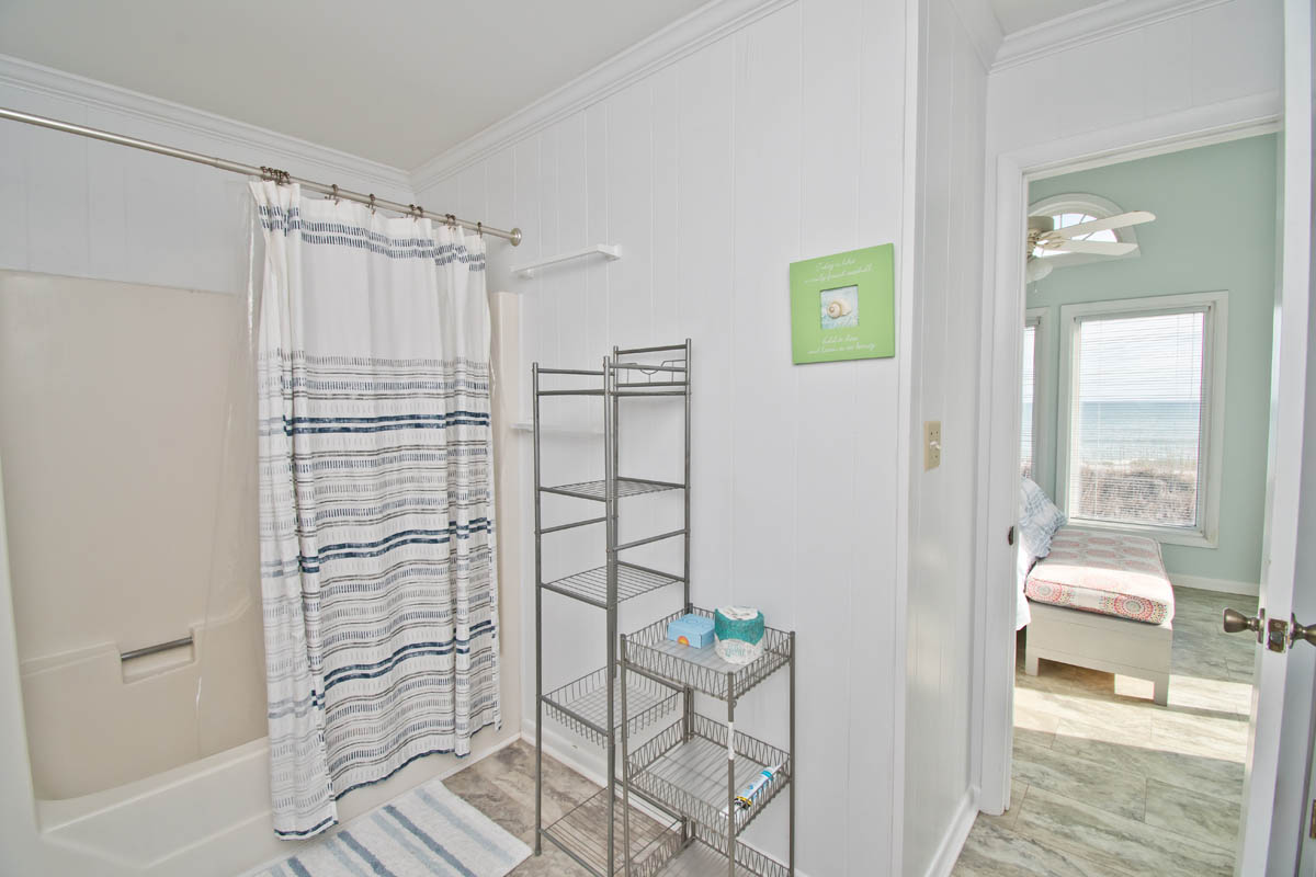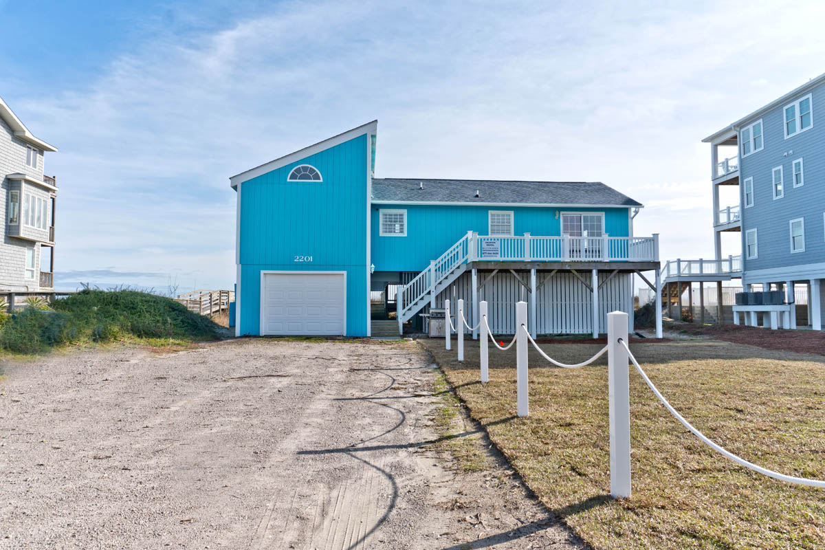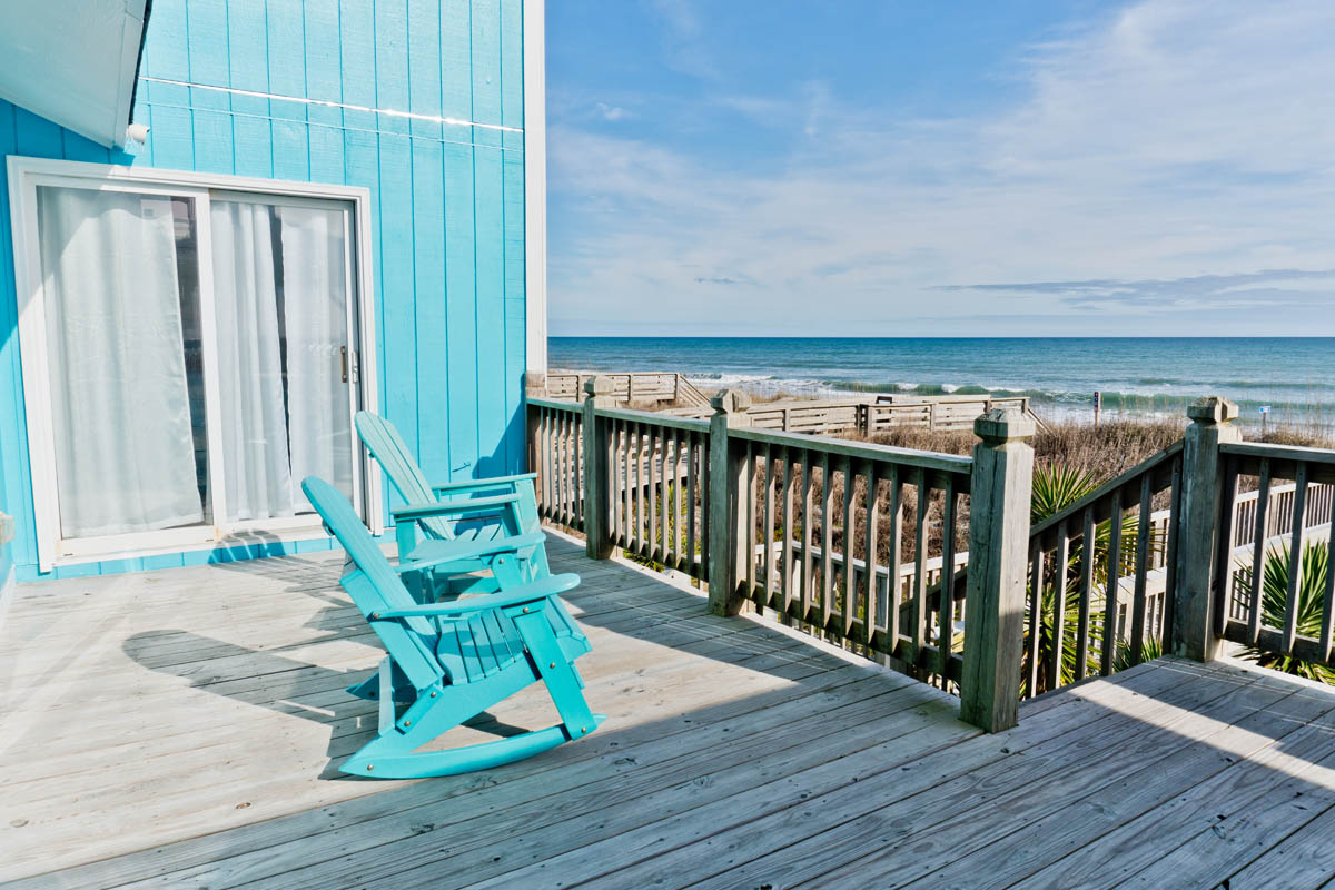 Oceanfront Bedroom #1 has a King Bed, Open Deck and shared Bath with Bedroom #2. Oceanfront Bedroom #2 has Queen Bed, Open Deck and shared Bath with Bedroom #1. Bedroom #3 has 2 Twin Beds and shared Bath with Bedroom #4. Bedroom #4 has 2 Twin Bunks and shared Bath with Bedroom #3. Garage.