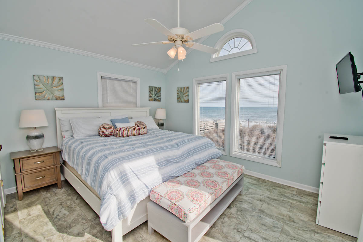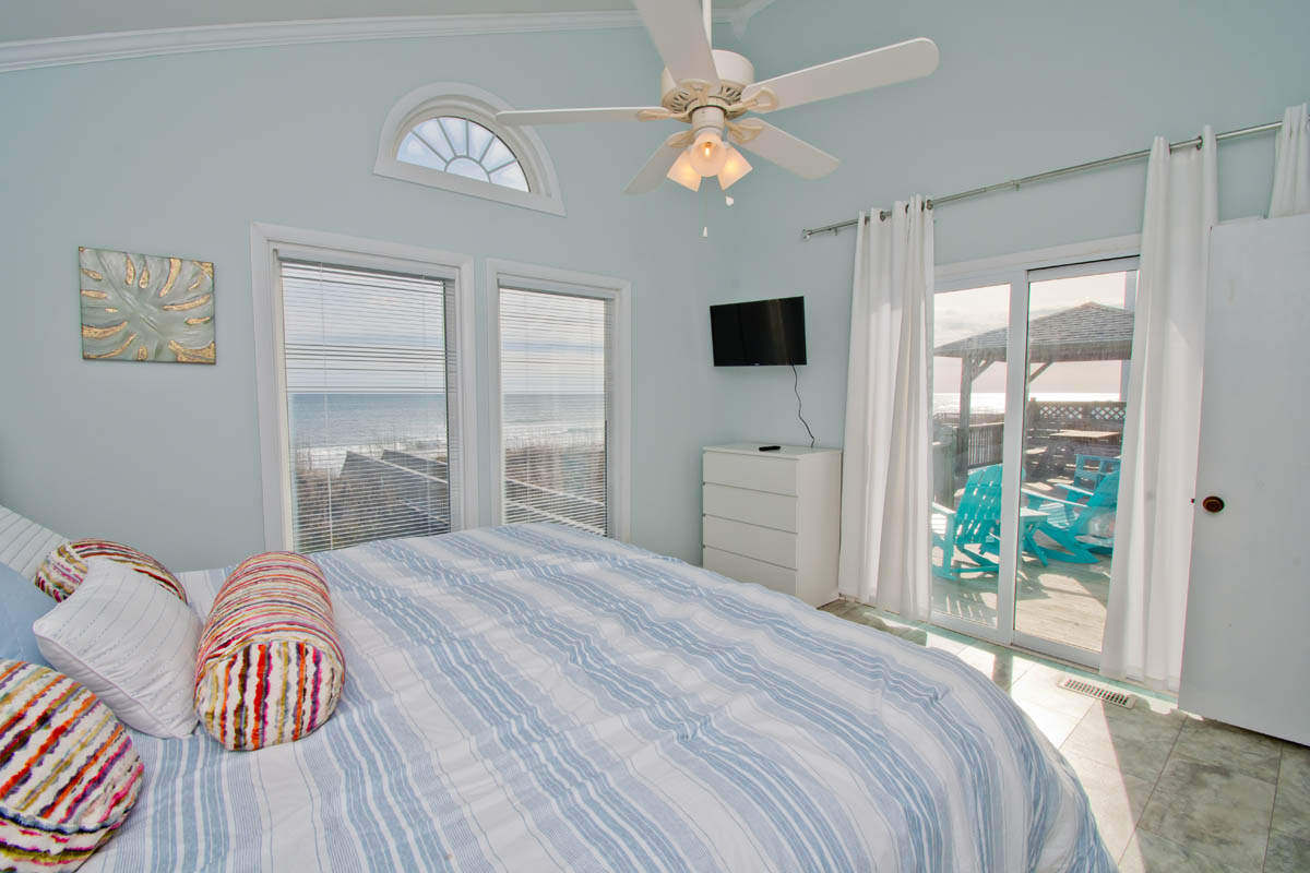 Floor #1 - Bedroom #1 Oceanfront - King Bed - TV - Bath Access - Deck Access |