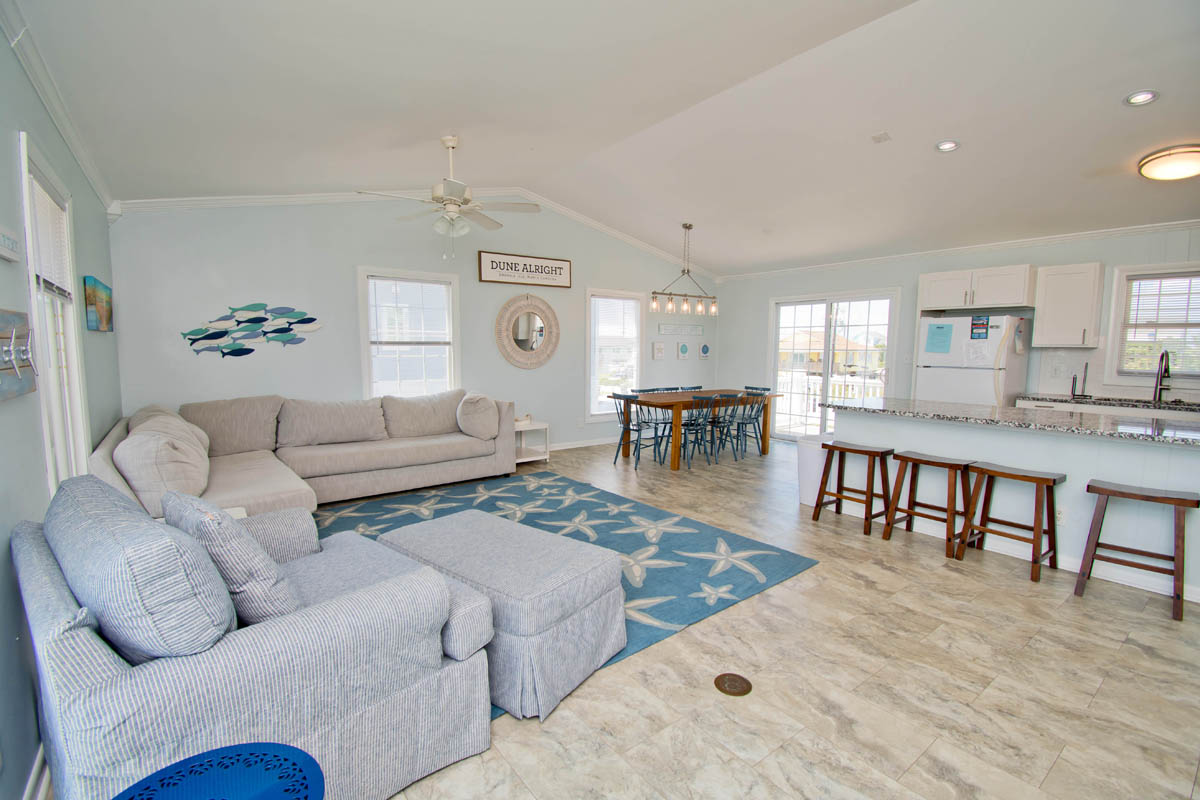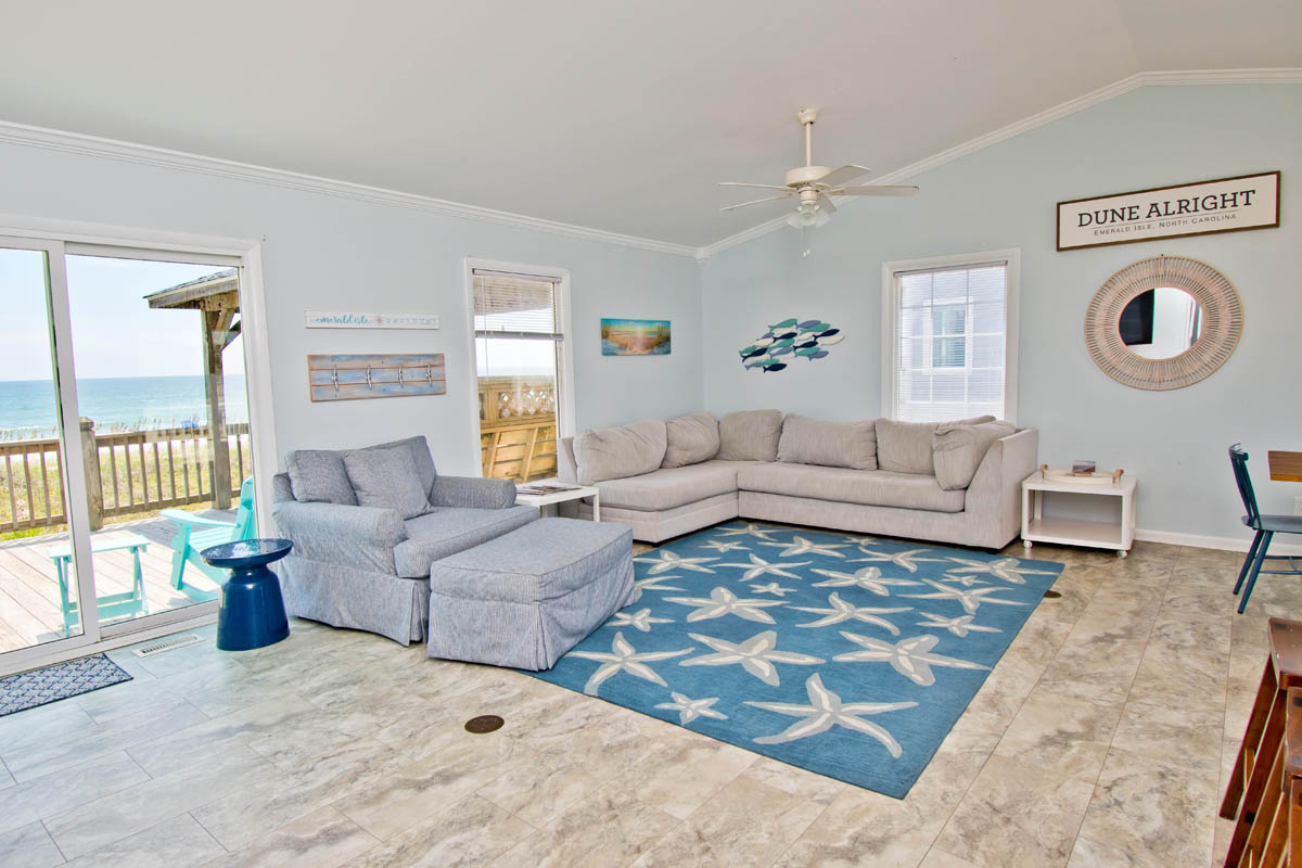 Dune Alright is a charming 4 bedroom, 2 bath Oceanfront vacation home. This is one of the most inviting cottages on the beach. Relaxing furniture and a wide-screen TV make the living room comfortable and cozy while you enjoy fantastic views of both the ocean and the sound. Just a few steps down the private walkway and you are at the beach. Take in a sunrise or sunset on the spacious oceanfront deck or private Gazebo! No elevator needed here because the living quarters are all on one level. For those of you that need to do a little work on your vacation or just want to stay "connected", there is High Speed Wireless Internet available. Just bring your own computer.