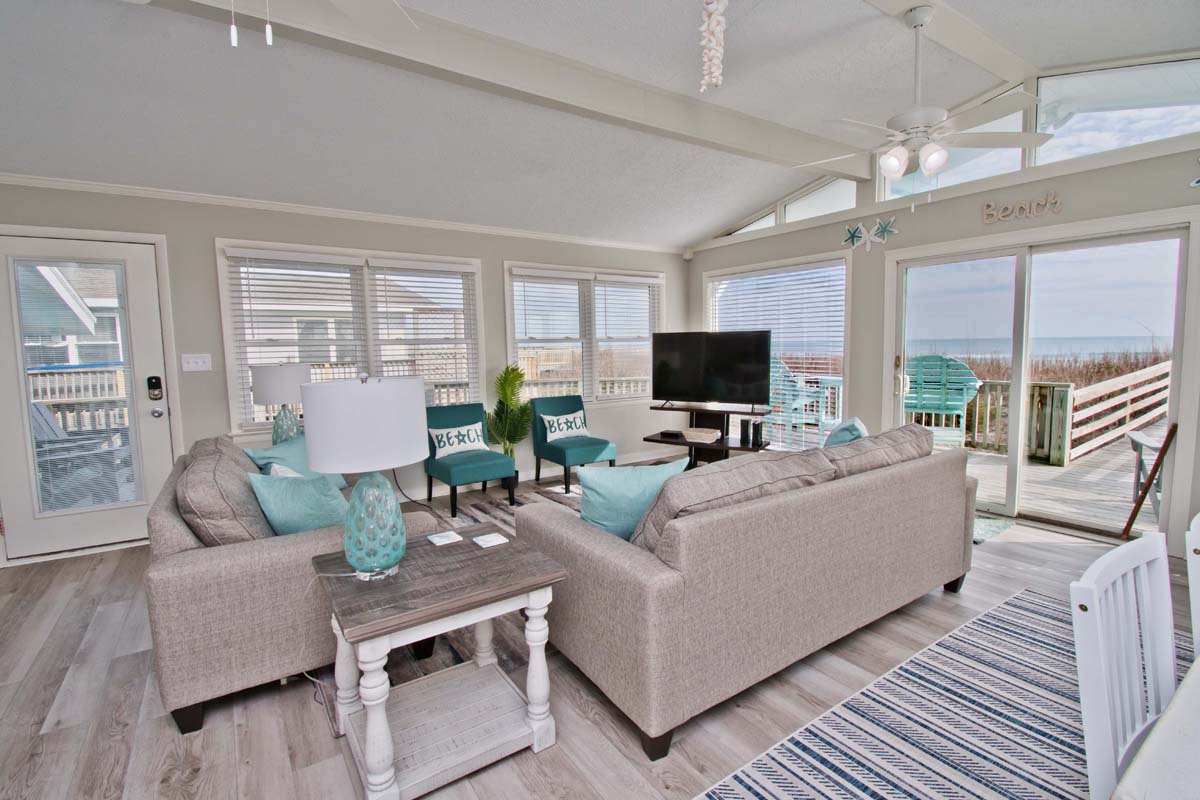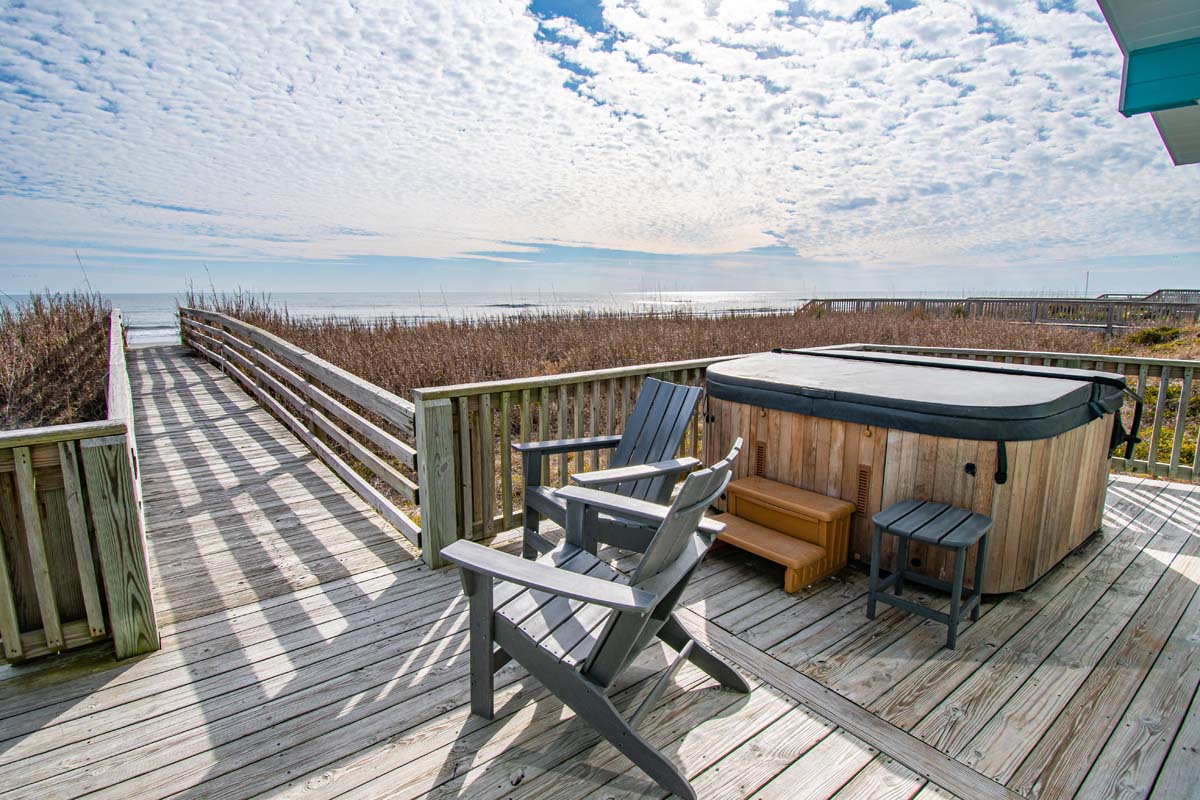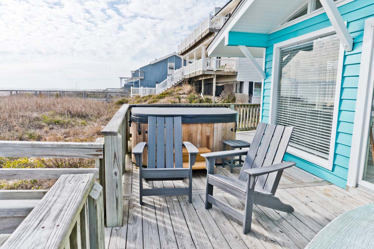 What could be more summery than Dune It Whale? When you rent this 4-bedroom, 2-bathroom, oceanfront home, you can relax, kick your shoes off and enjoy the beachy air all week long! Dune It Whale features a 6 person hot tub (see #19 below) to help in the relaxation process. Enjoy hours of rocking on the covered porch while you watch the ocean waves roll by. This vacation rental is perfect for your family's vacation to Emerald Isle!