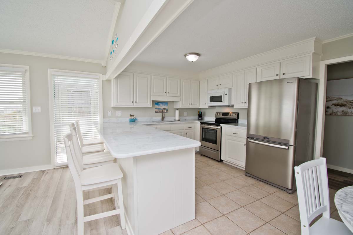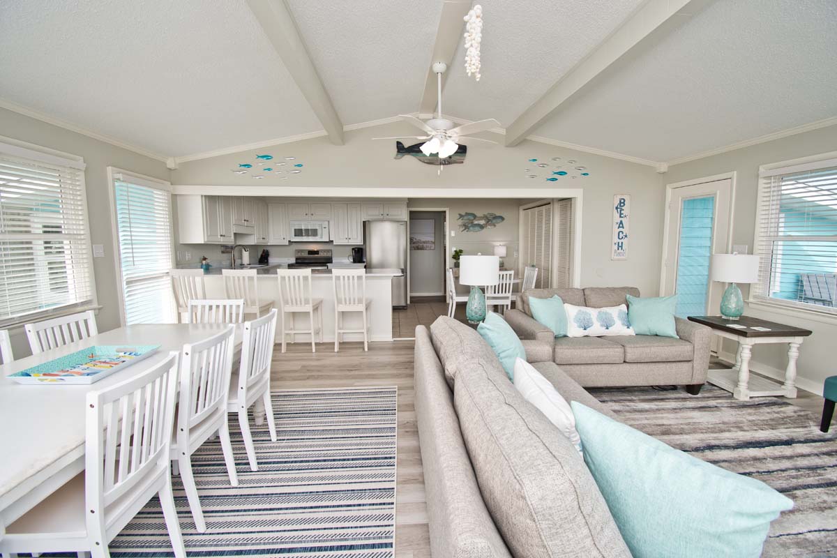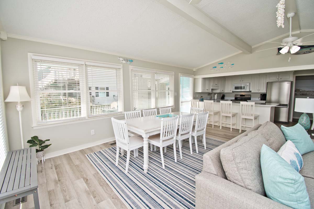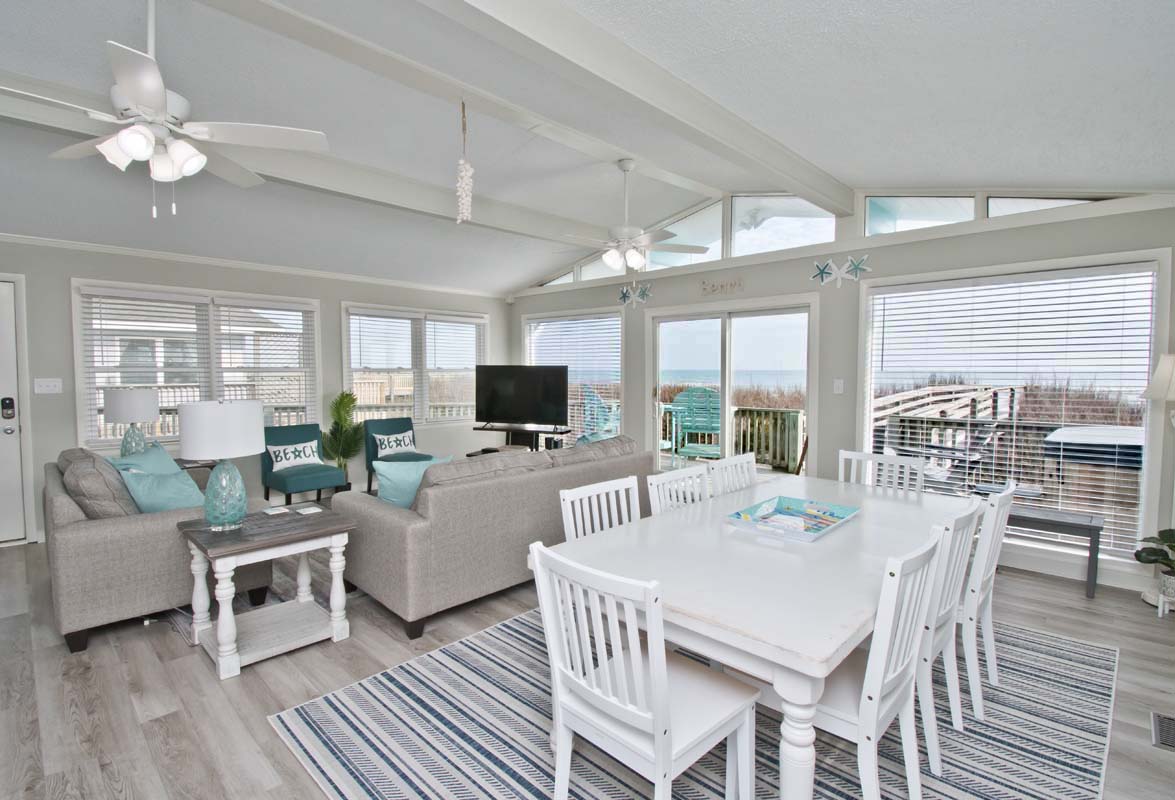 What could be more summery than Dune It Whale? When you rent this 4-bedroom, 2-bathroom, oceanfront home, you can relax, kick your shoes off and enjoy the beachy air all week long! Dune It Whale features a 6 person hot tub (see #19 below) to help in the relaxation process. Enjoy hours of rocking on the covered porch while you watch the ocean waves roll by. This vacation rental is perfect for your family's vacation to Emerald Isle!