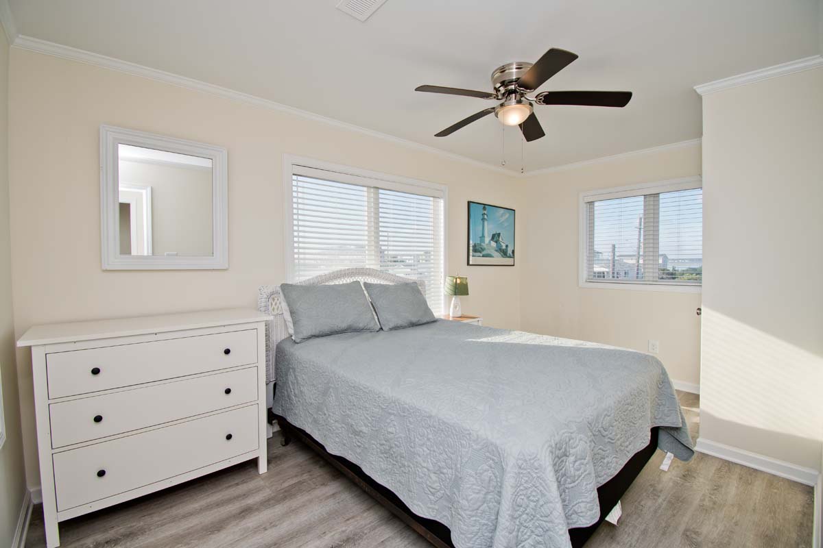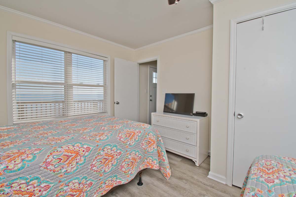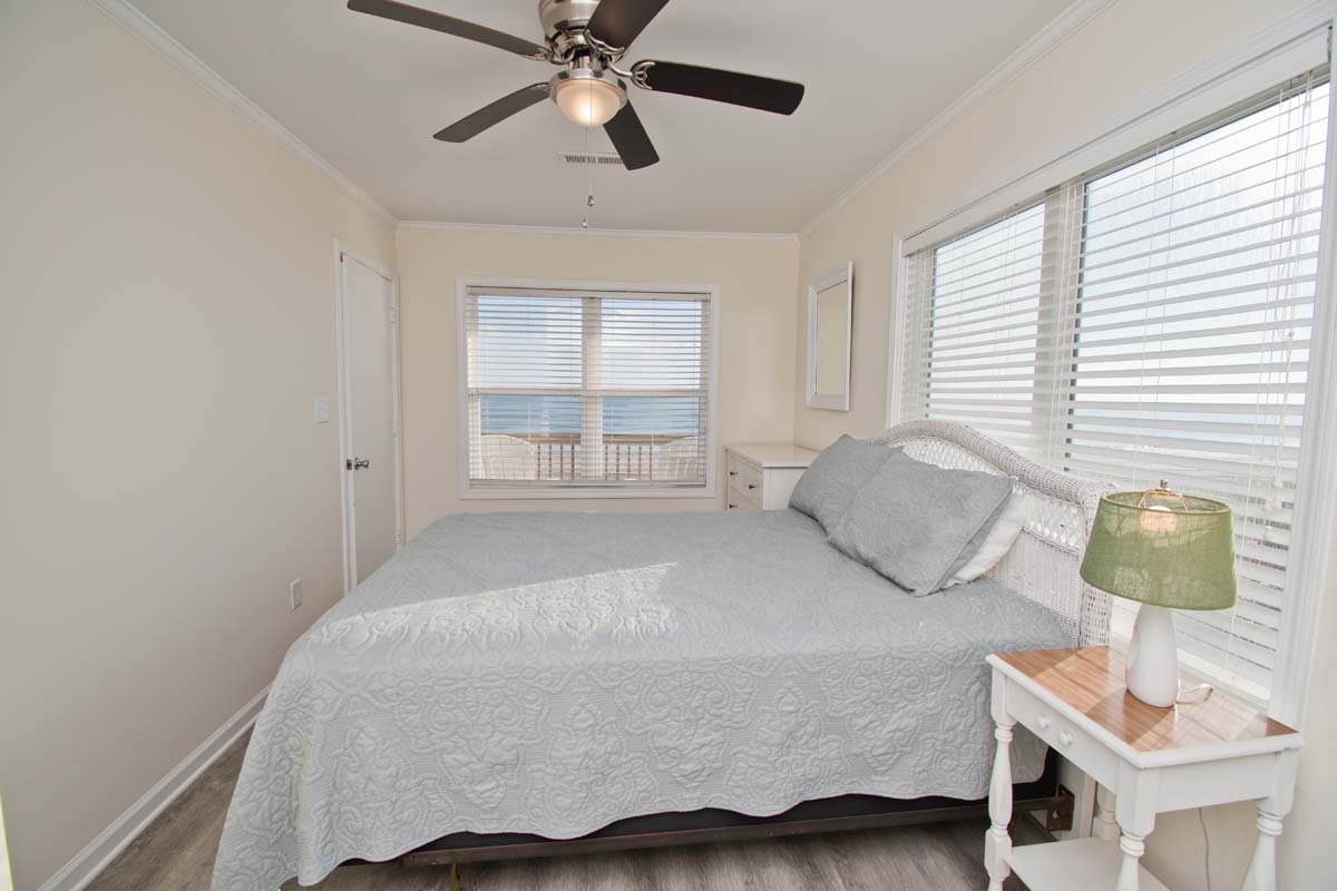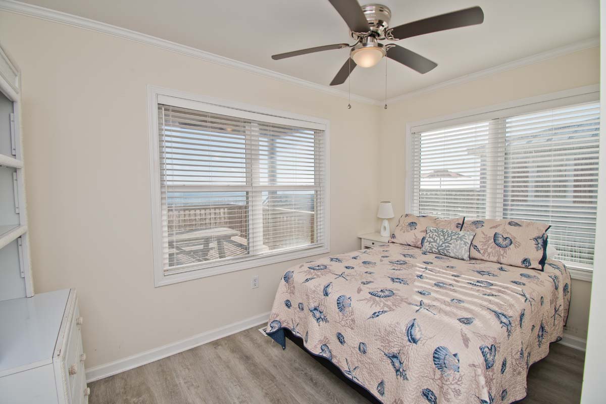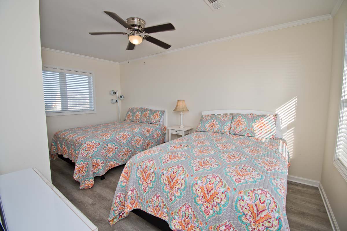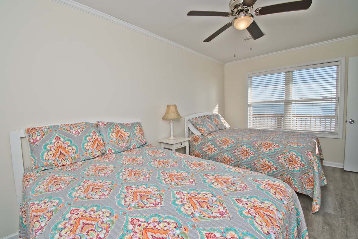 Level Two: Oceanfront Bedroom #3 has 2 Double Beds. Bedroom #4 is oceanfront and has a Queen Bed. Shared Full Bath has shower only.