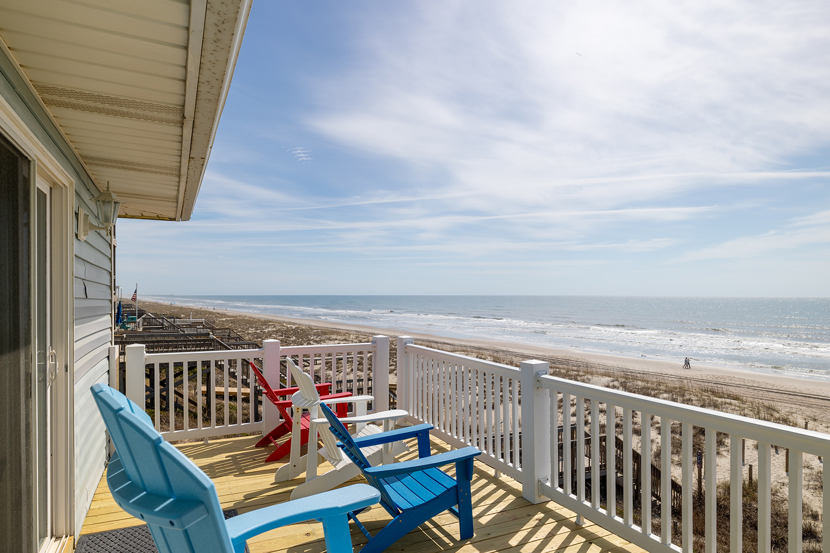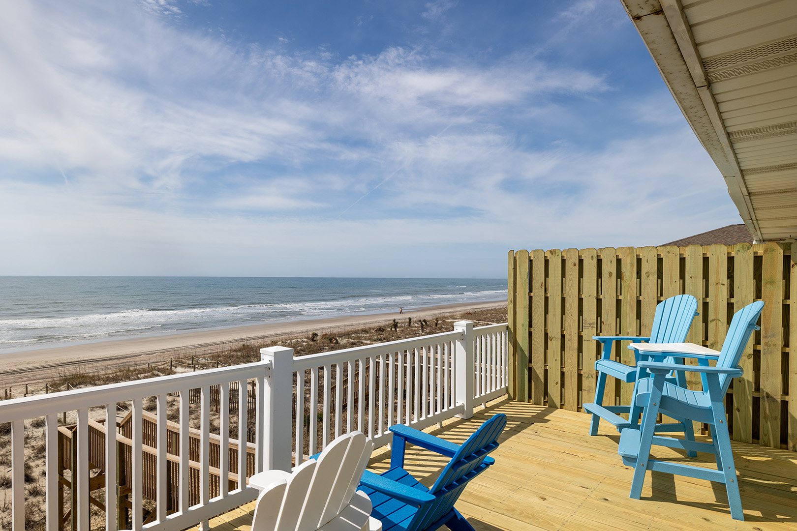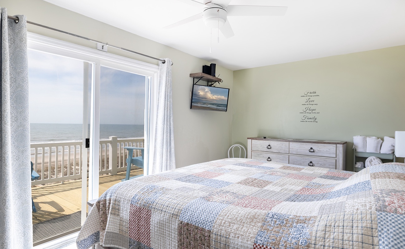 Level Two: Oceanfront Master Bedroom has a King bed, a deck and private bath. Bedroom #2 has a Queen Bed and Bedroom #3 has Two Twin Beds. Bedrooms #2 and #3 share a bath.