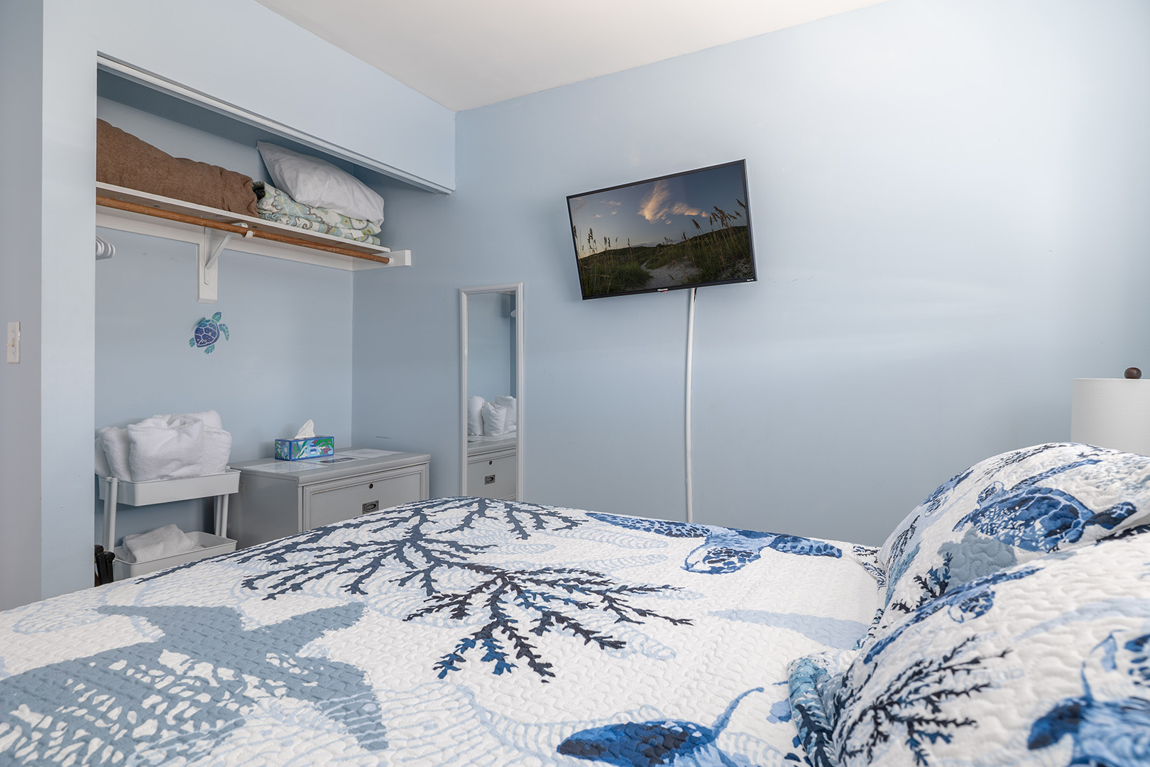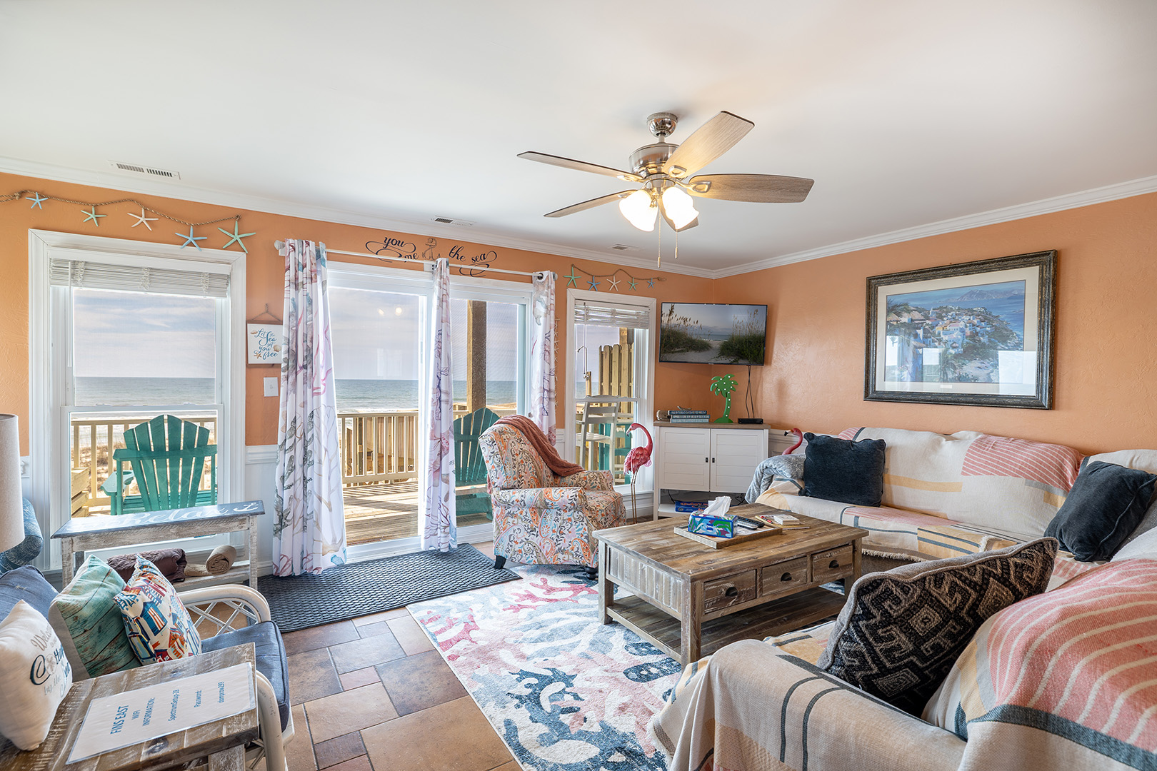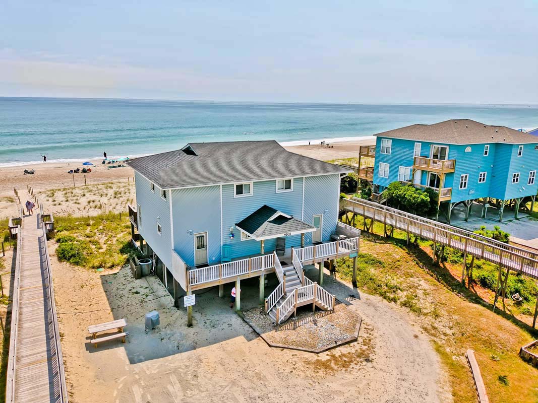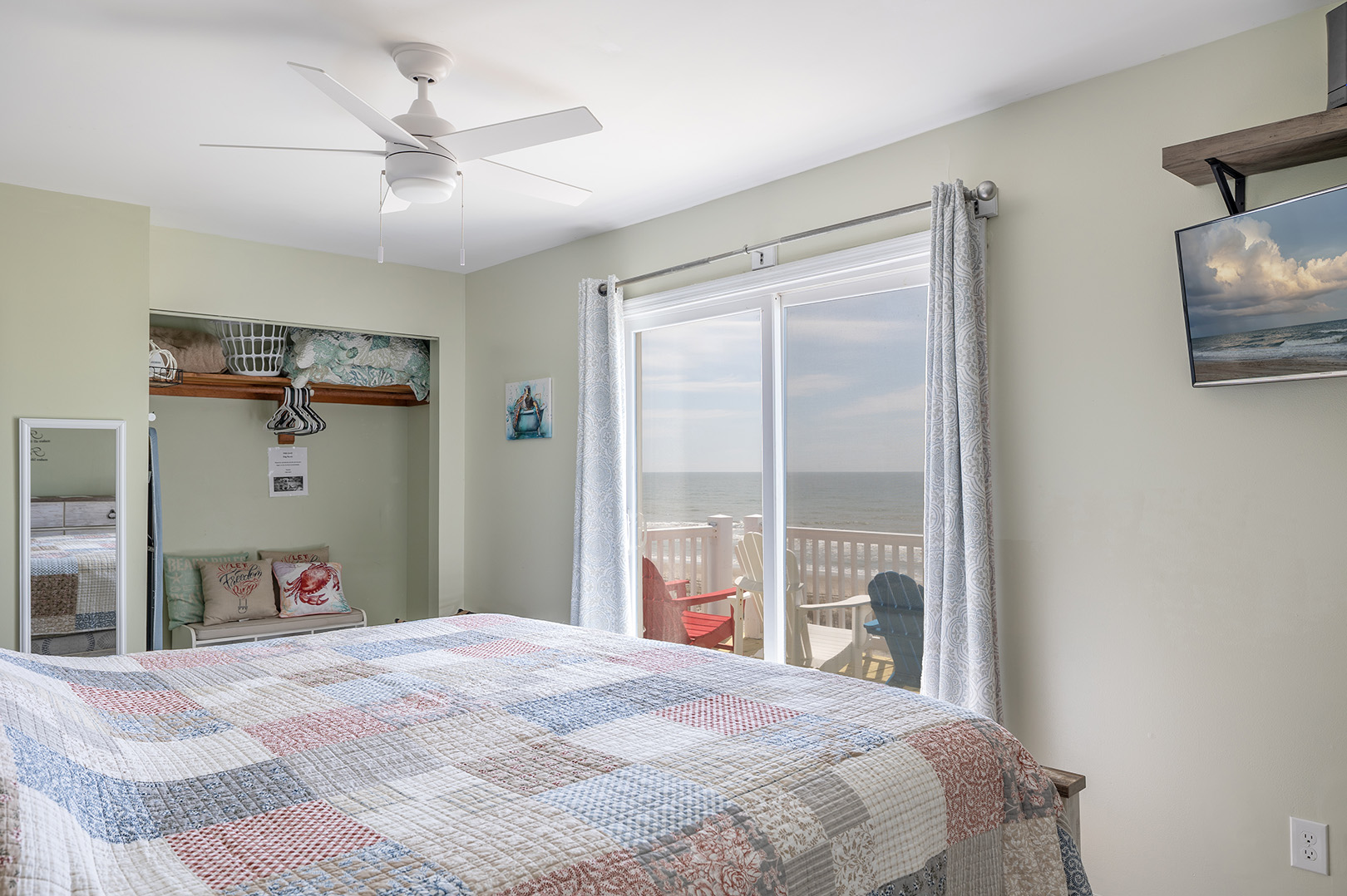 Level Two: Oceanfront Master Bedroom has a King bed, a deck and private bath. Bedroom #2 has a Queen Bed and Bedroom #3 has Two Twin Beds. Bedrooms #2 and #3 share a bath.