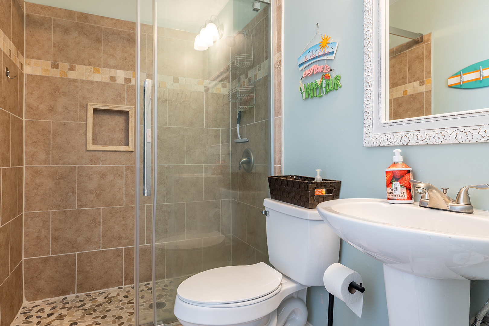 Ground Level: Covered Parking. Take a cold outdoor shower before turning in for the night after a long hot day of sand and sea!