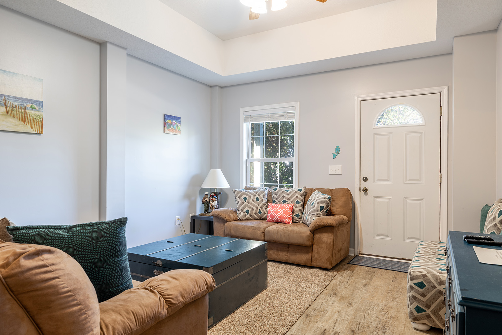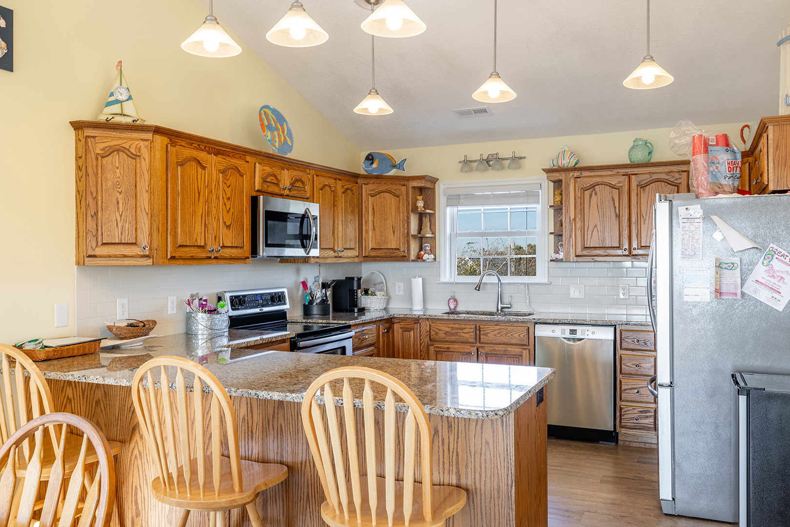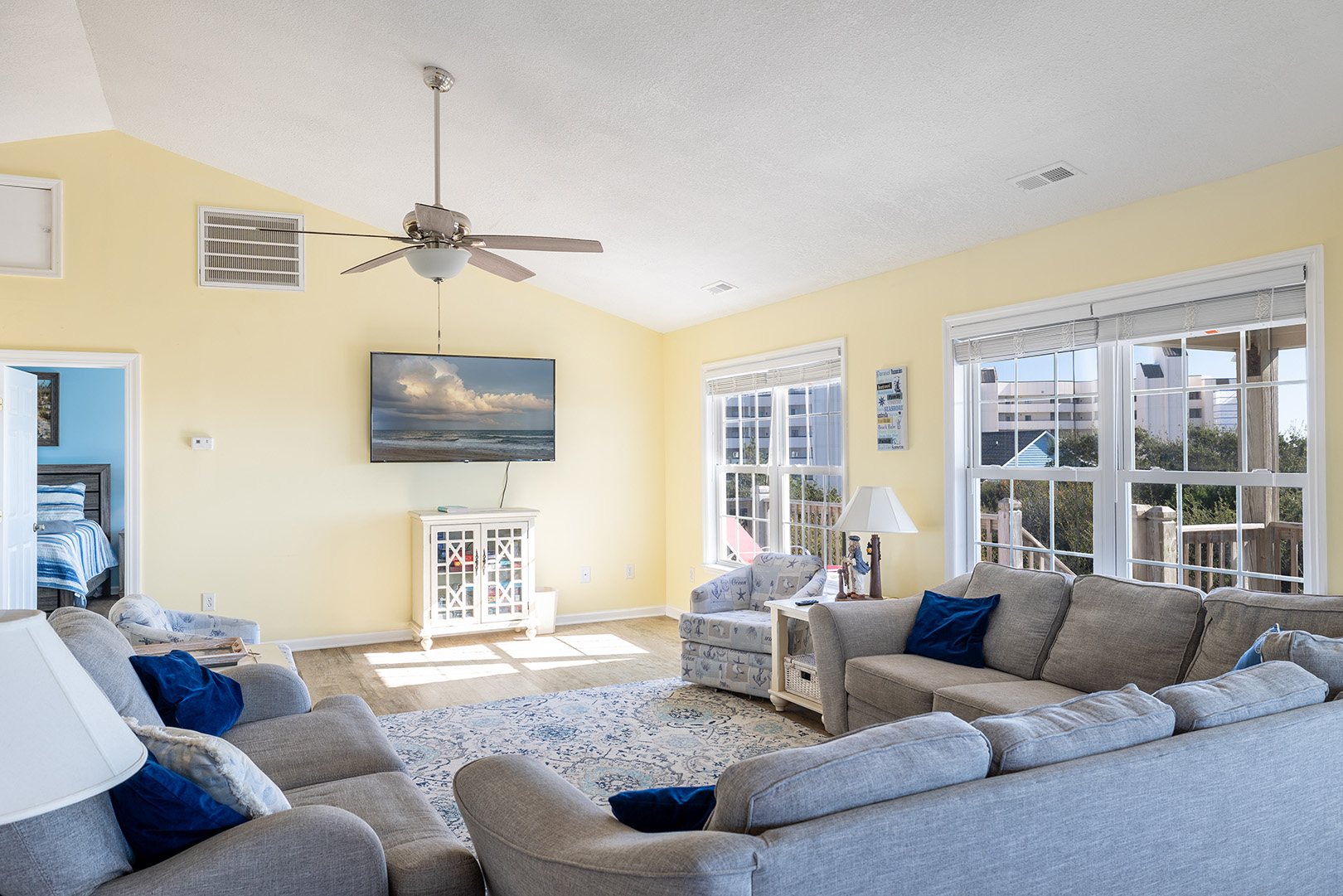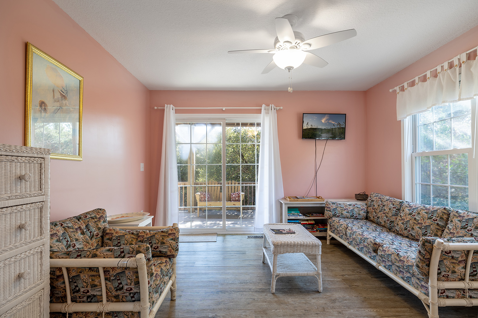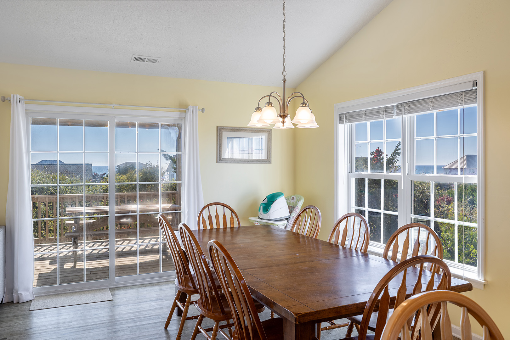 Amenities Include: HVAC, Ceiling Fans; Interior Washer/Dryer; 5 Smart TVs, WiFi High Speed Internet; Fully equipped kitchen with refrigerator with attached ice maker, microwave, dishwasher, oven, coffee maker, slow cooker. Bonus room provides small refrigerator. Iron/ironing board. Water treatment system. Covered and open deck areas with furniture. Picnic table. Covered Parking. Fire pit. Enclosed outside shower with hot & cold water and dressing area. Charcoal grill. Public beach access on Janell Lane.