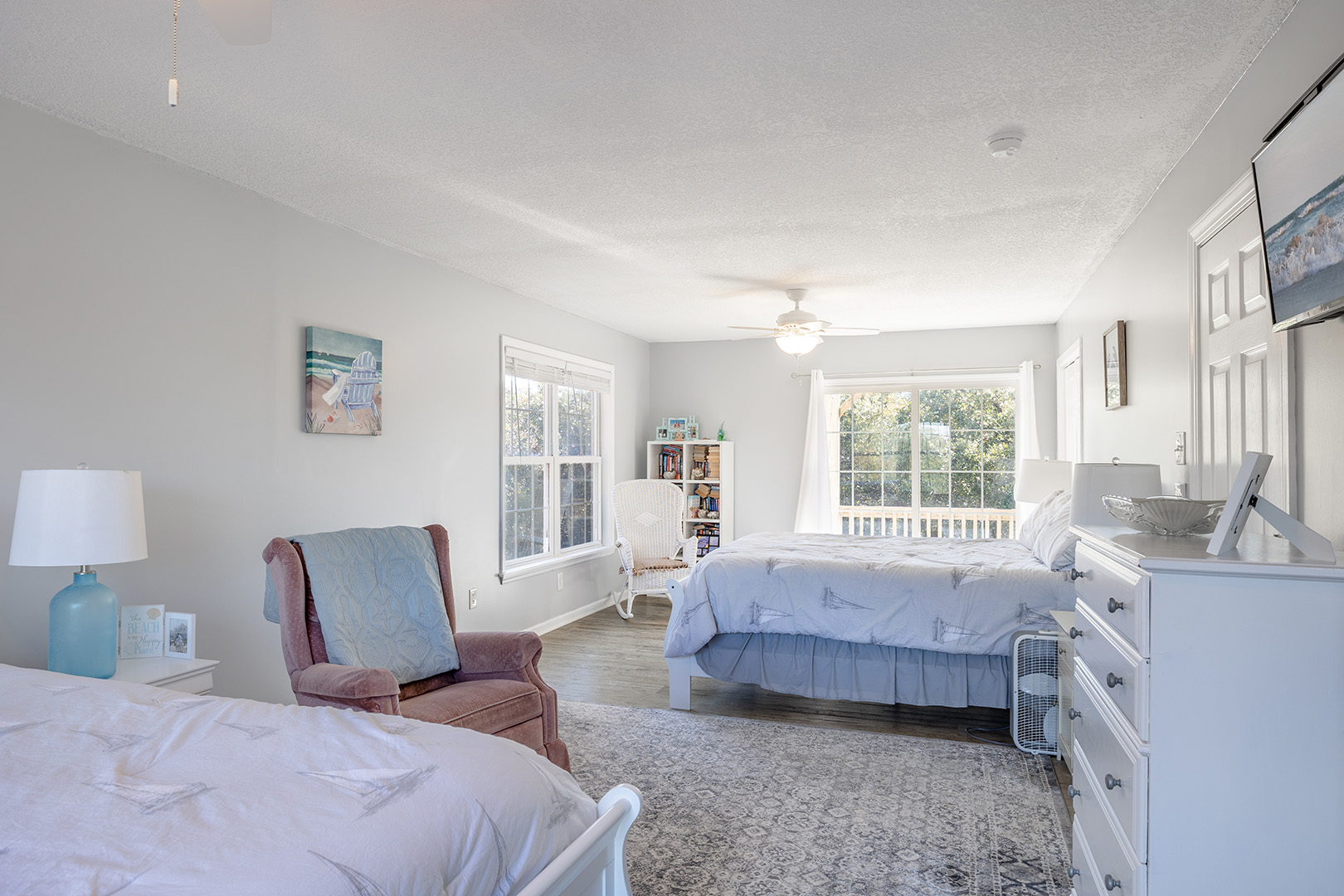 | Floor #1 - Bedroom #2 Attached Bathroom 2 Queen Beds - TV - Sitting Area - Shared Bath - Deck Access |