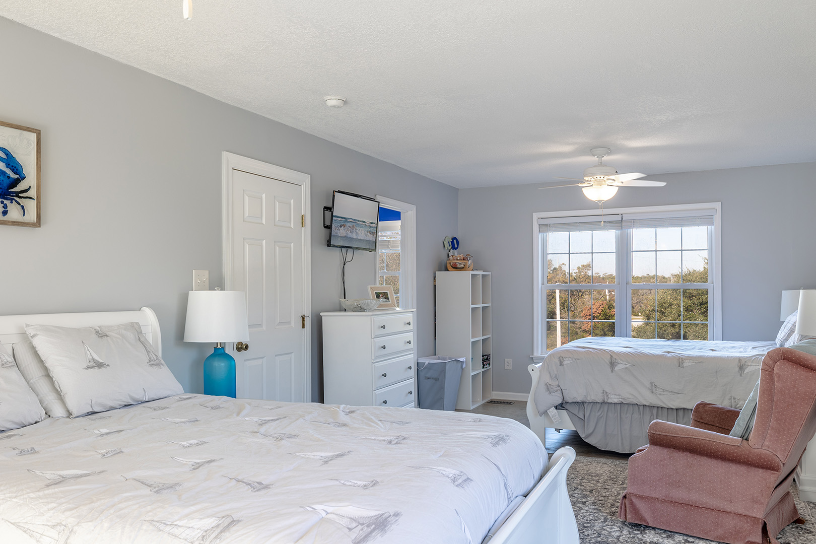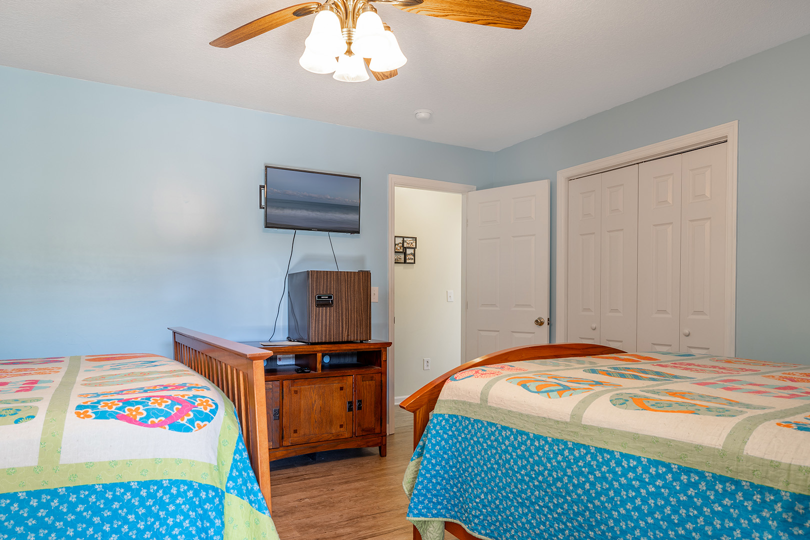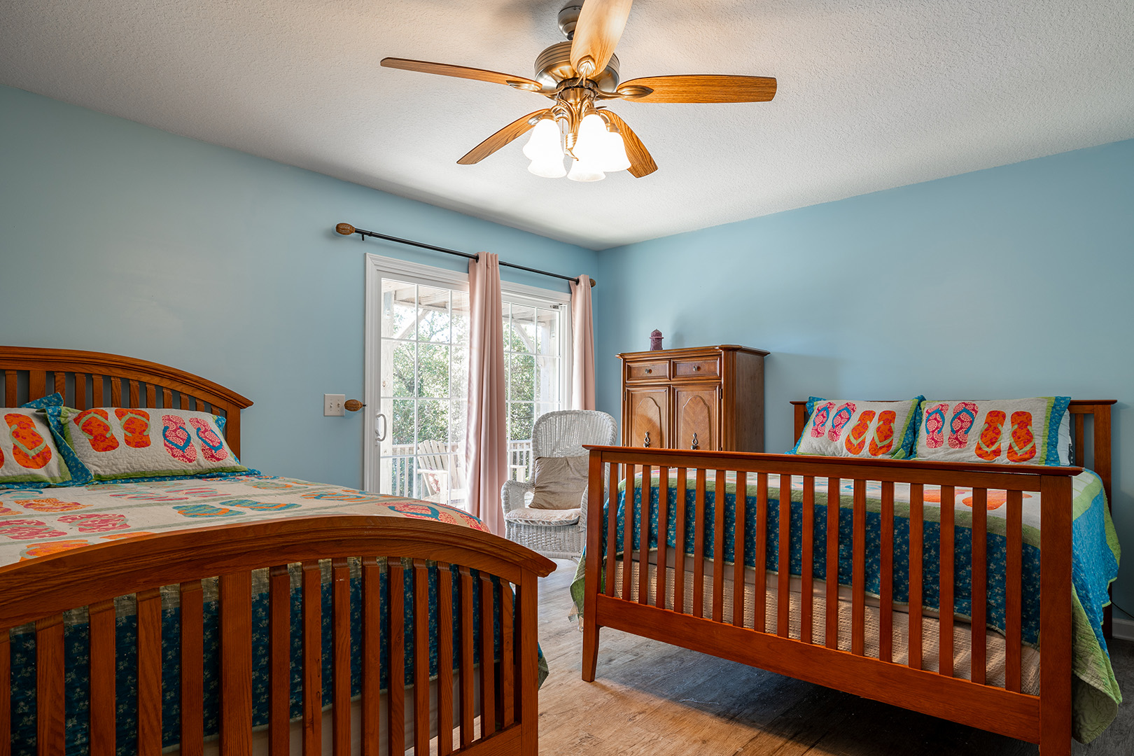 | Floor #1 - Bedroom #4 Attached Bathroom 2 Queen Beds - TV - Shared Bath - Deck Access |