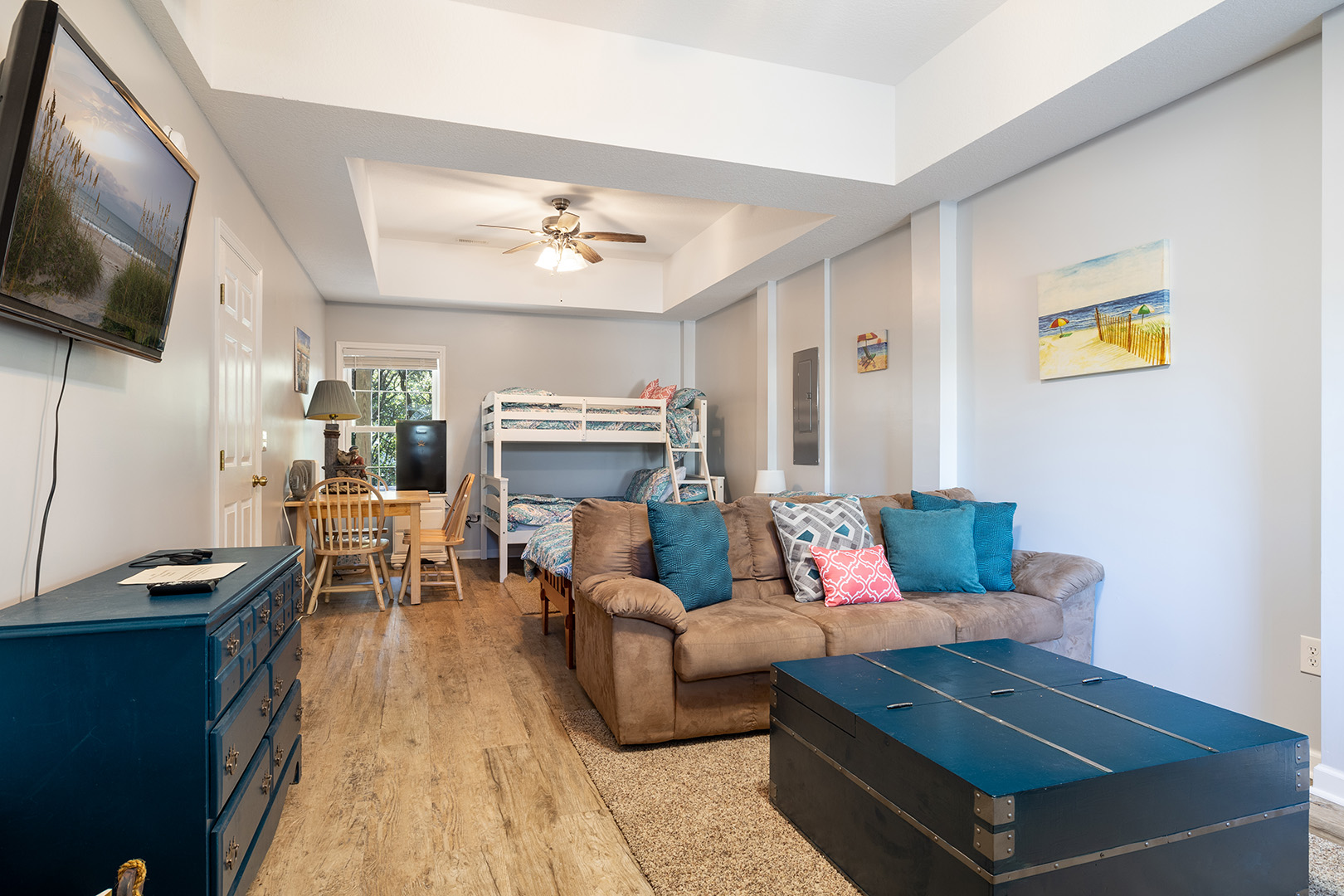 Ground Level - Bonus Room/Bedroom #5 Twin over Double Bunk Bed - Queen Bed - TV - Sitting Area - Table & Chairs - Small Refrigerator |
