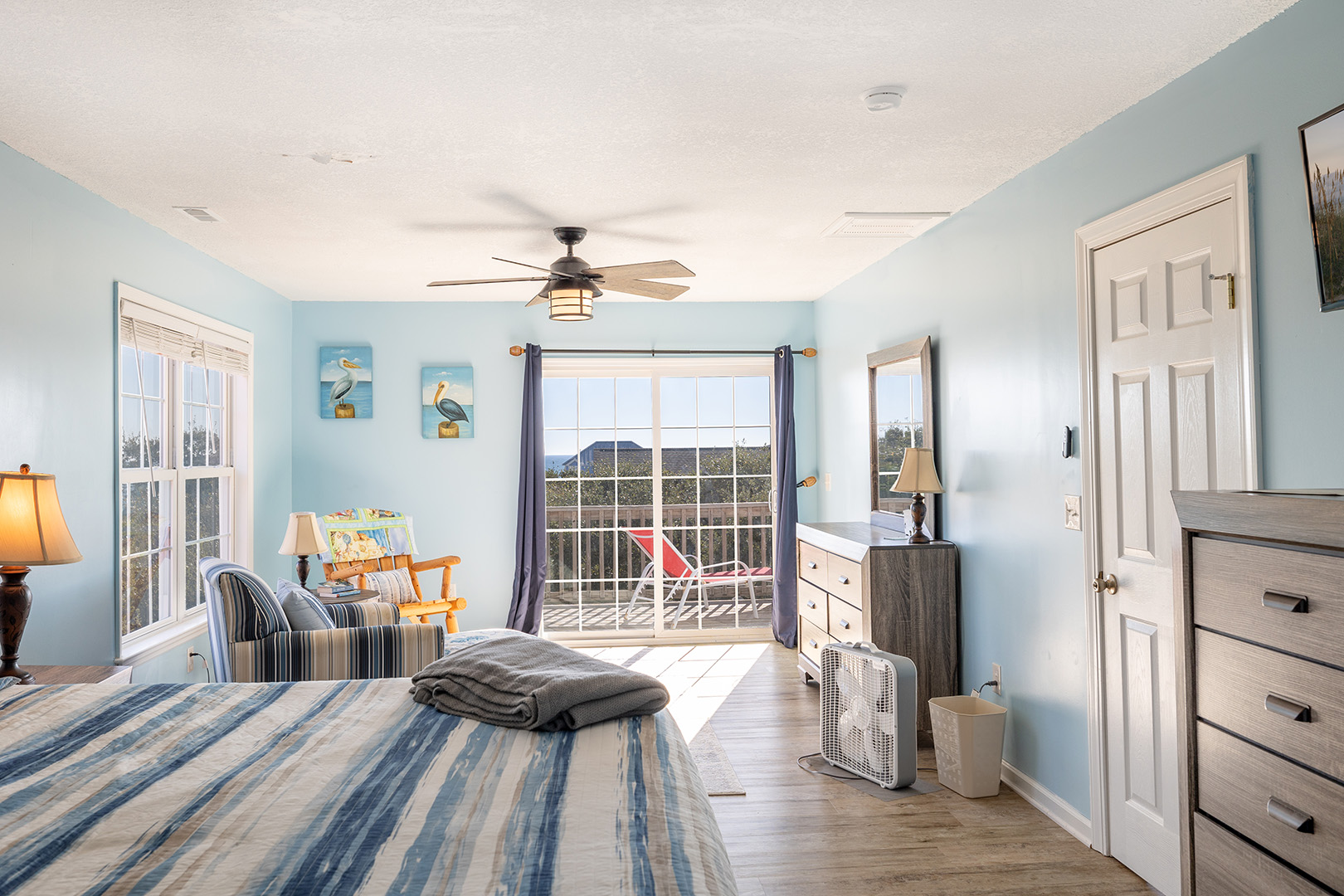 | Floor #2 - Bedroom #1 Attached Bathroom King Bed - TV - Sitting Area - Private Bath - Deck Access |