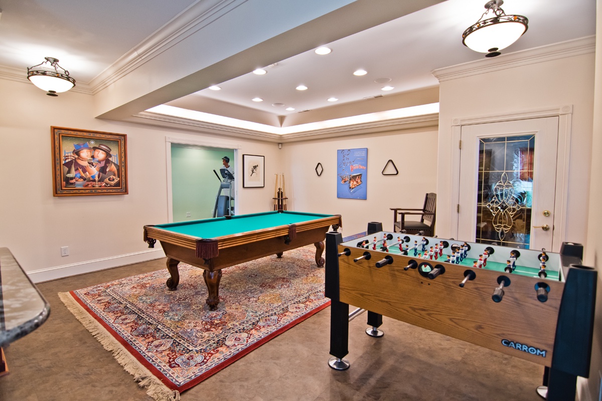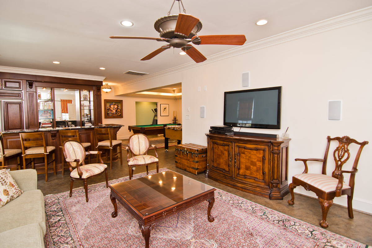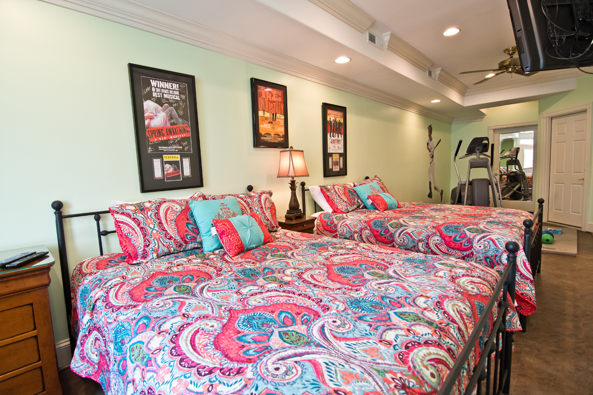 Ground Level: Bedroom #1 has 2 Queen Beds. Game Area, Den with TV and DVD player, and Wet bar.