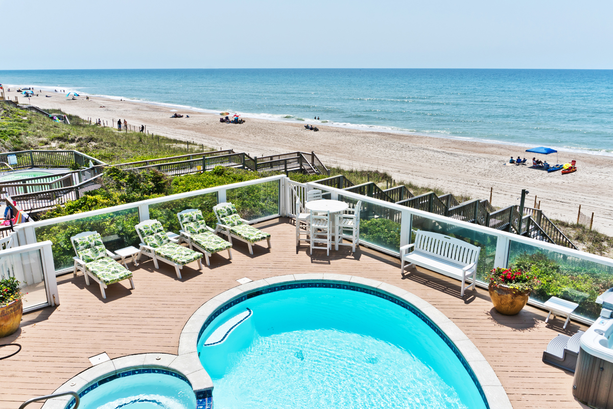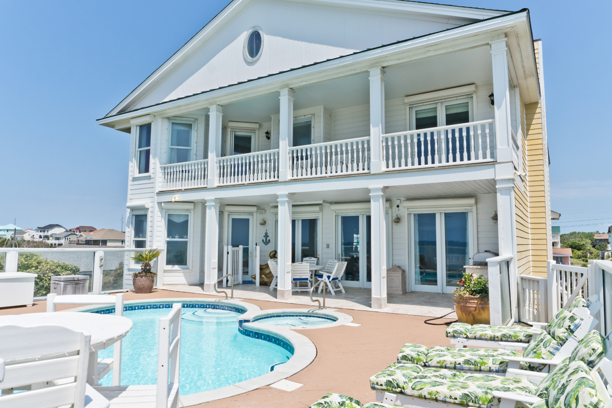 Gone With The Waves is the perfect home for your next Crystal Coast vacation! You and your family will want to rent this beautiful 5 Bedroom, 5.5 Bath Oceanfront Home! Located ocean front in the family-oriented town of Emerald Isle, Gone with the Waves has classical and charming decor throughout. With an oceanfront pool and hot tub with stunning views of the beach, you will never want to leave! Also with a wonderful enclosed yard that is perfect for furry friends!