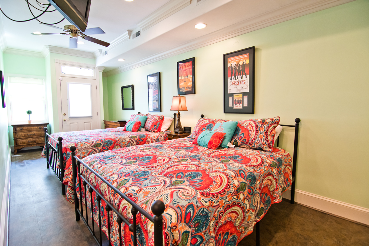 Floor #1 - Bedroom #1 2 Queen Beds, TV, DVD Player, Deck Access, Shared Bath |