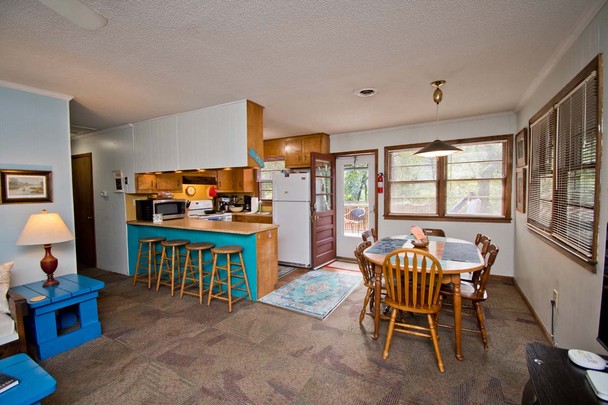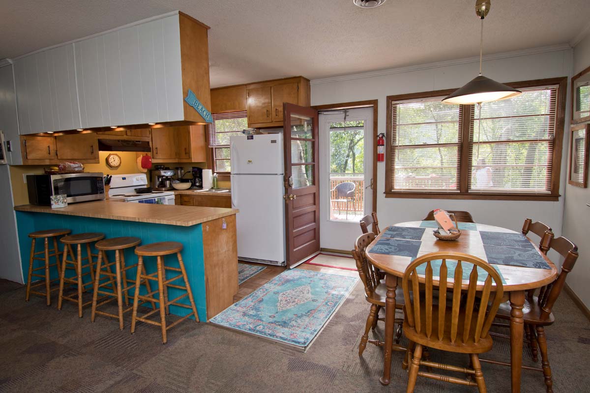Level One: Living Room with Smart Samsung TV with access to streaming apps and Samsung Plus Live TV, DVD Player and deck access. Dining Area. Kitchen/Bar area has a oven and microwave (no dishwasher). Bedroom #1 and Bedroom #2 have Queen Beds and share a bathroom. Bedroom #3 has a Double Bed with a bath.